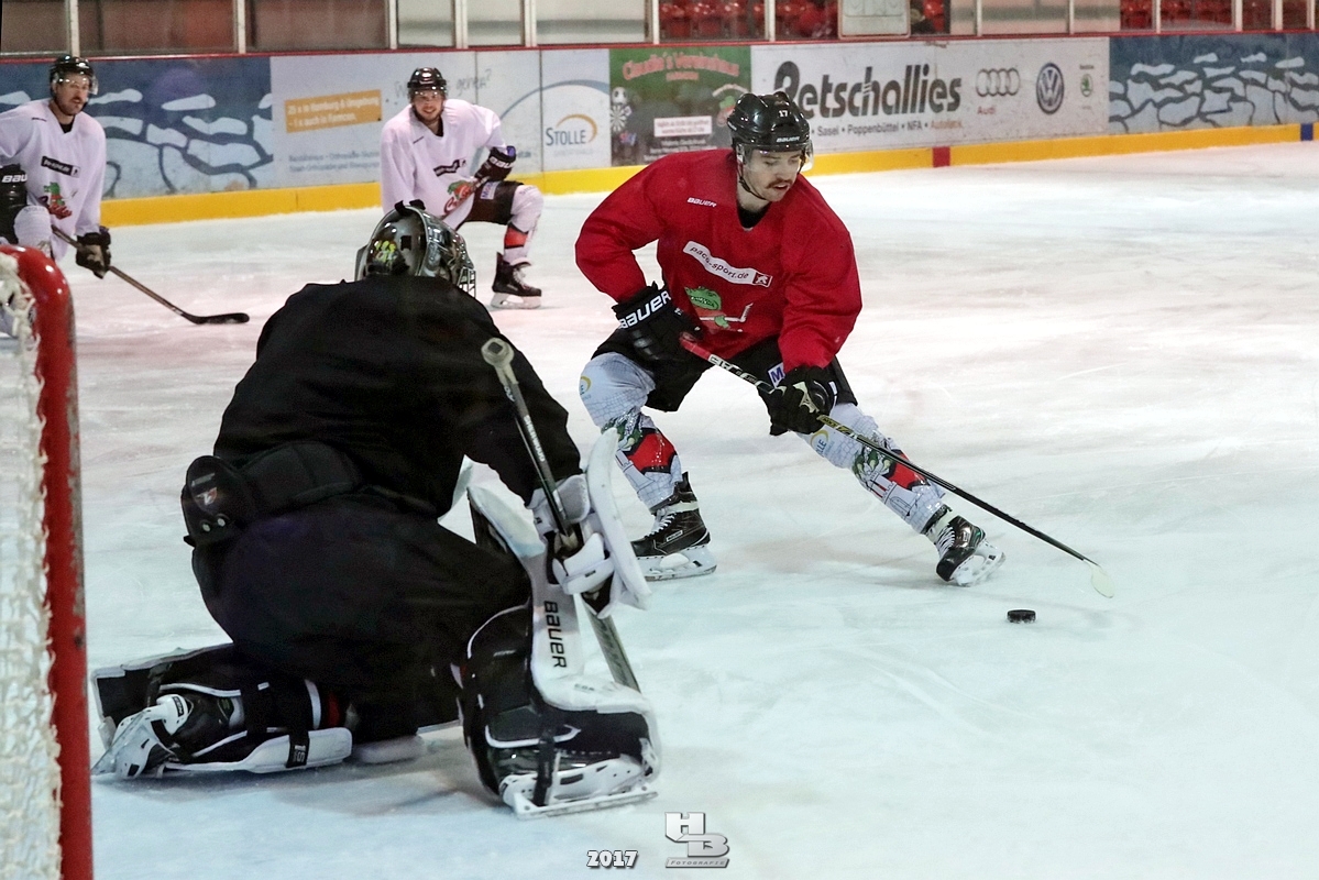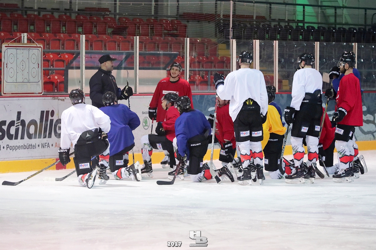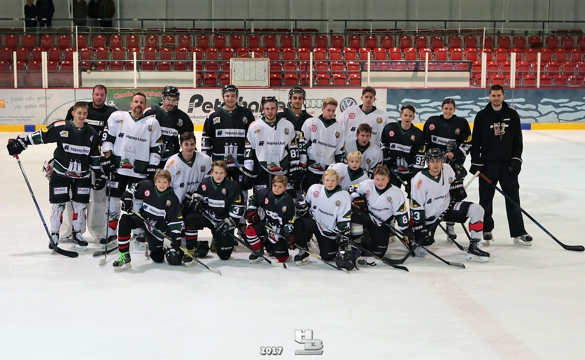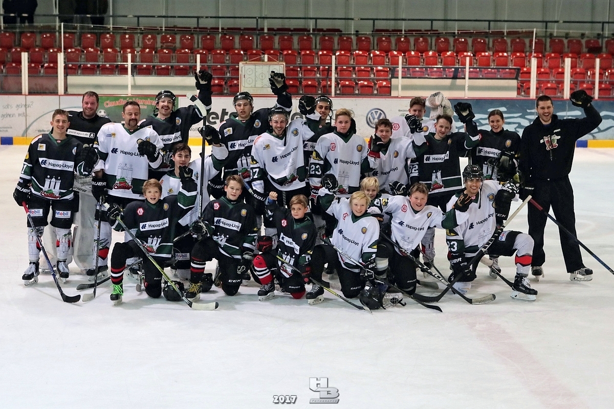 Hierfür gab es zunächst in der Eishalle Farmsen ein kleines "Warm up". Hier war es die Oberliga Mannschaft mit einem öffentlichen Training bei dem am Ende auch der Penalty König ausgespielt wurde.