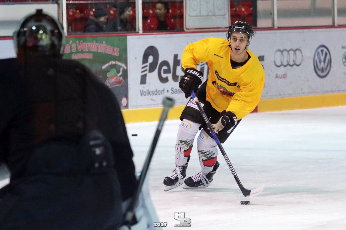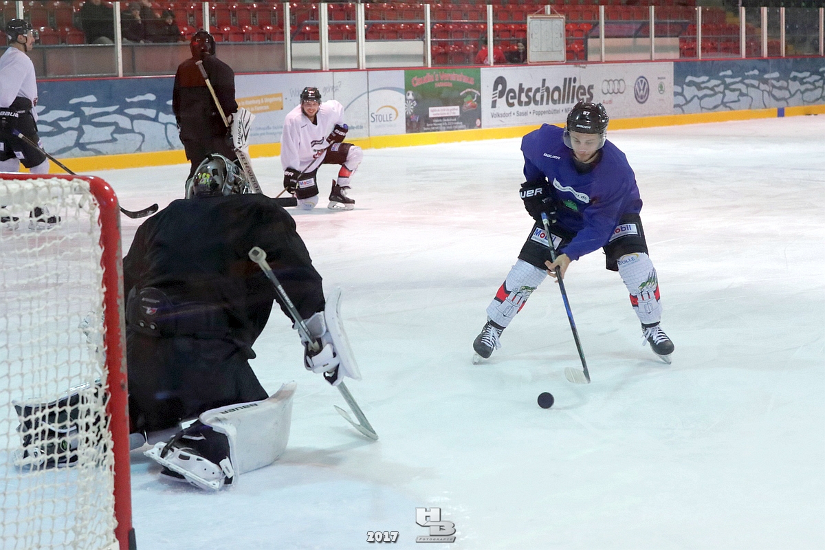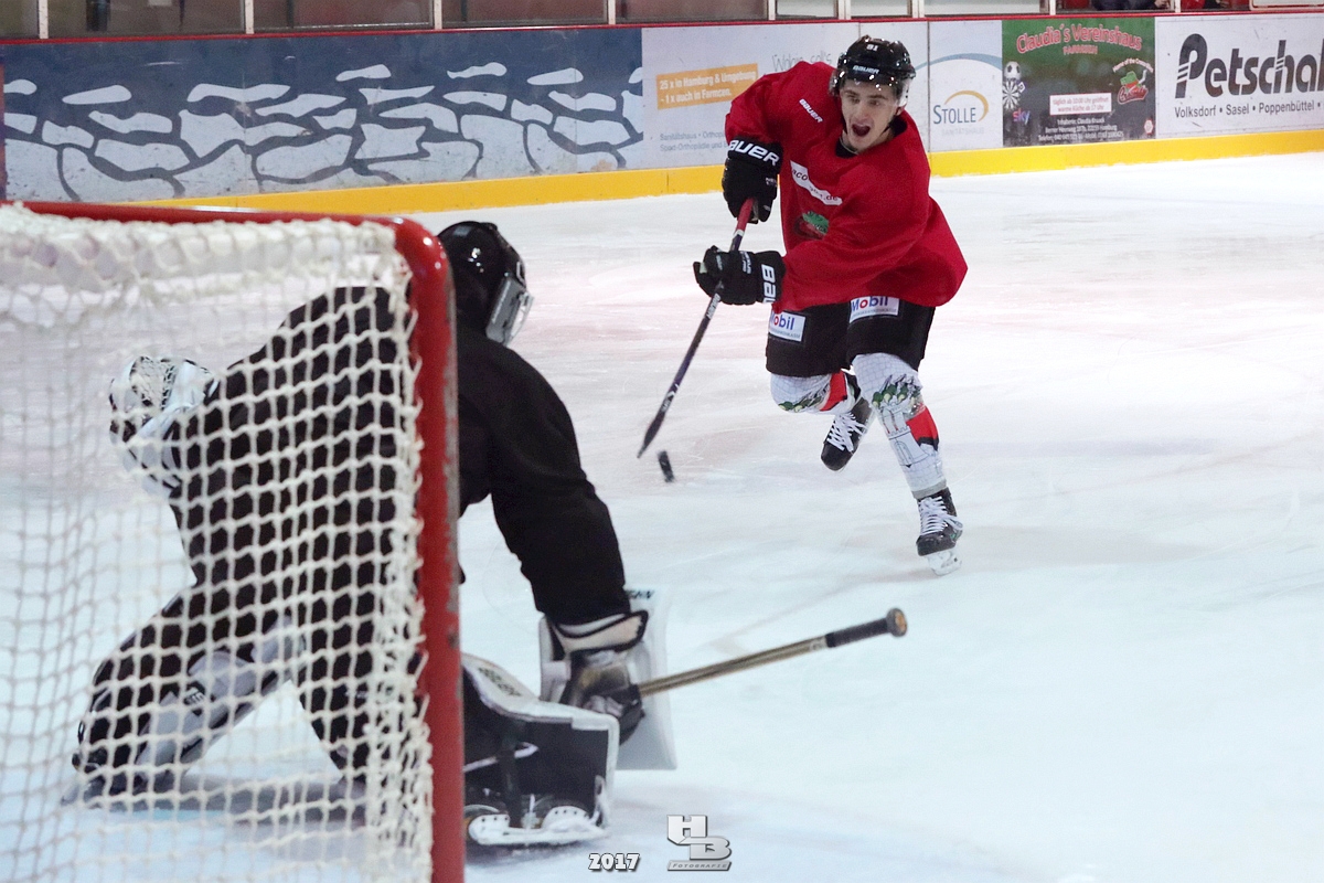 Hierfür gab es zunächst in der Eishalle Farmsen ein kleines "Warm up". Hier war es die Oberliga Mannschaft mit einem öffentlichen Training bei dem am Ende auch der Penalty König ausgespielt wurde.