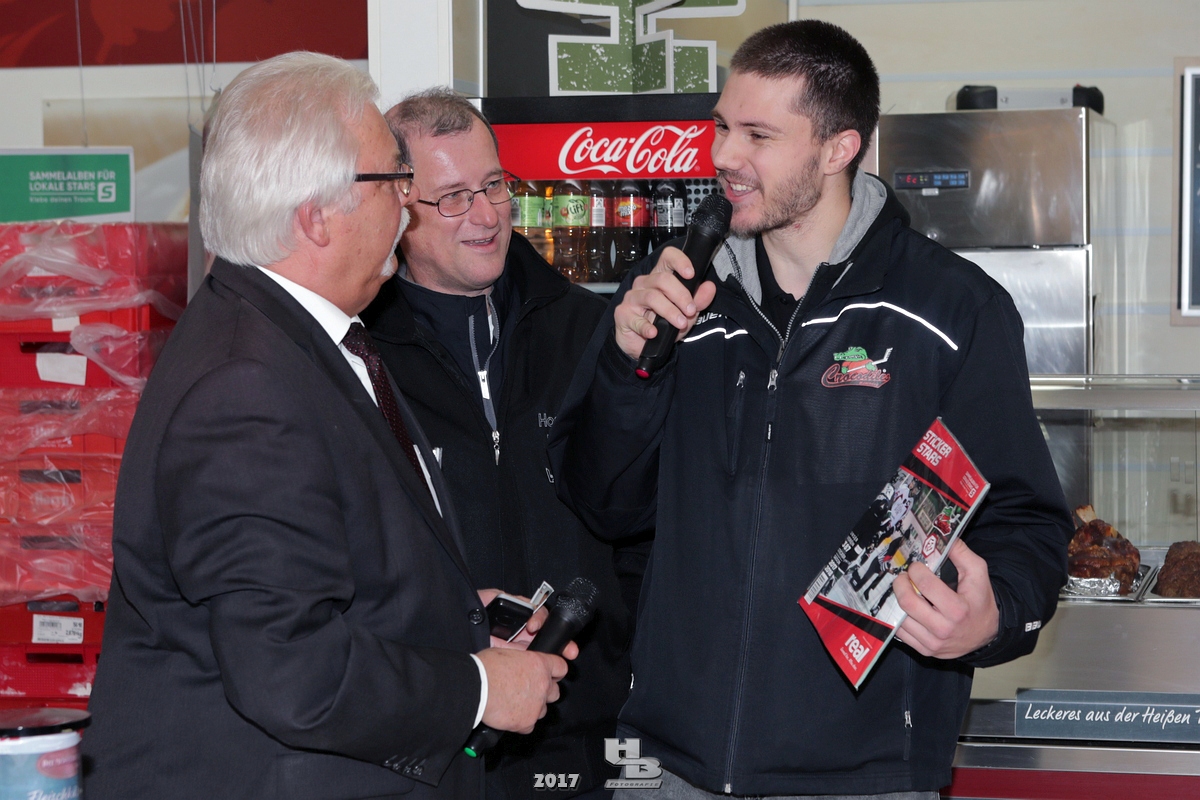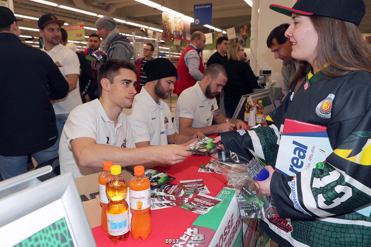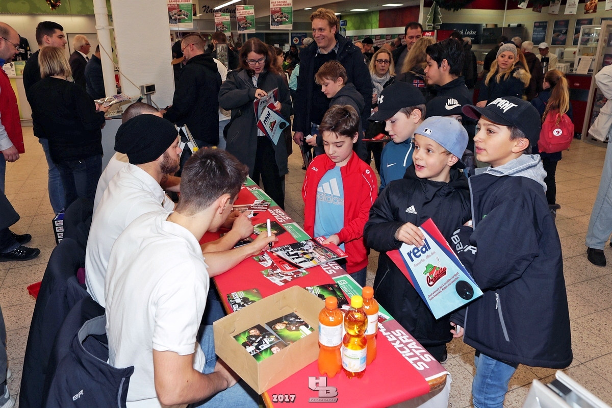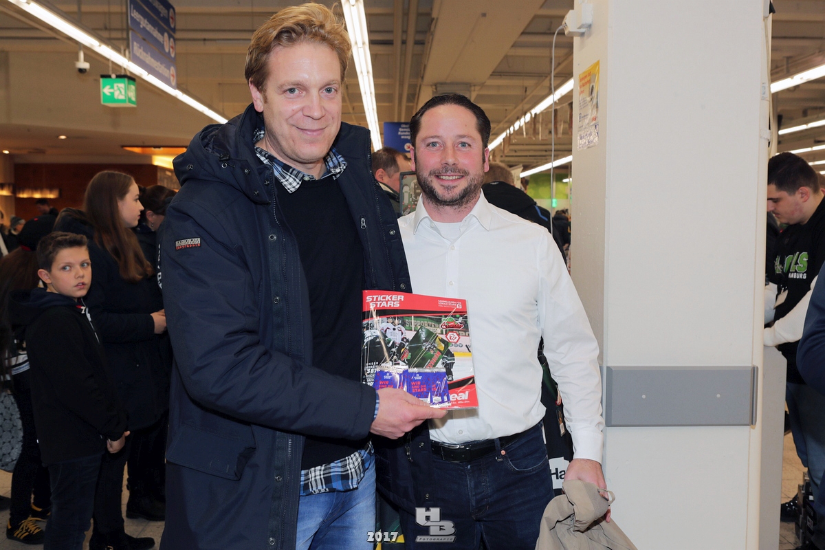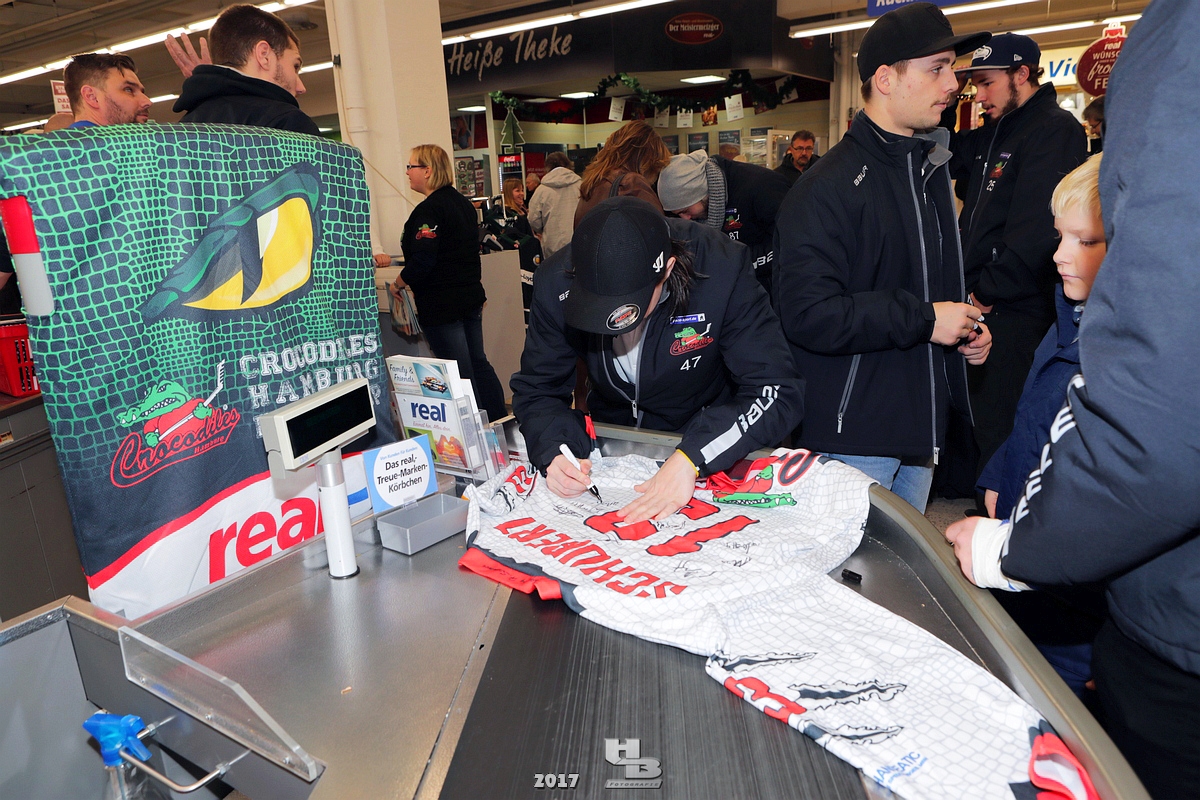 Und dann war es soweit, es ging von der Eishalle Farmsen in den real Markt im gegenüberliegenden Einkaufstreffpunkt Farmsen. Hier fiel um 12.00 Uhr der Startschuß und die ersten Alben konnten gekauft werden. Sofort nutzen viele diese Gelegenheit und kauften nicht nur Album und Sticker, sondern tauschten auch gleich vor Ort doppelte Sticker, wobei es interessant zu sehen war wie die Reaktion war wenn sich jemand selber in einer der Packungen gefunden hat.