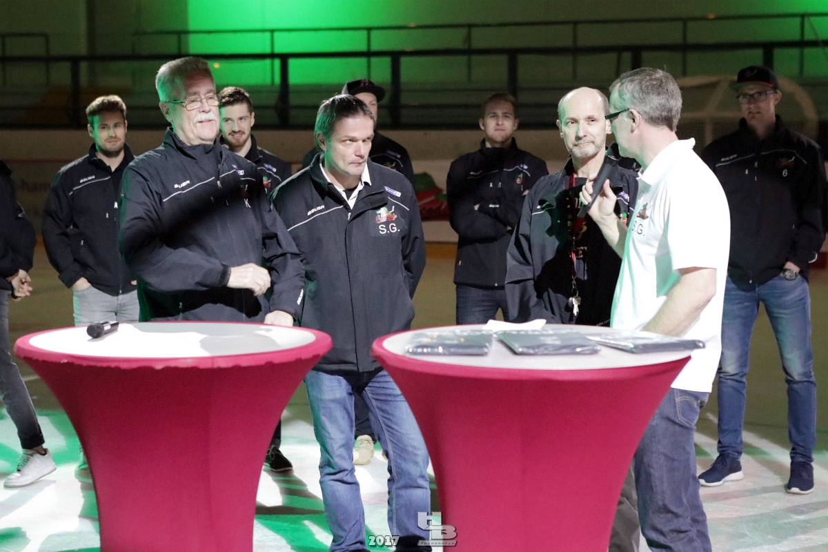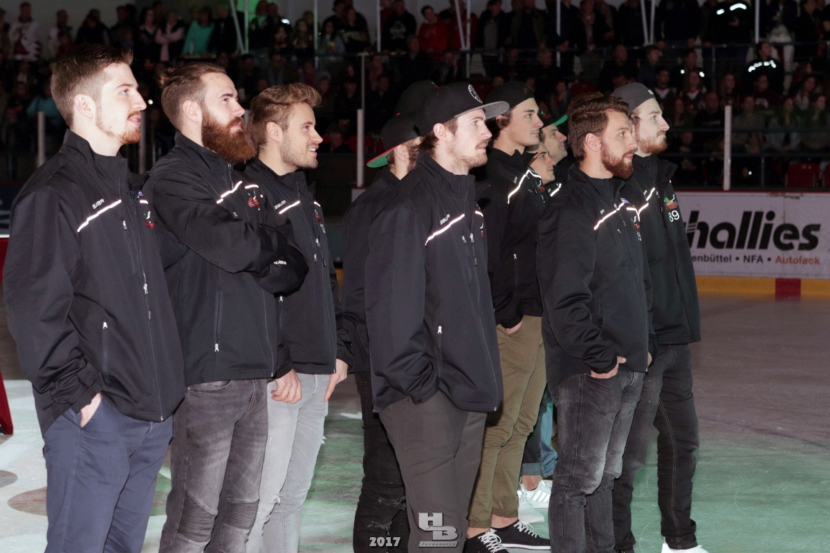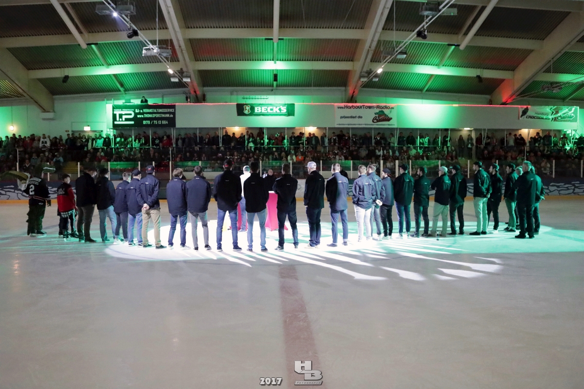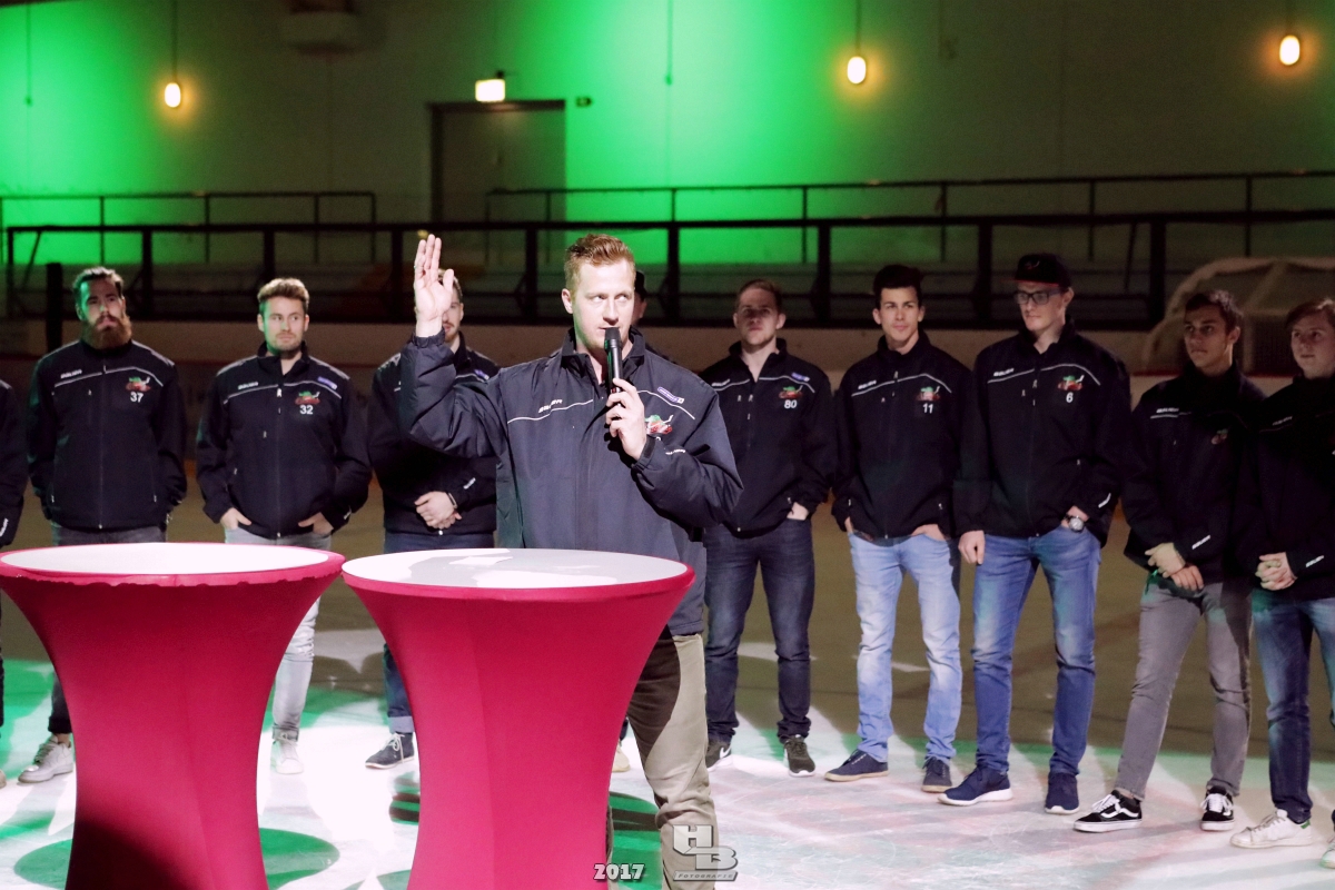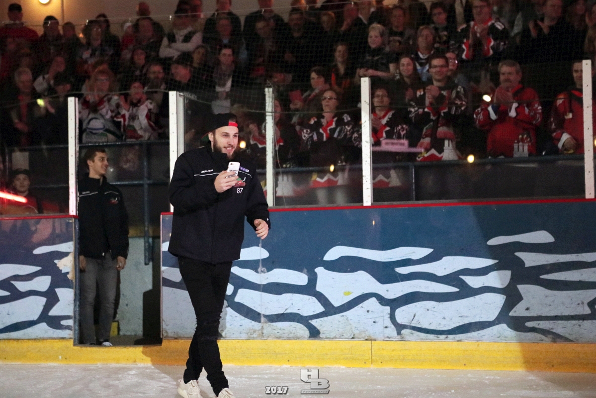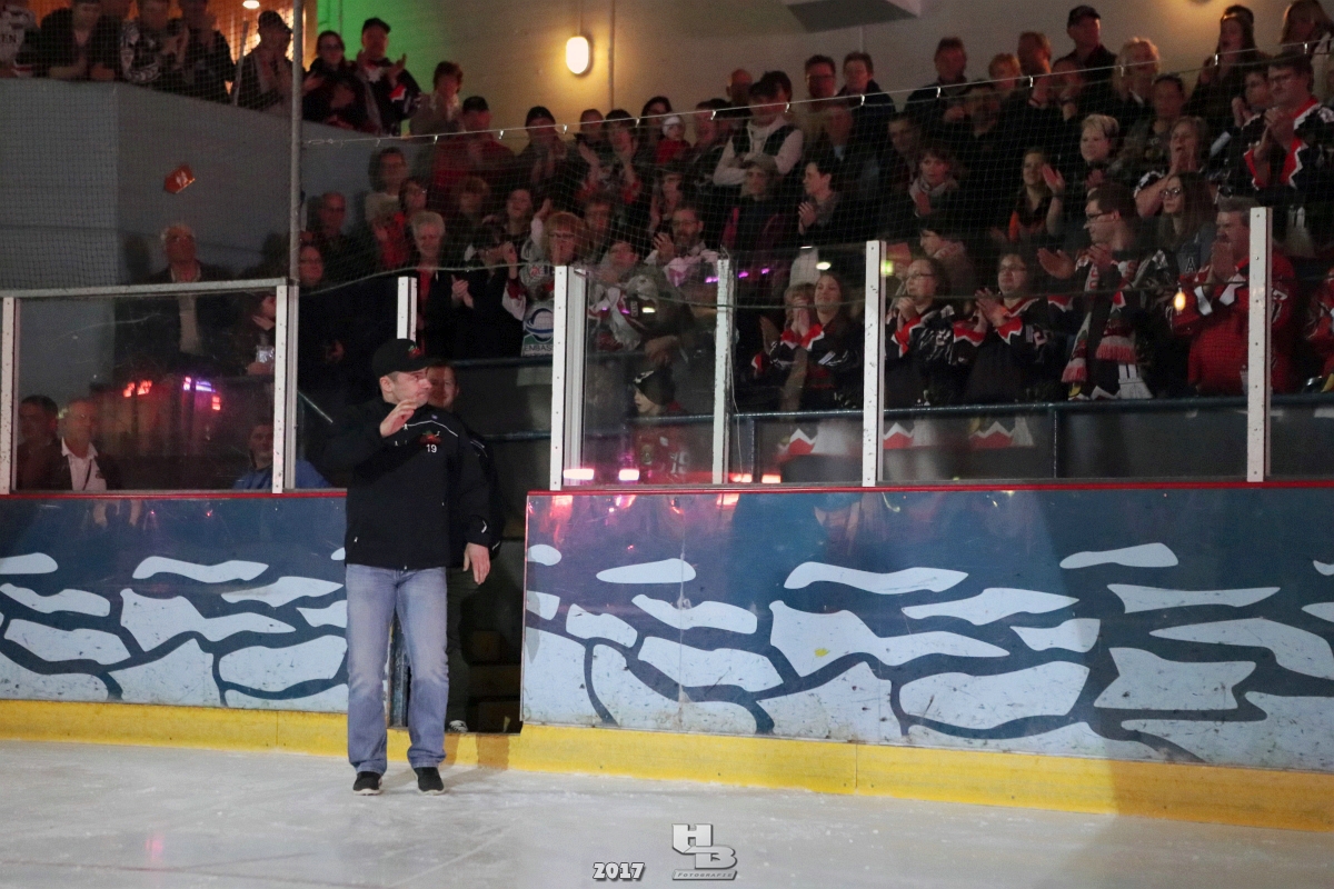 Über 500 Fans folgten der Einladung und verabschiedeten das Team in die Sommerpause. Hierfür wurde jeder Spieler nacheinander unter dem Applaus der Fans auf die Eisfläche gebeten bis das Team komplett war. Es folgten der Trainer und die Betreuer. Nachdem Carl-Heinz Götz vom Förderverein der Crocodiles und Kapitän Christoph Schubert sich beim Team und den Fans bedankt haben stand leider ein trauriger Teil auf dem Plan. Sven Gösch verabschiedete fünf Spieler der Crocodiles die in der nächsten Saison leider nicht mehr dabei sein werden. Im einzelnen waren es #80 Elmar Trautmann, #86 Pierre Kracht, #45 Tom Kluvetasch, #6 Timo Gless und #49 Gino Blank. Von meiner Seite wünsche ich alles Gute und besonderen Dank an Euch das Ihr mitgeholfen habt hier so erfolgreich zu sein. Ich werde Euch hier bei den Crocodiles sicher vermissen.