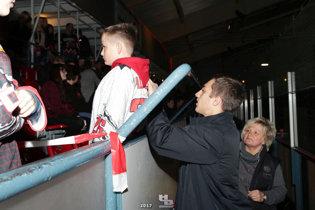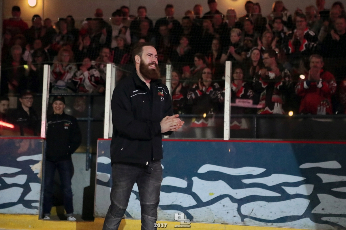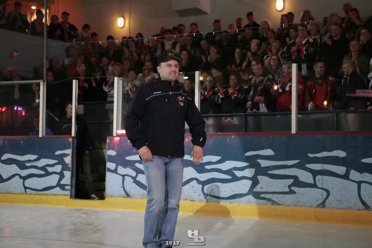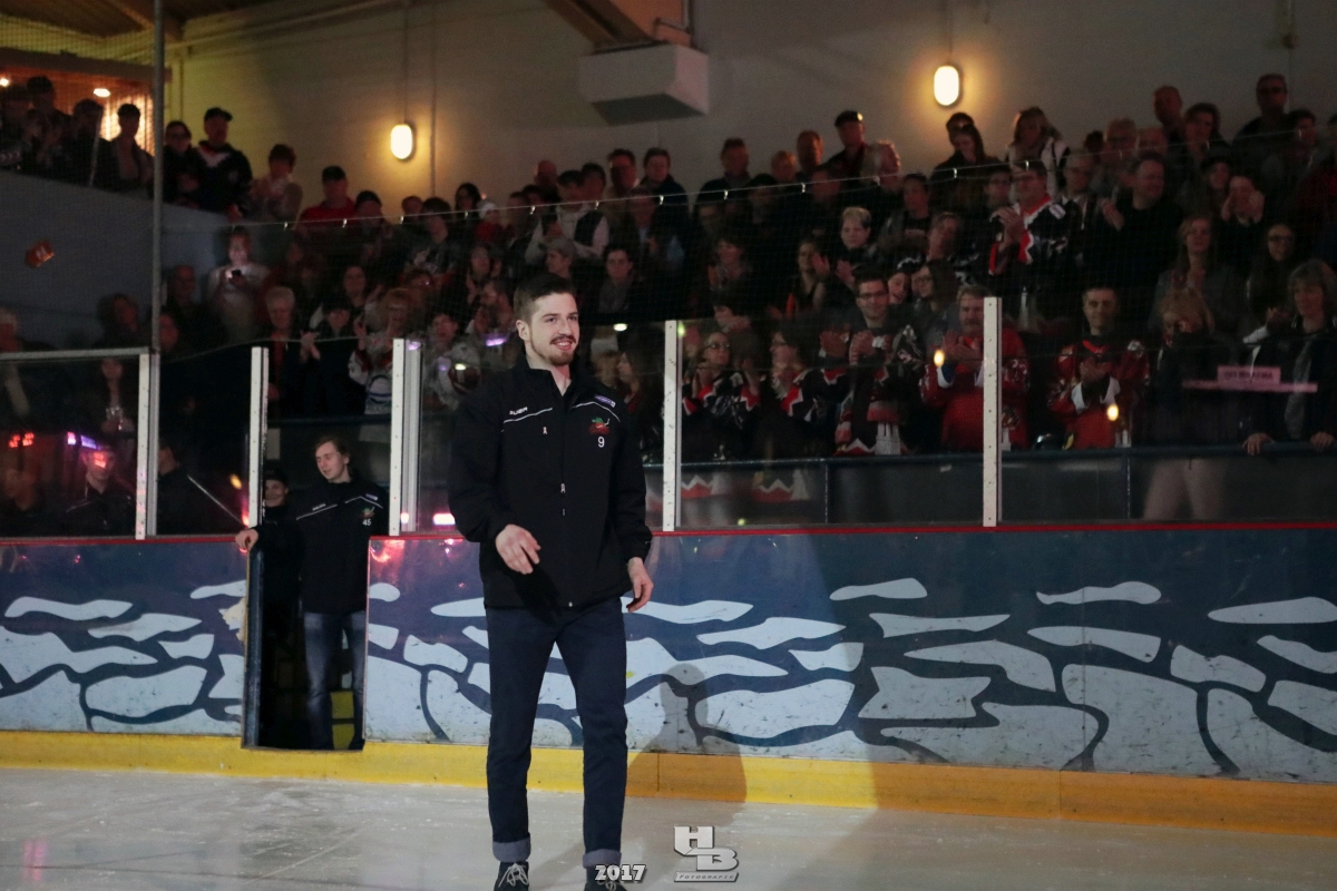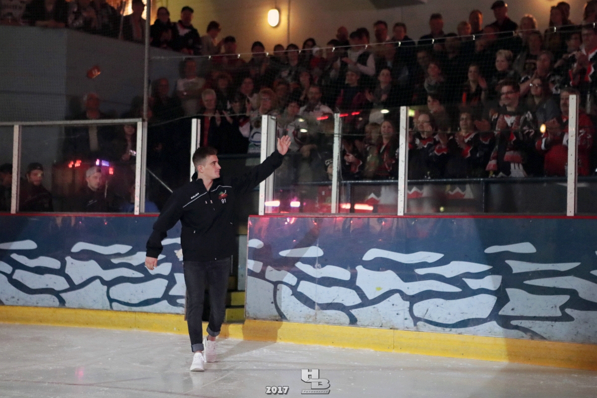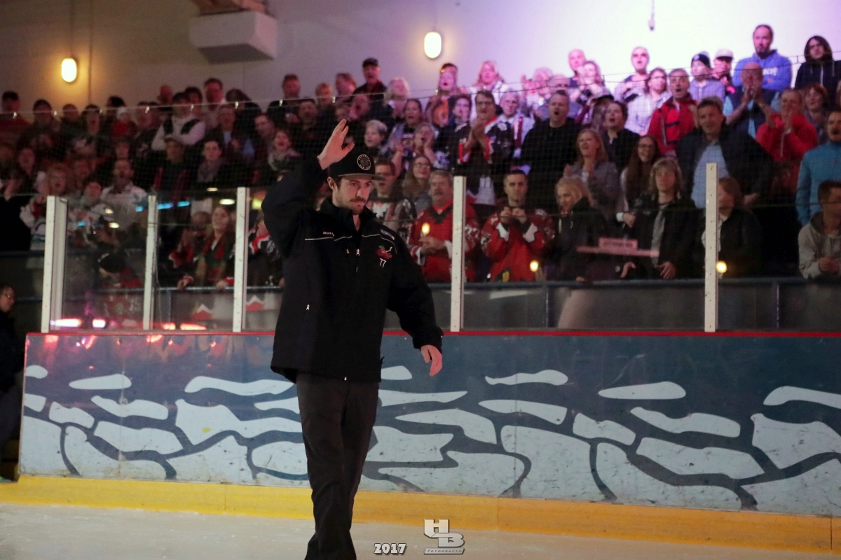 Über 500 Fans folgten der Einladung und verabschiedeten das Team in die Sommerpause. Hierfür wurde jeder Spieler nacheinander unter dem Applaus der Fans auf die Eisfläche gebeten bis das Team komplett war. Es folgten der Trainer und die Betreuer. Nachdem Carl-Heinz Götz vom Förderverein der Crocodiles und Kapitän Christoph Schubert sich beim Team und den Fans bedankt haben stand leider ein trauriger Teil auf dem Plan. Sven Gösch verabschiedete fünf Spieler der Crocodiles die in der nächsten Saison leider nicht mehr dabei sein werden. Im einzelnen waren es #80 Elmar Trautmann, #86 Pierre Kracht, #45 Tom Kluvetasch, #6 Timo Gless und #49 Gino Blank. Von meiner Seite wünsche ich alles Gute und besonderen Dank an Euch das Ihr mitgeholfen habt hier so erfolgreich zu sein. Ich werde Euch hier bei den Crocodiles sicher vermissen.