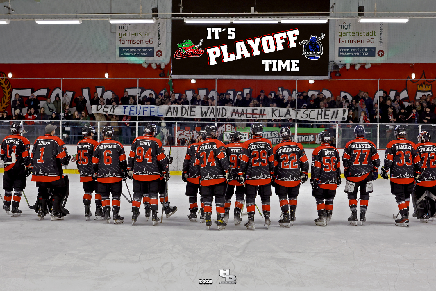 Im Eisland Framsen ging es am 21.02.2025 heiß her, als die Crocodiles Hamburg im ersten Playoffspiel der Serie „best of 3“ auf die Beach Devils vom Timmendorfer Strand trafen. Die Atmosphäre war elektrisierend und die Spannung in der Luft deutlich spürbar – es war Playoff-Zeit!