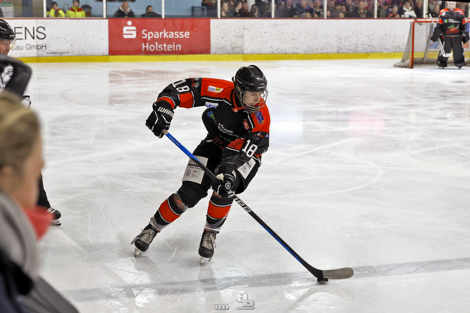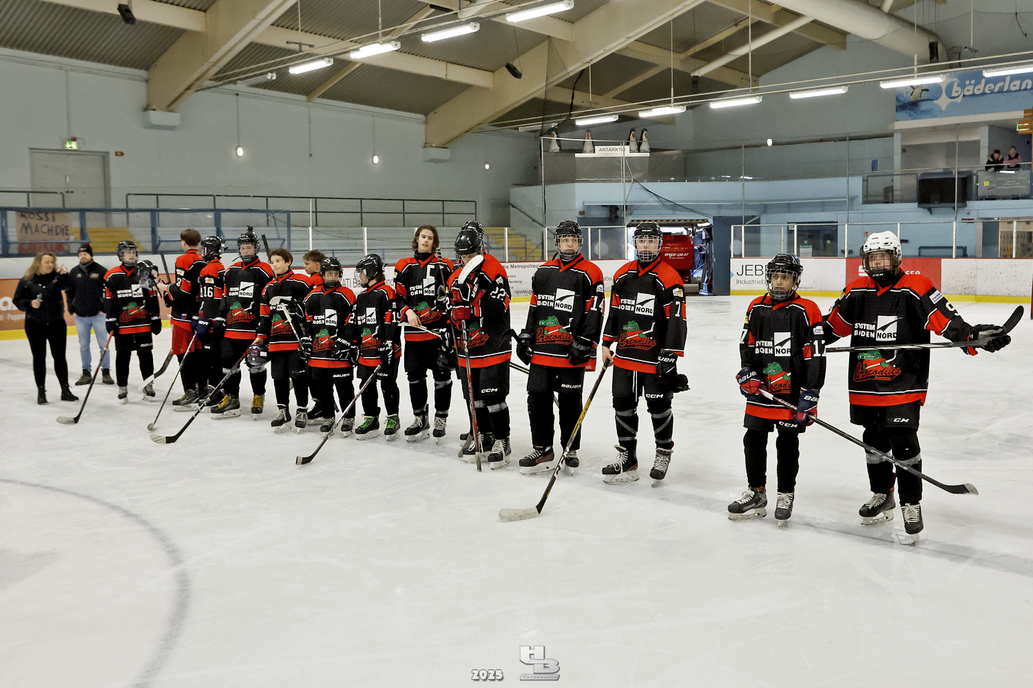 Im Schlussdrittel zeigten die Gäste aus Harsefeld zunächst eine Reaktion und erzielten ihr zweites Tor, was den Spielstand auf 5:2 verkürzte. Doch die Crocodiles blieben konzentriert und legten mit zwei weiteren Toren durch #23 Fiete Buschhüter nach, der damit ebenfalls einen Hattrick erzielte.