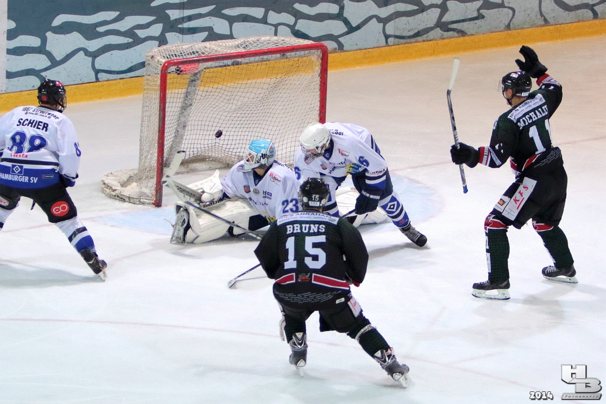 Eishockey: Hamburg Crocodiles vs. HSV Eishockey 5:4 nach Penalty-Schiessen am 21.11.2014