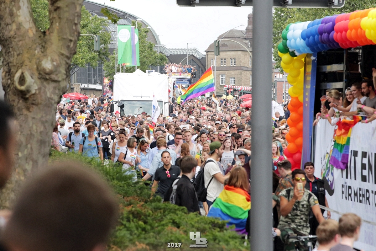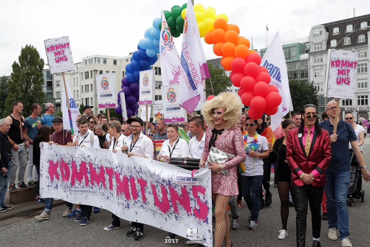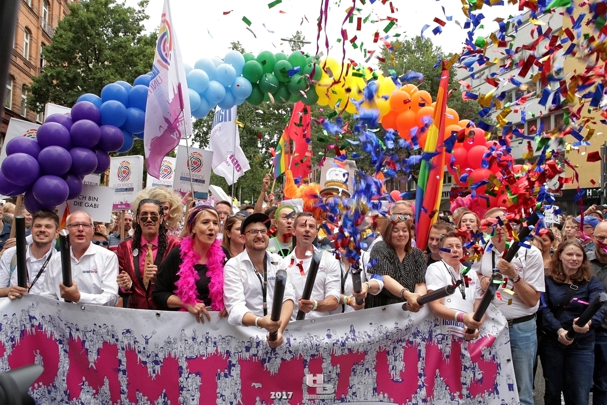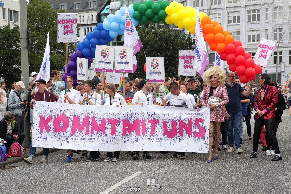 Unter dem Motto "Kommt mit uns! Diskriminierung ist keine Alternative" startete am 05. August 2017 mit 32 Minuten Verspätung die 37. Hamburger CSD Parade in der Langen Reihe.