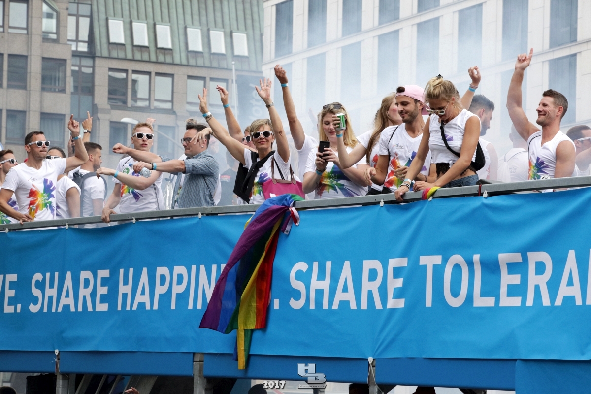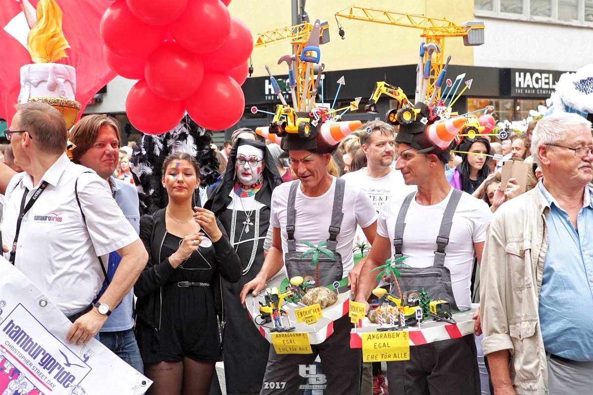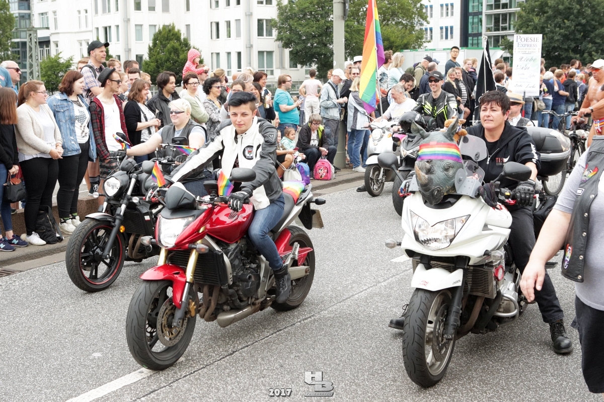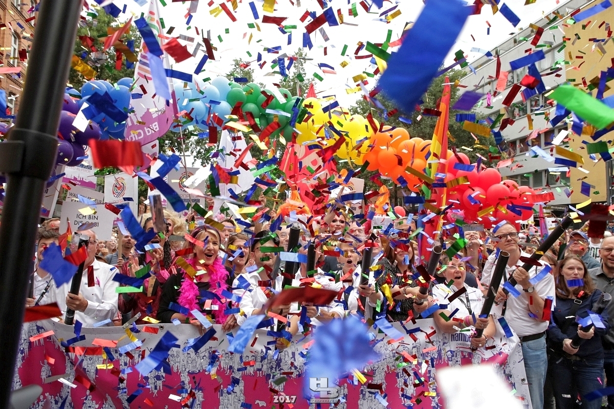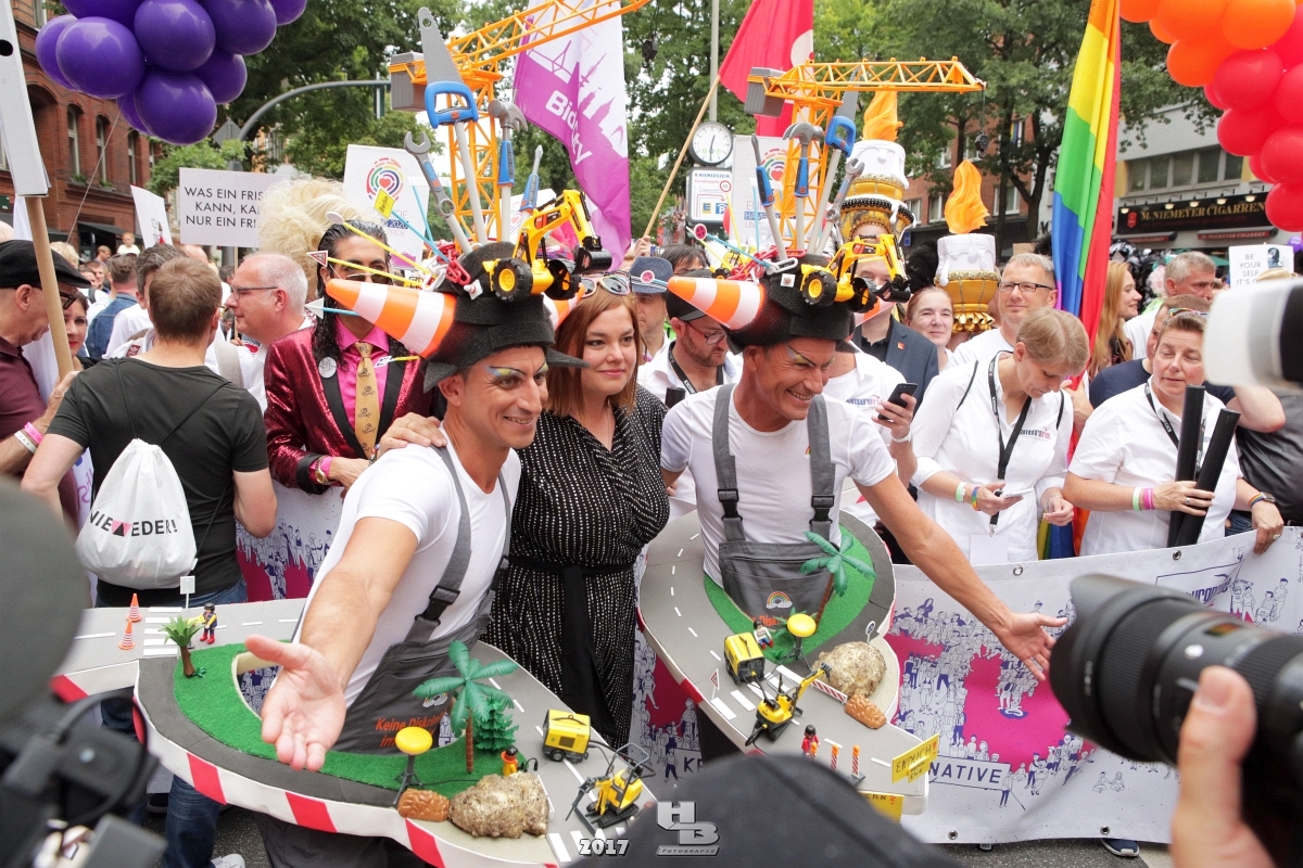 Unter dem Motto "Kommt mit uns! Diskriminierung ist keine Alternative" startete am 05. August 2017 mit 32 Minuten Verspätung die 37. Hamburger CSD Parade in der Langen Reihe.
