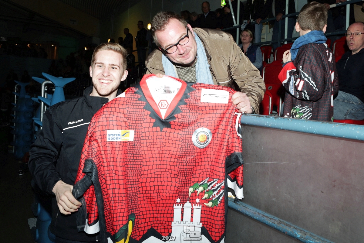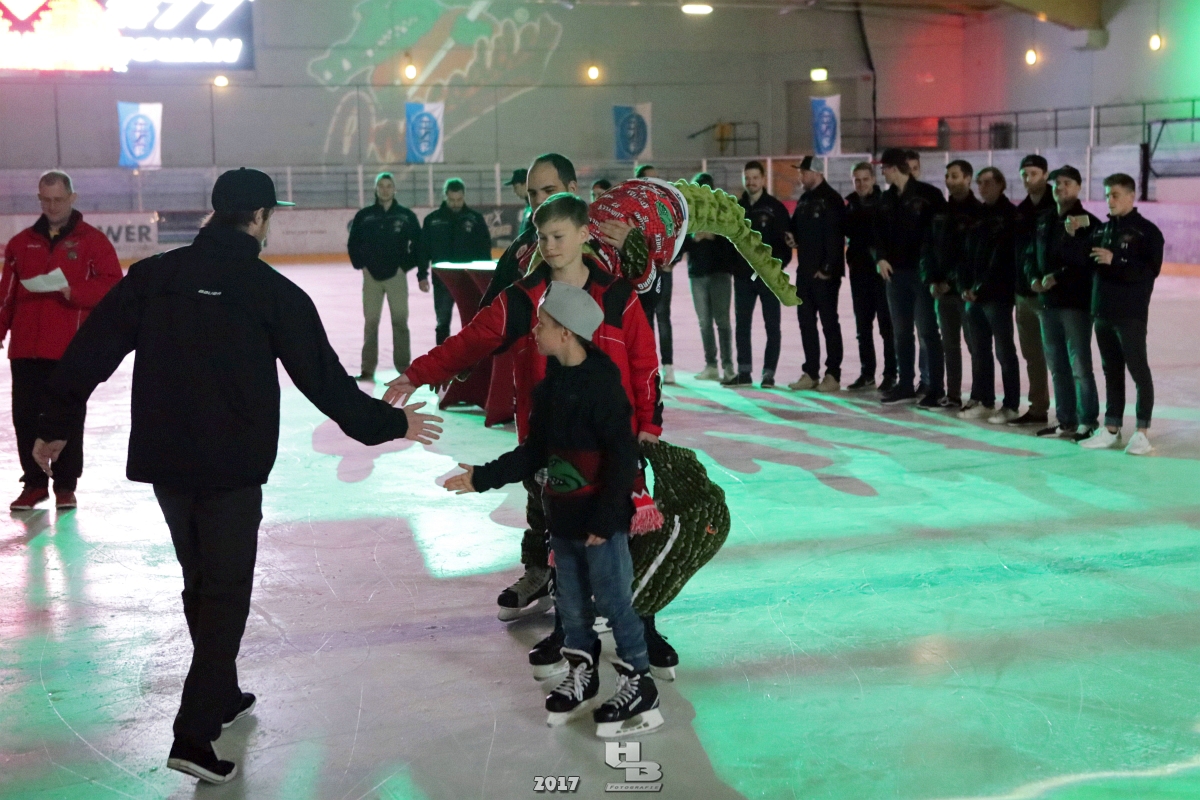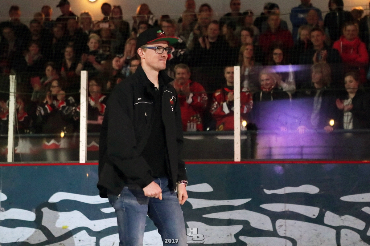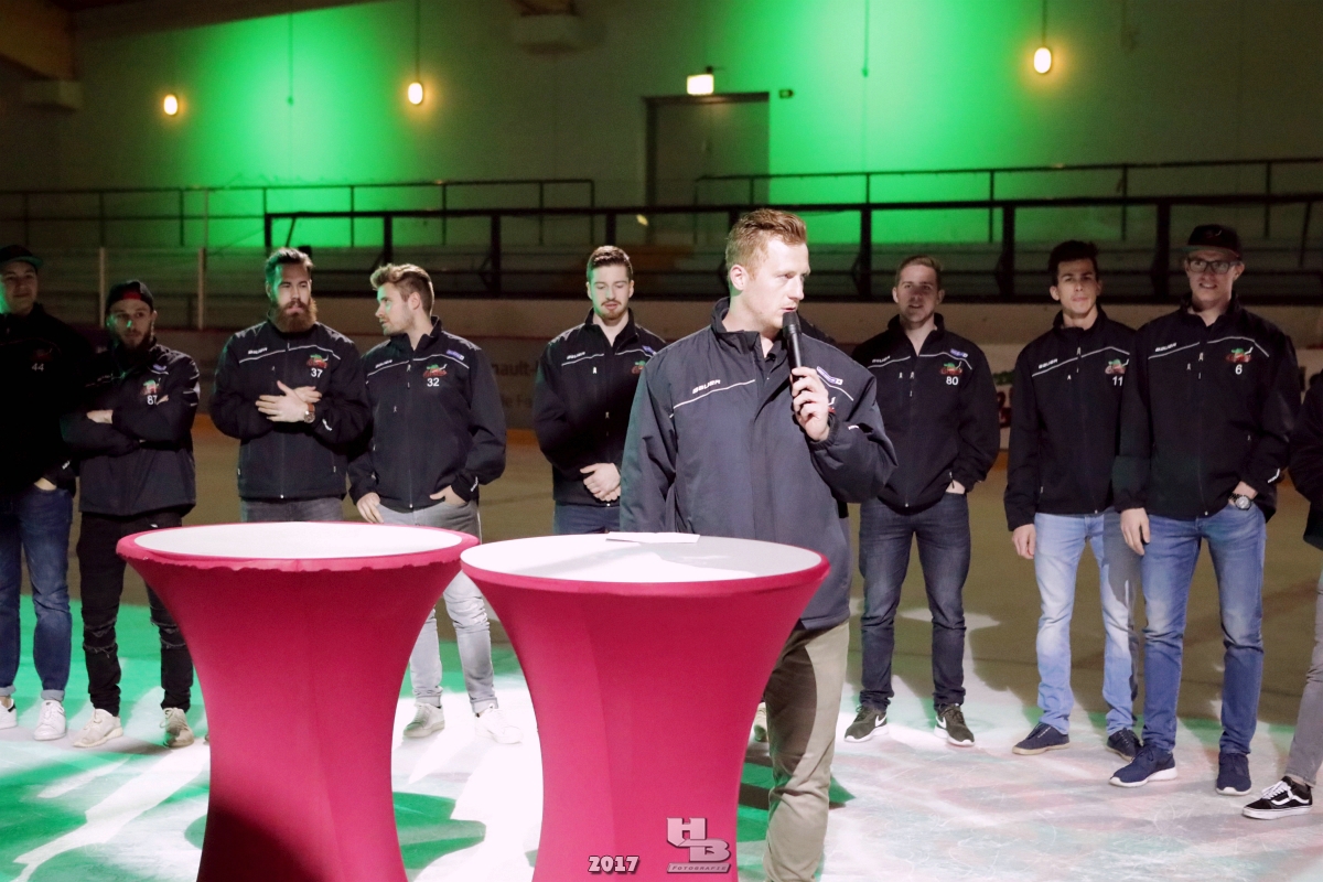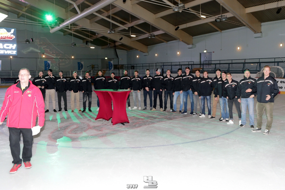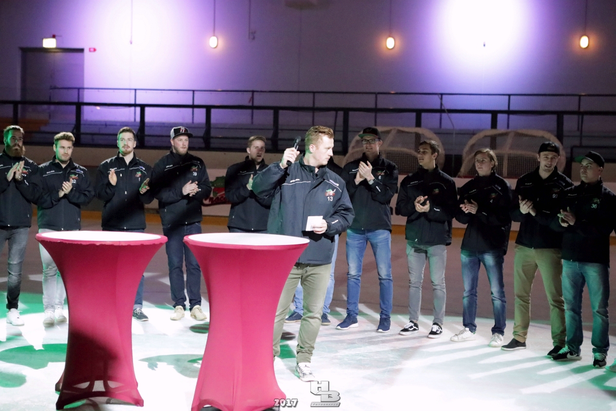 Über 500 Fans folgten der Einladung und verabschiedeten das Team in die Sommerpause. Hierfür wurde jeder Spieler nacheinander unter dem Applaus der Fans auf die Eisfläche gebeten bis das Team komplett war. Es folgten der Trainer und die Betreuer. Nachdem Carl-Heinz Götz vom Förderverein der Crocodiles und Kapitän Christoph Schubert sich beim Team und den Fans bedankt haben stand leider ein trauriger Teil auf dem Plan. Sven Gösch verabschiedete fünf Spieler der Crocodiles die in der nächsten Saison leider nicht mehr dabei sein werden. Im einzelnen waren es #80 Elmar Trautmann, #86 Pierre Kracht, #45 Tom Kluvetasch, #6 Timo Gless und #49 Gino Blank. Von meiner Seite wünsche ich alles Gute und besonderen Dank an Euch das Ihr mitgeholfen habt hier so erfolgreich zu sein. Ich werde Euch hier bei den Crocodiles sicher vermissen.