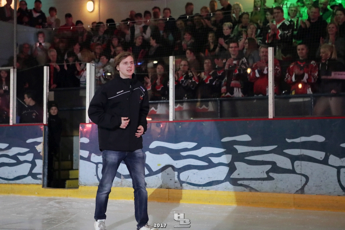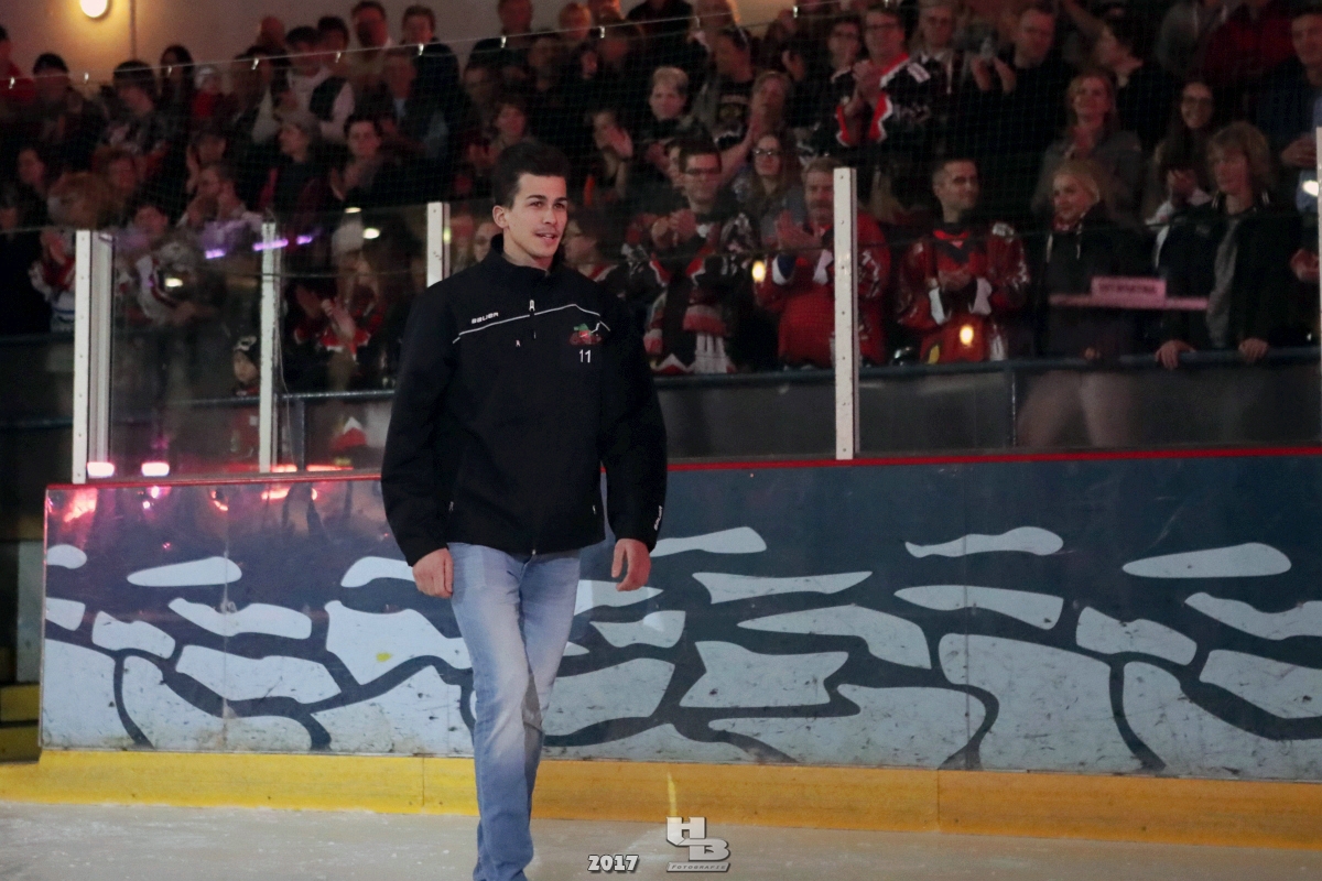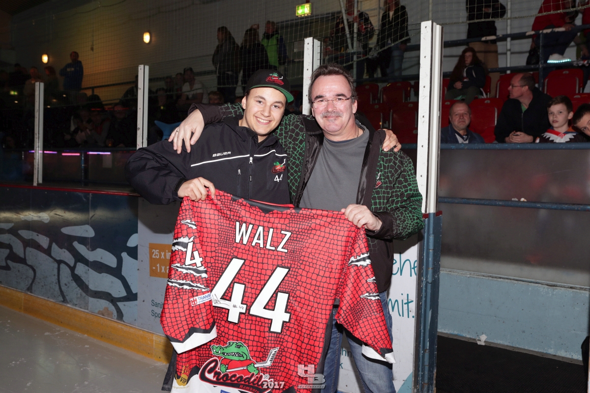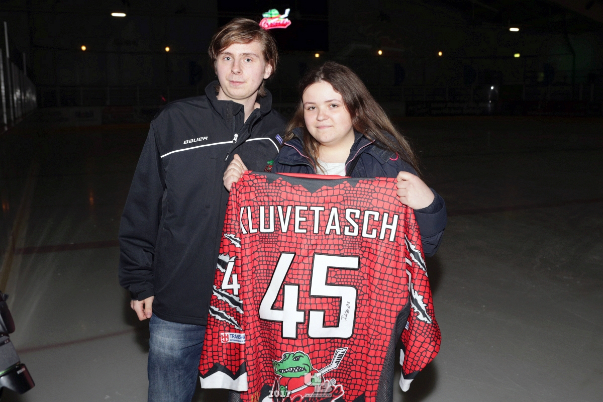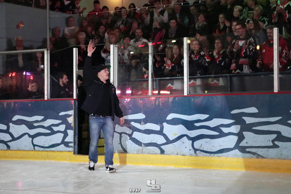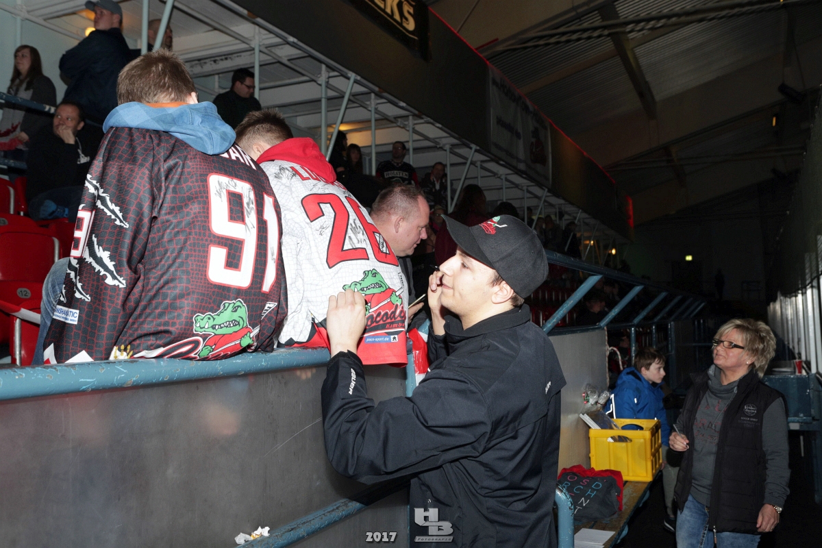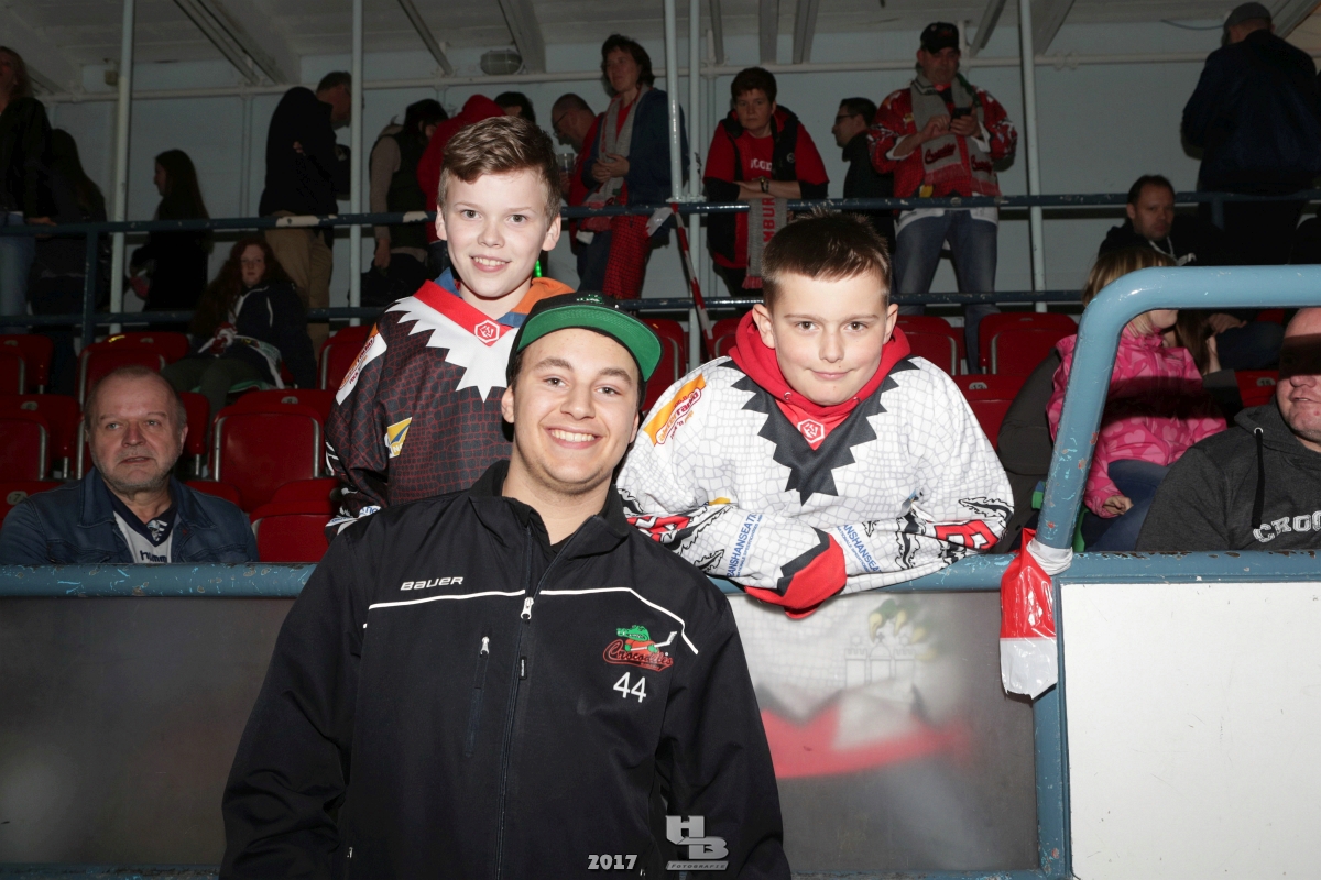 Über 500 Fans folgten der Einladung und verabschiedeten das Team in die Sommerpause. Hierfür wurde jeder Spieler nacheinander unter dem Applaus der Fans auf die Eisfläche gebeten bis das Team komplett war. Es folgten der Trainer und die Betreuer. Nachdem Carl-Heinz Götz vom Förderverein der Crocodiles und Kapitän Christoph Schubert sich beim Team und den Fans bedankt haben stand leider ein trauriger Teil auf dem Plan. Sven Gösch verabschiedete fünf Spieler der Crocodiles die in der nächsten Saison leider nicht mehr dabei sein werden. Im einzelnen waren es #80 Elmar Trautmann, #86 Pierre Kracht, #45 Tom Kluvetasch, #6 Timo Gless und #49 Gino Blank. Von meiner Seite wünsche ich alles Gute und besonderen Dank an Euch das Ihr mitgeholfen habt hier so erfolgreich zu sein. Ich werde Euch hier bei den Crocodiles sicher vermissen.