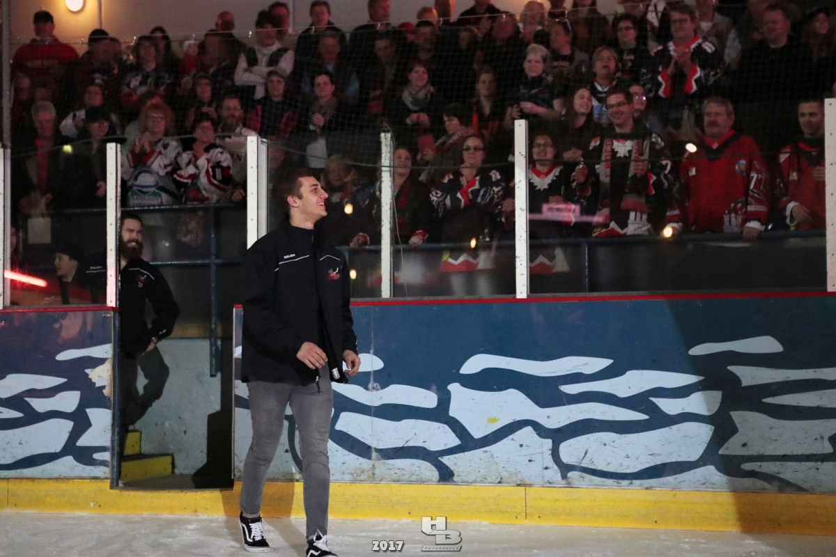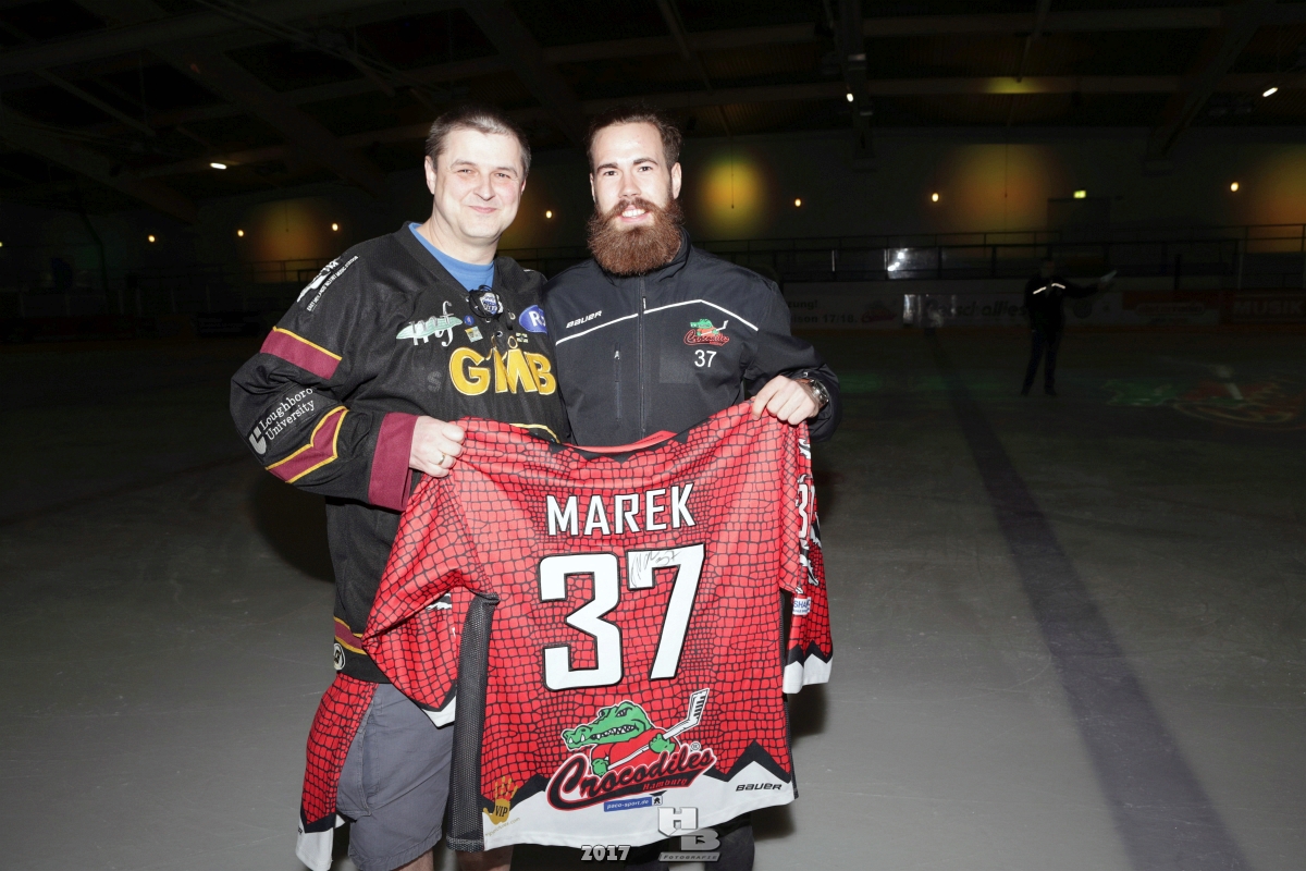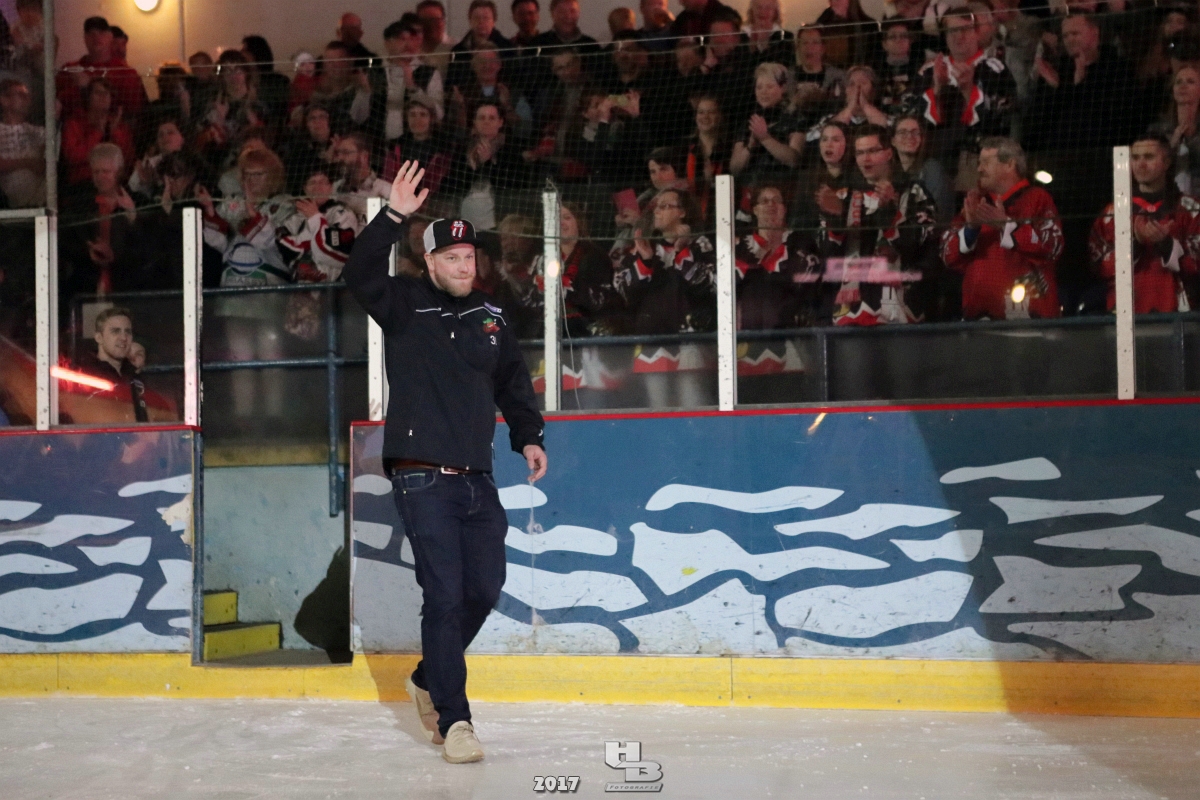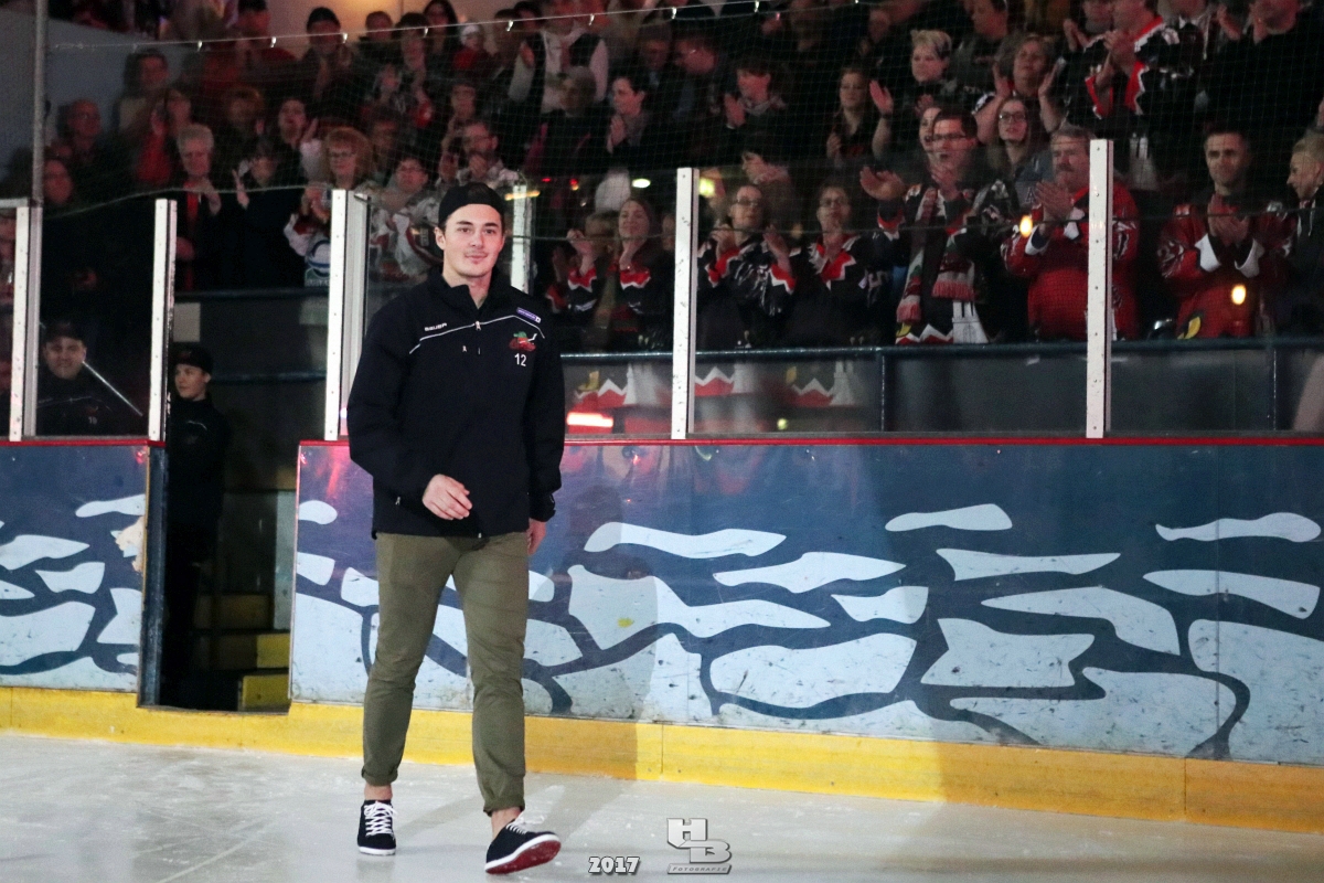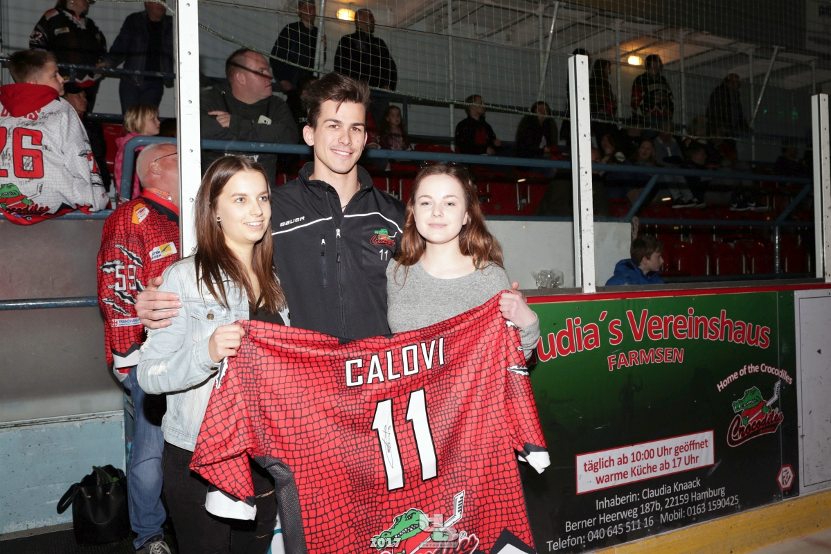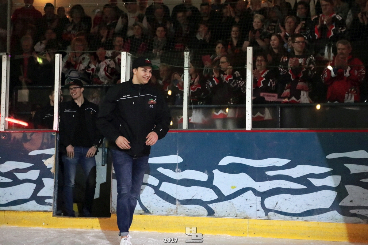 Über 500 Fans folgten der Einladung und verabschiedeten das Team in die Sommerpause. Hierfür wurde jeder Spieler nacheinander unter dem Applaus der Fans auf die Eisfläche gebeten bis das Team komplett war. Es folgten der Trainer und die Betreuer. Nachdem Carl-Heinz Götz vom Förderverein der Crocodiles und Kapitän Christoph Schubert sich beim Team und den Fans bedankt haben stand leider ein trauriger Teil auf dem Plan. Sven Gösch verabschiedete fünf Spieler der Crocodiles die in der nächsten Saison leider nicht mehr dabei sein werden. Im einzelnen waren es #80 Elmar Trautmann, #86 Pierre Kracht, #45 Tom Kluvetasch, #6 Timo Gless und #49 Gino Blank. Von meiner Seite wünsche ich alles Gute und besonderen Dank an Euch das Ihr mitgeholfen habt hier so erfolgreich zu sein. Ich werde Euch hier bei den Crocodiles sicher vermissen.