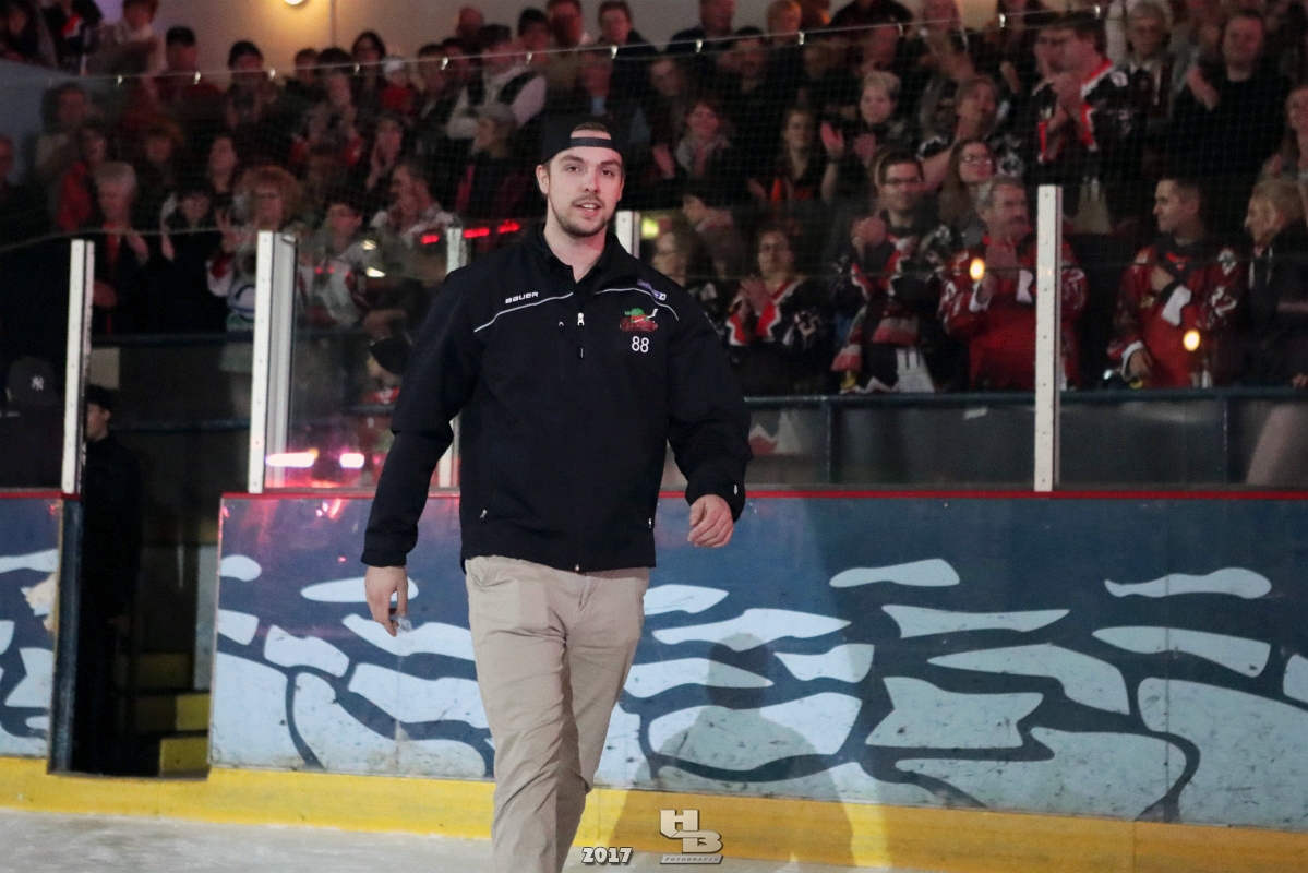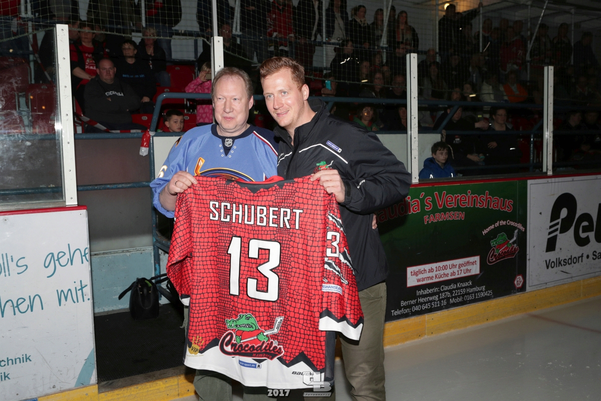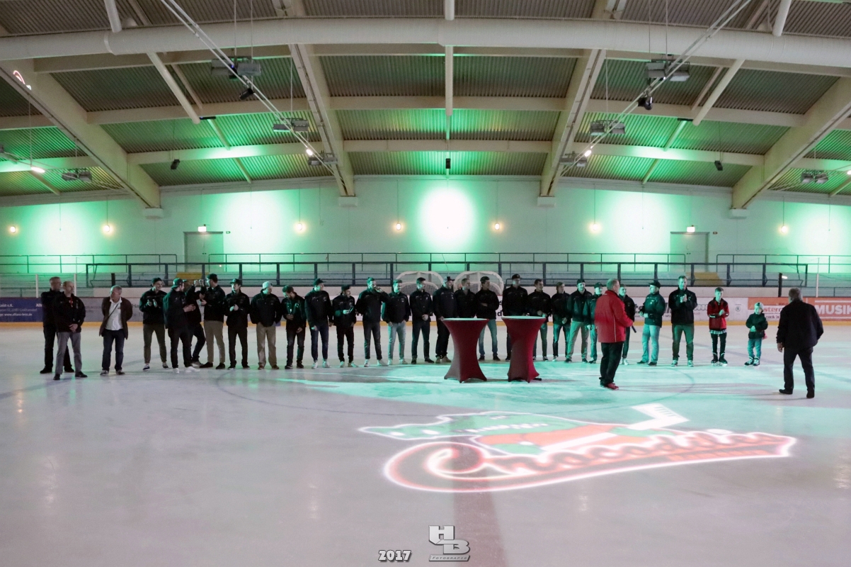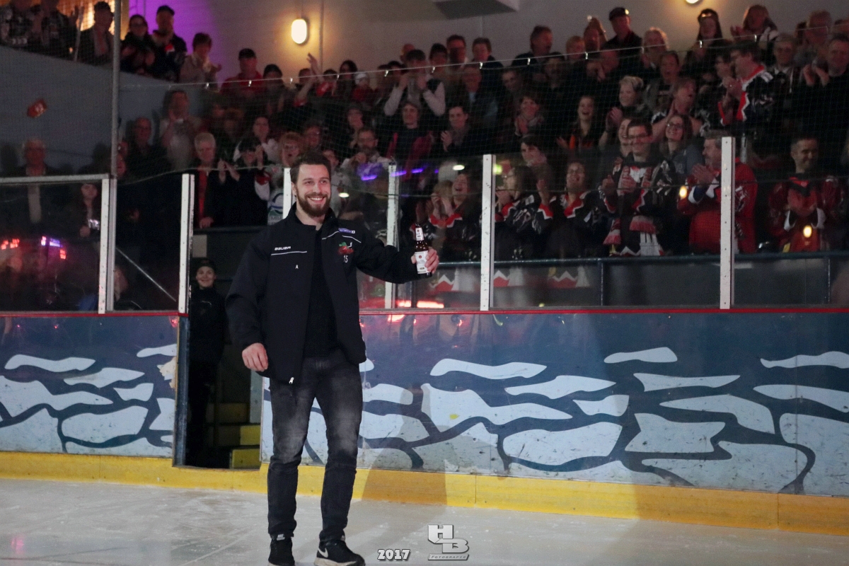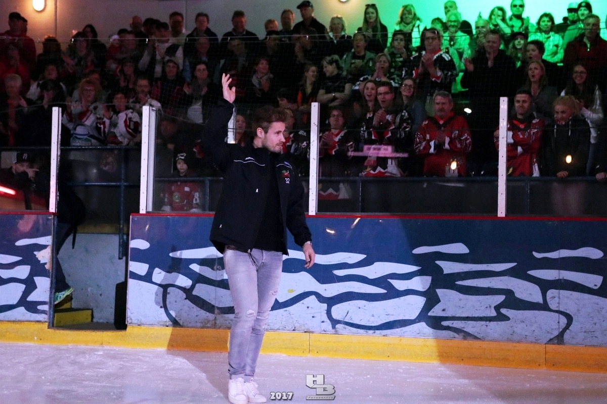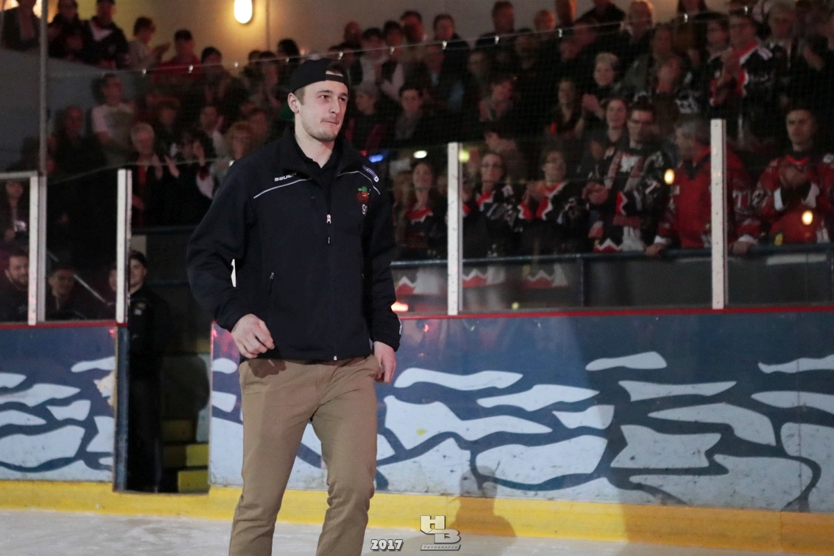 Über 500 Fans folgten der Einladung und verabschiedeten das Team in die Sommerpause. Hierfür wurde jeder Spieler nacheinander unter dem Applaus der Fans auf die Eisfläche gebeten bis das Team komplett war. Es folgten der Trainer und die Betreuer. Nachdem Carl-Heinz Götz vom Förderverein der Crocodiles und Kapitän Christoph Schubert sich beim Team und den Fans bedankt haben stand leider ein trauriger Teil auf dem Plan. Sven Gösch verabschiedete fünf Spieler der Crocodiles die in der nächsten Saison leider nicht mehr dabei sein werden. Im einzelnen waren es #80 Elmar Trautmann, #86 Pierre Kracht, #45 Tom Kluvetasch, #6 Timo Gless und #49 Gino Blank. Von meiner Seite wünsche ich alles Gute und besonderen Dank an Euch das Ihr mitgeholfen habt hier so erfolgreich zu sein. Ich werde Euch hier bei den Crocodiles sicher vermissen.