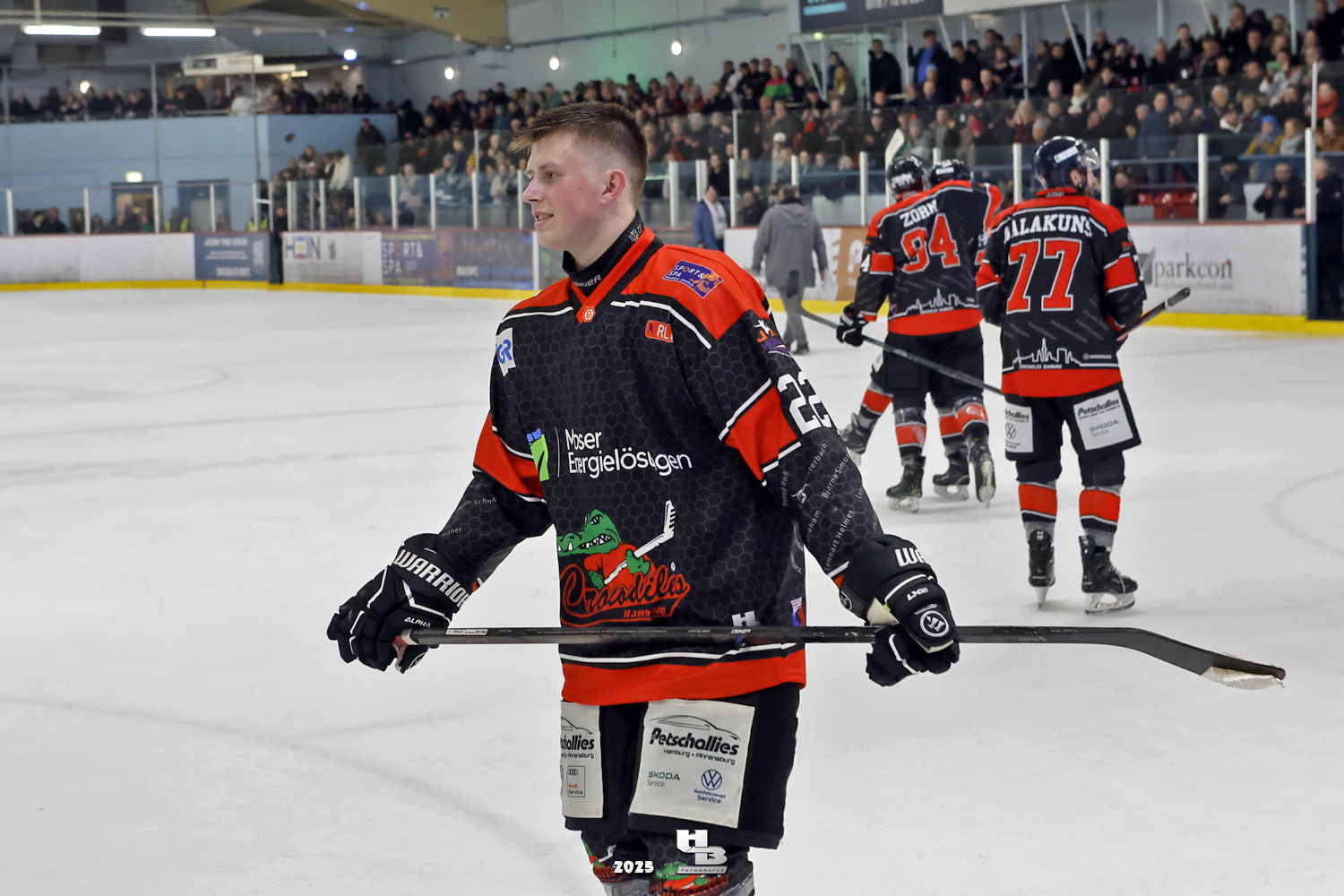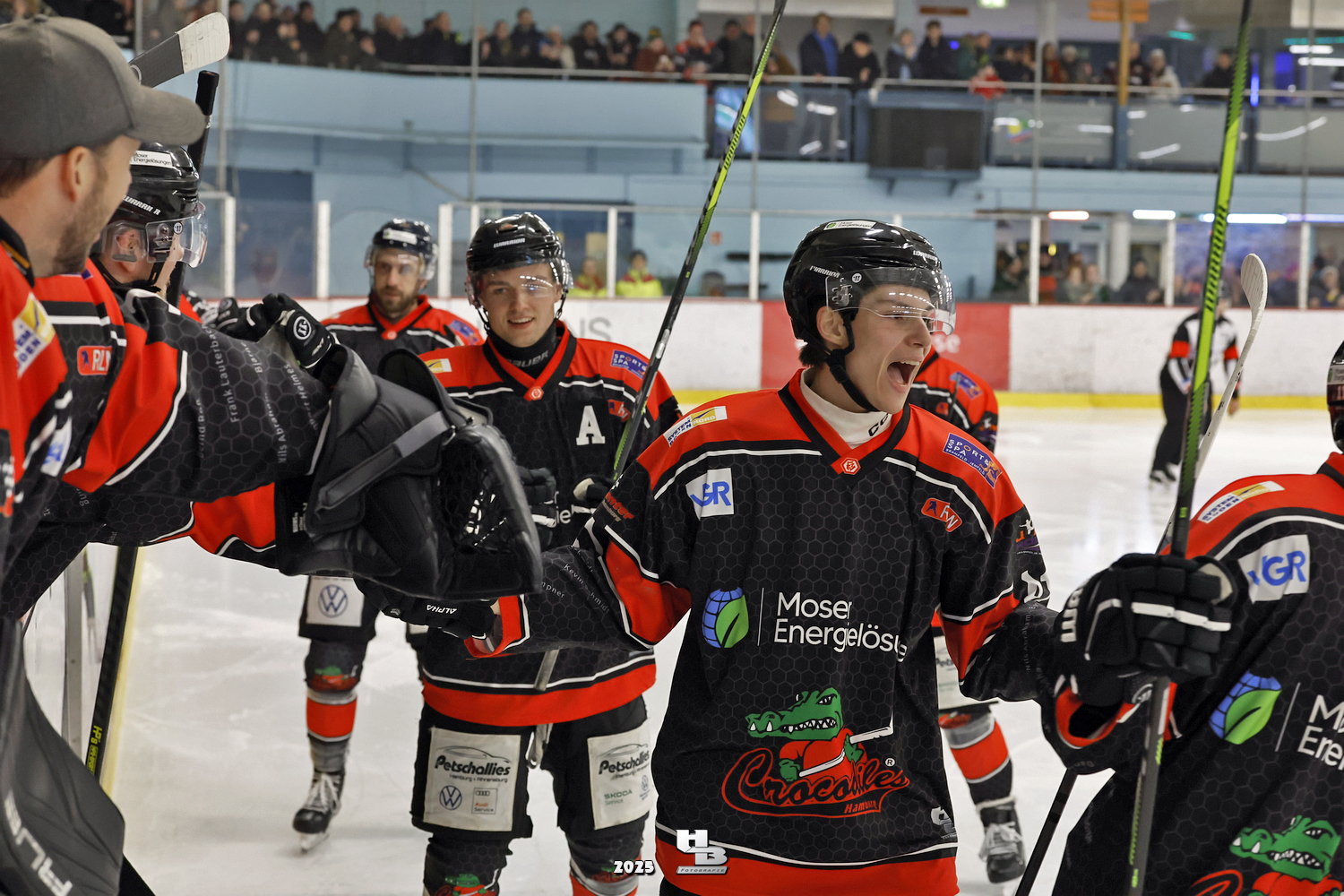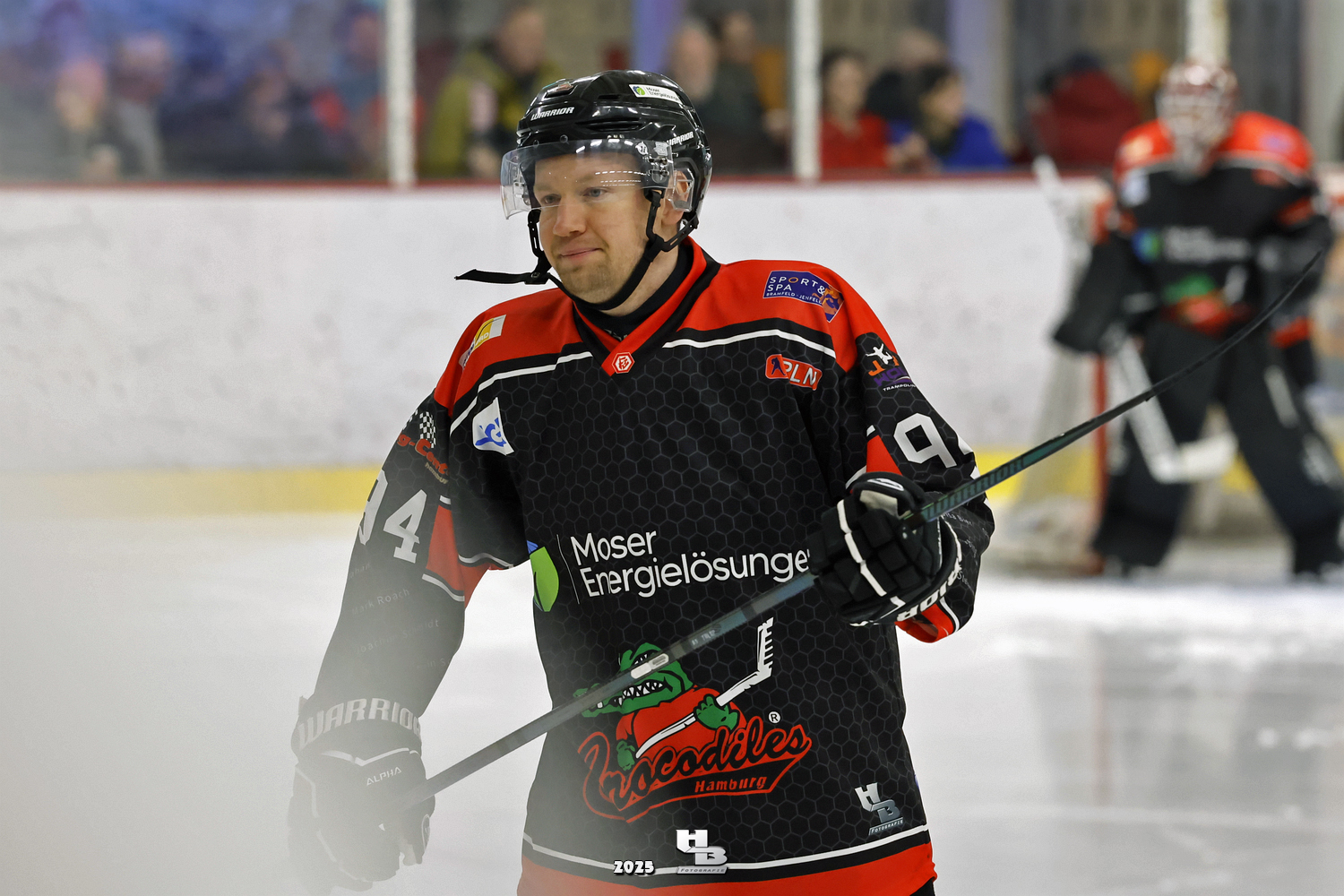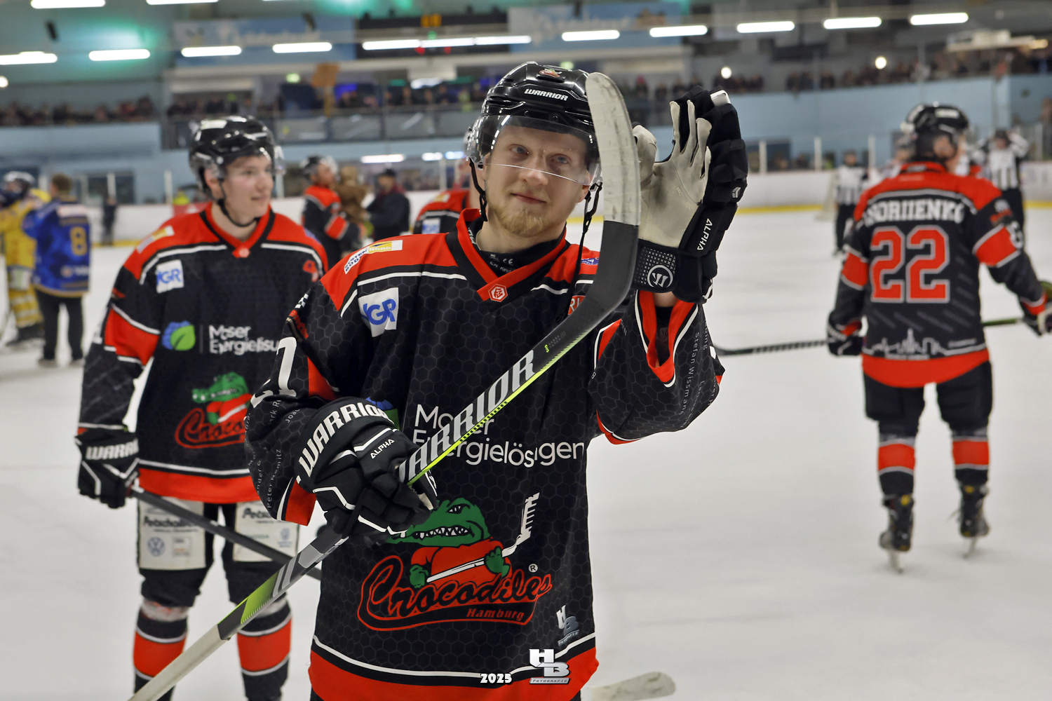 Im Schlussdrittel blieb das Spiel weiter temporeich. Die Crocodiles nutzten ihre Chancen konsequent: Ivan Savchenko erhöhte auf 3:1 und sorgte für etwas Ruhe. In der Schlussphase setzte der HSV alles auf eine Karte, nahm den Torhüter vom Eis – doch erneut war es Filip Kriz, der den Puck ins leere Tor beförderte und mit seinem zweiten Treffer des Abends den 4:1-Endstand besiegelte.