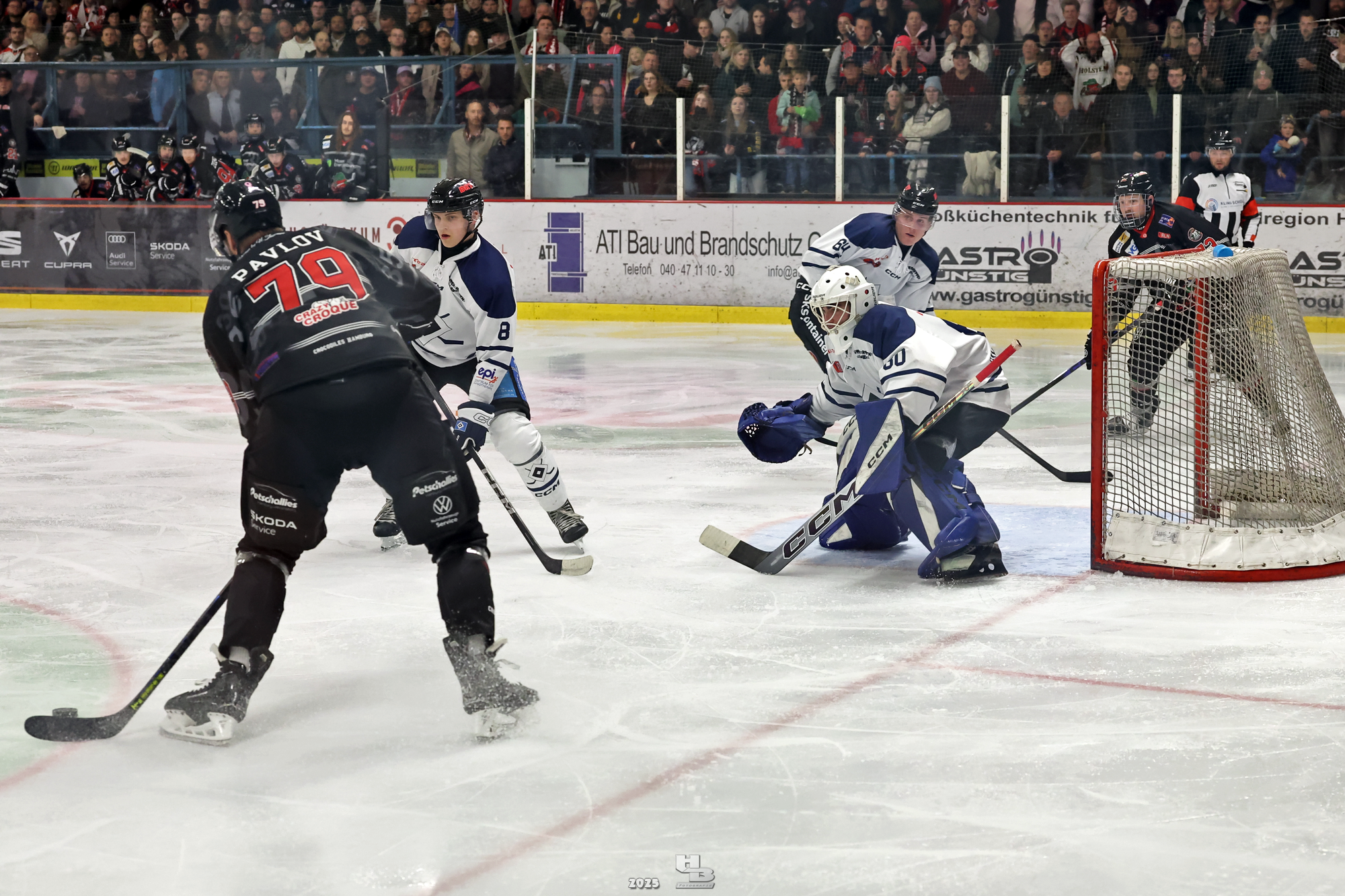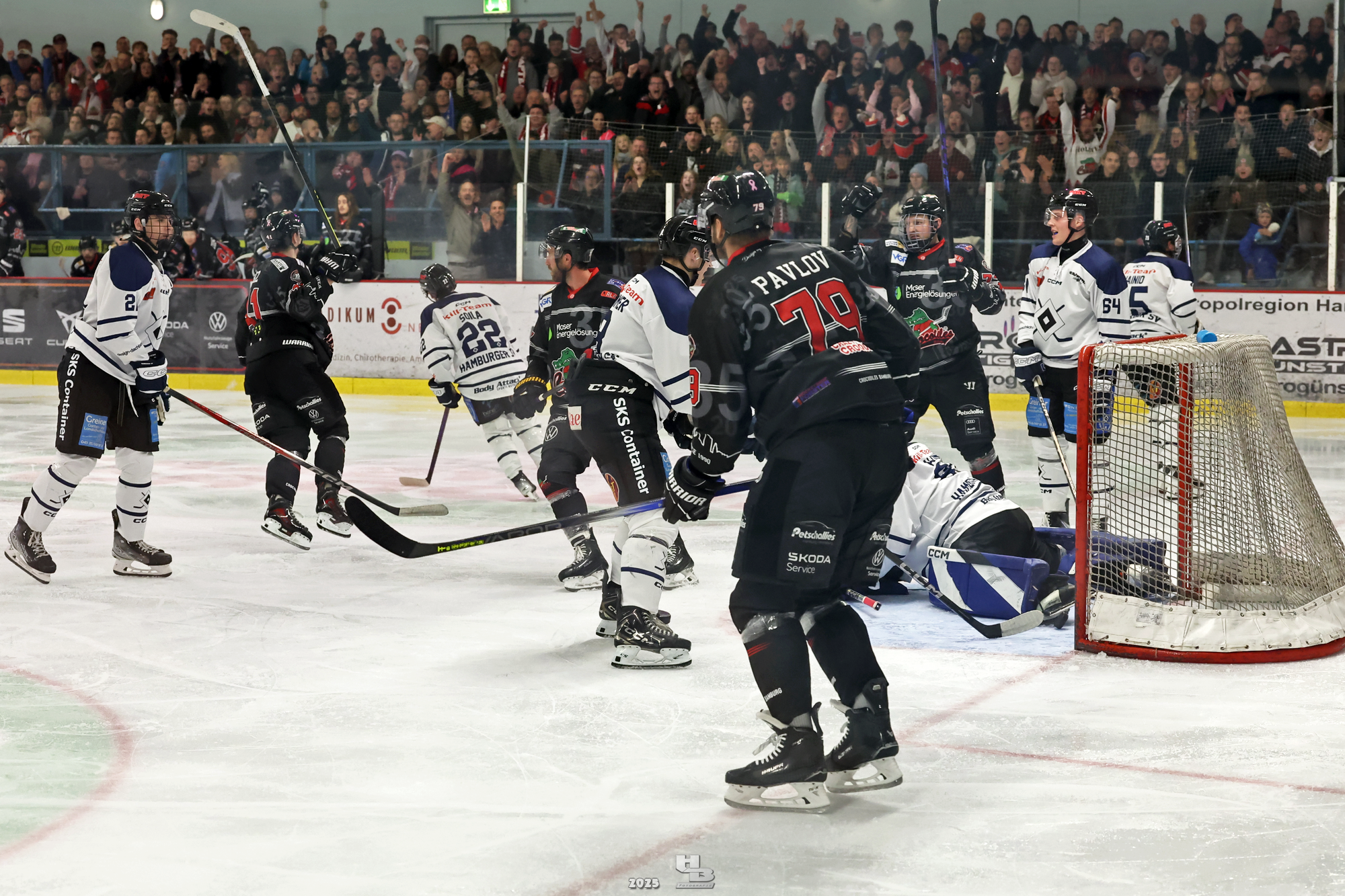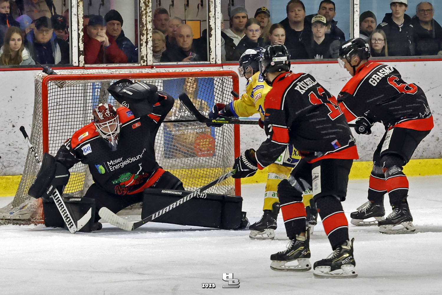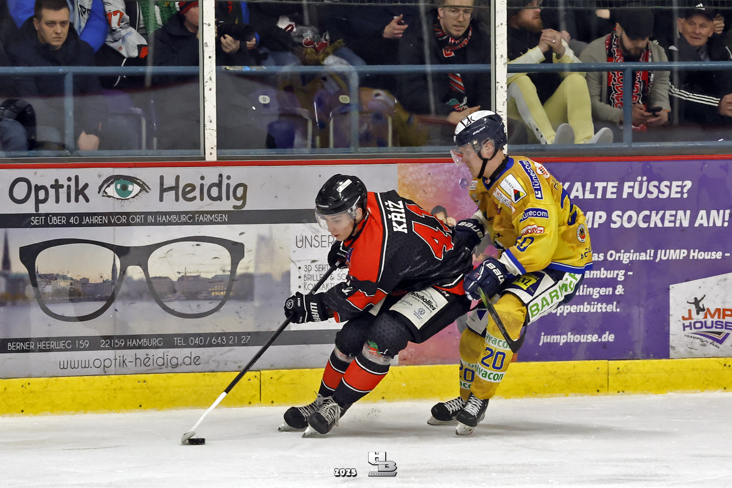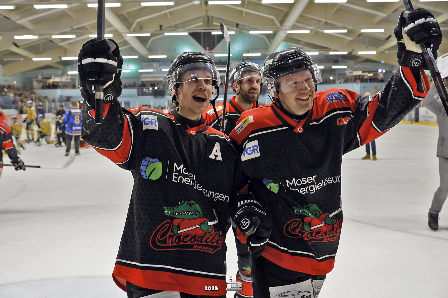 Im Schlussdrittel blieb das Spiel weiter temporeich. Die Crocodiles nutzten ihre Chancen konsequent: Ivan Savchenko erhöhte auf 3:1 und sorgte für etwas Ruhe. In der Schlussphase setzte der HSV alles auf eine Karte, nahm den Torhüter vom Eis – doch erneut war es Filip Kriz, der den Puck ins leere Tor beförderte und mit seinem zweiten Treffer des Abends den 4:1-Endstand besiegelte.