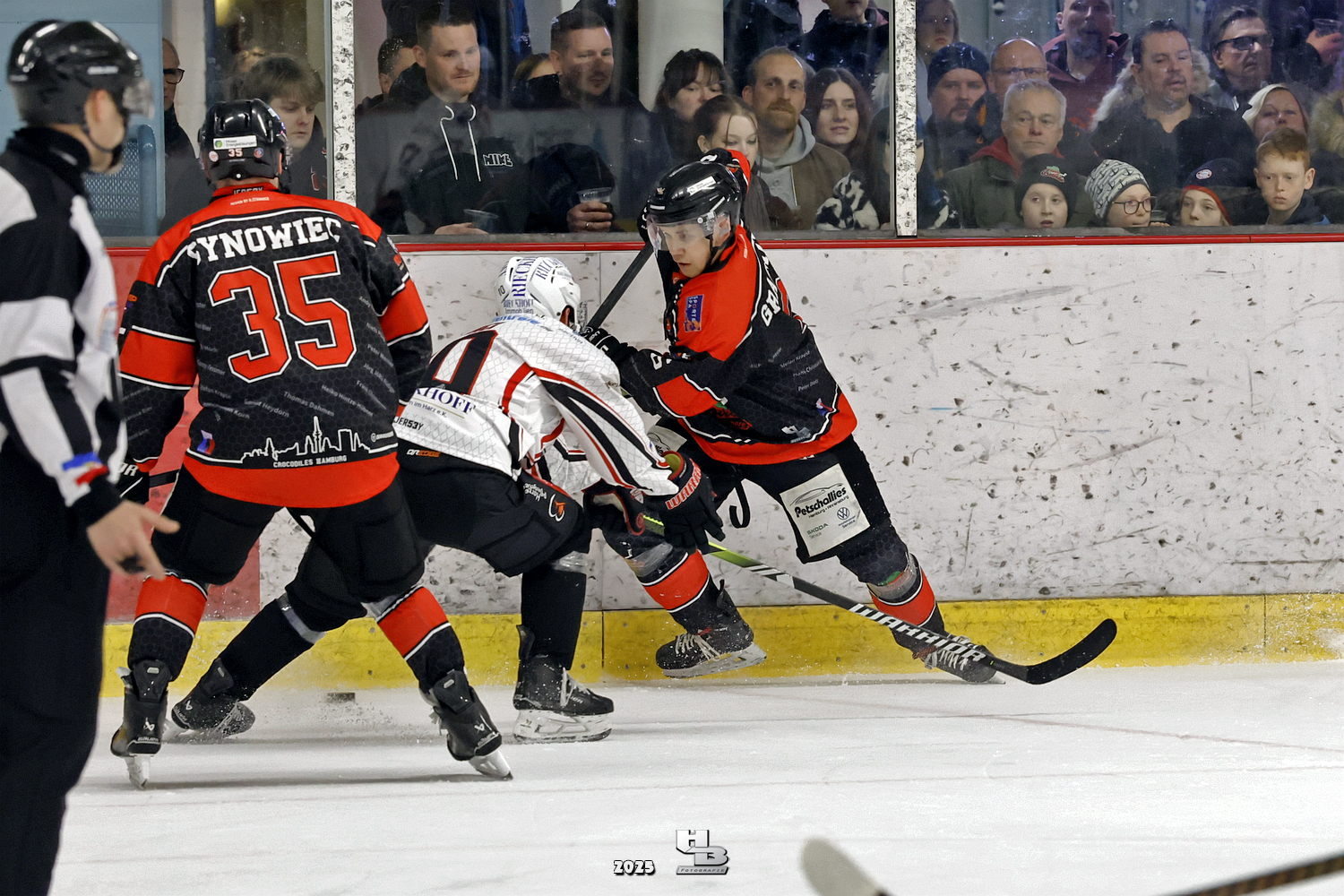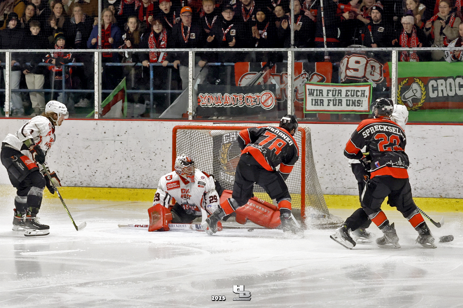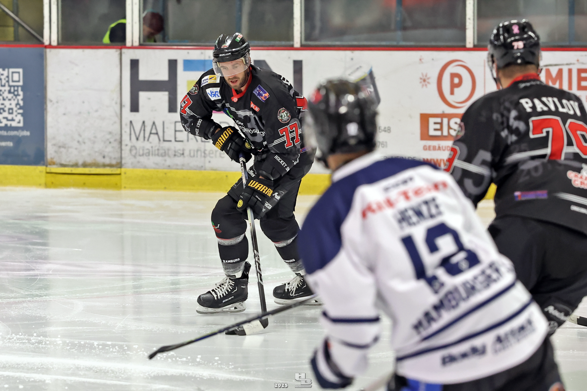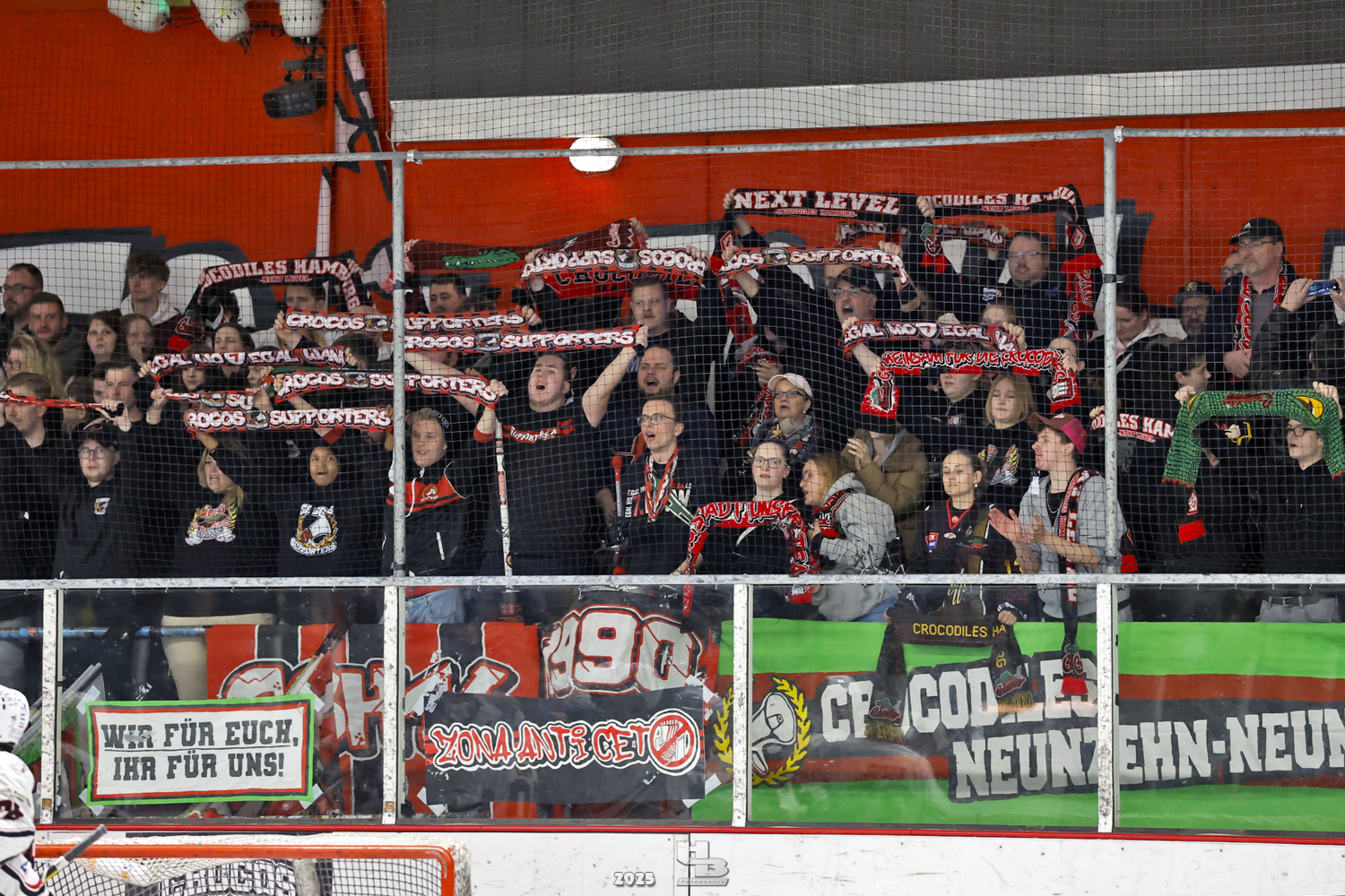 Im Schlussdrittel blieb das Spiel weiter temporeich. Die Crocodiles nutzten ihre Chancen konsequent: Ivan Savchenko erhöhte auf 3:1 und sorgte für etwas Ruhe. In der Schlussphase setzte der HSV alles auf eine Karte, nahm den Torhüter vom Eis – doch erneut war es Filip Kriz, der den Puck ins leere Tor beförderte und mit seinem zweiten Treffer des Abends den 4:1-Endstand besiegelte.