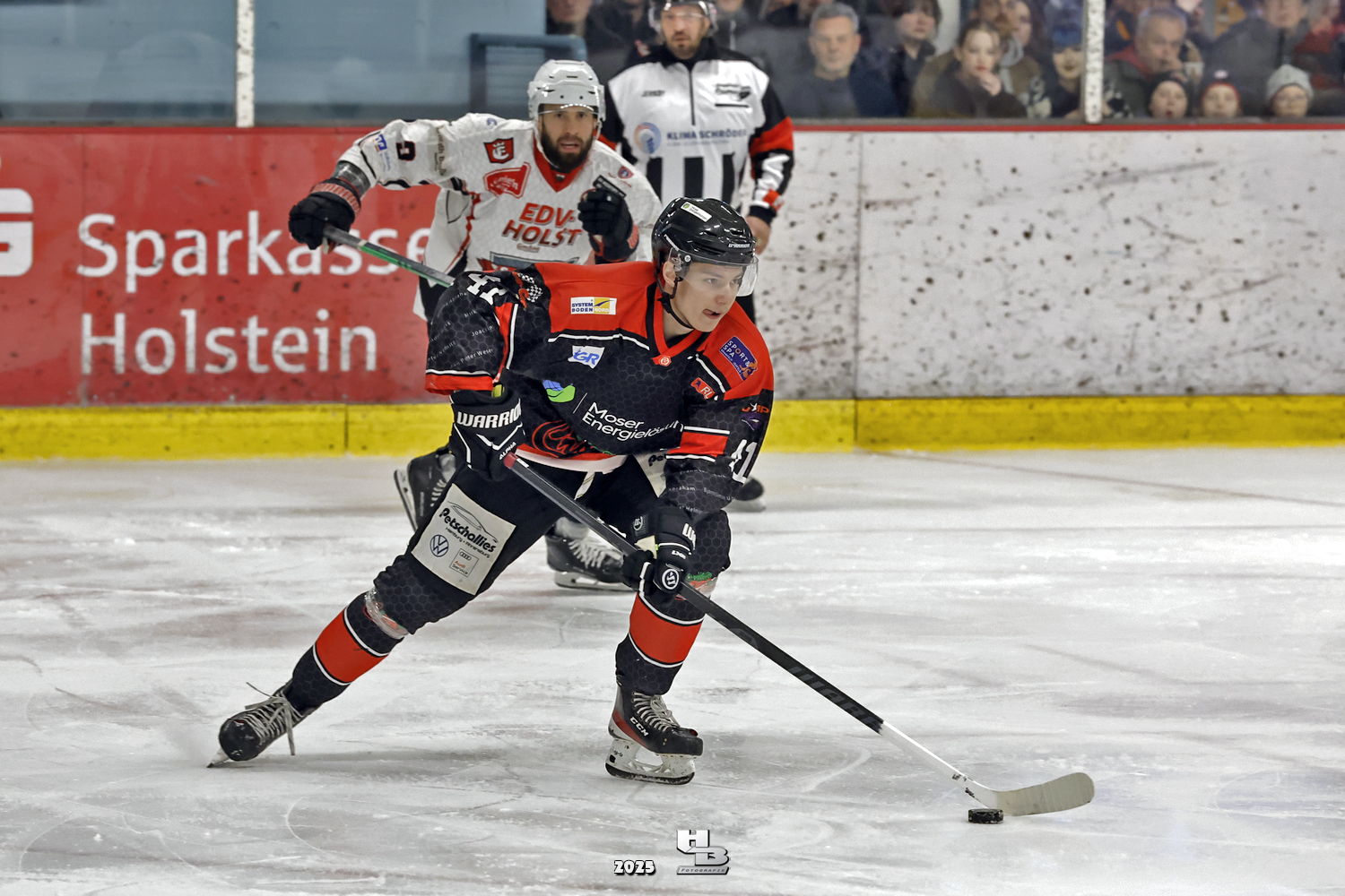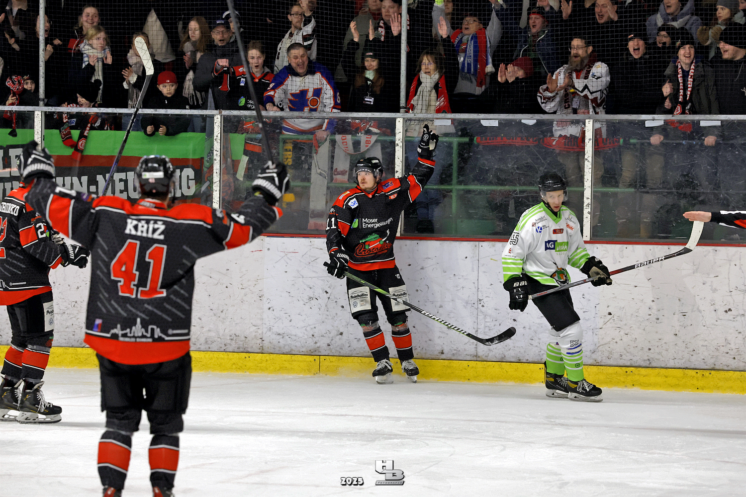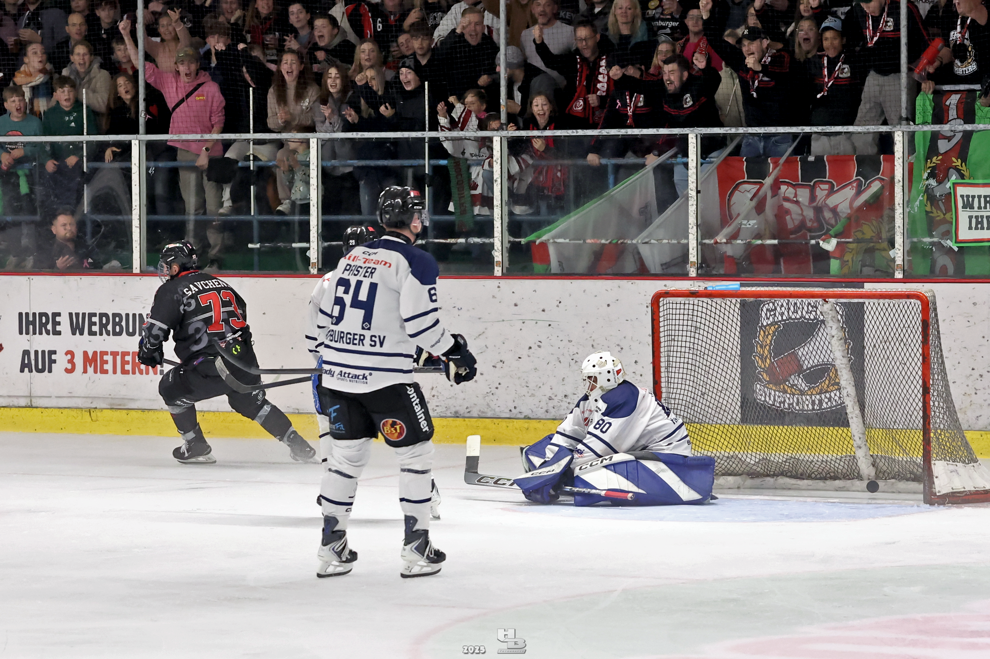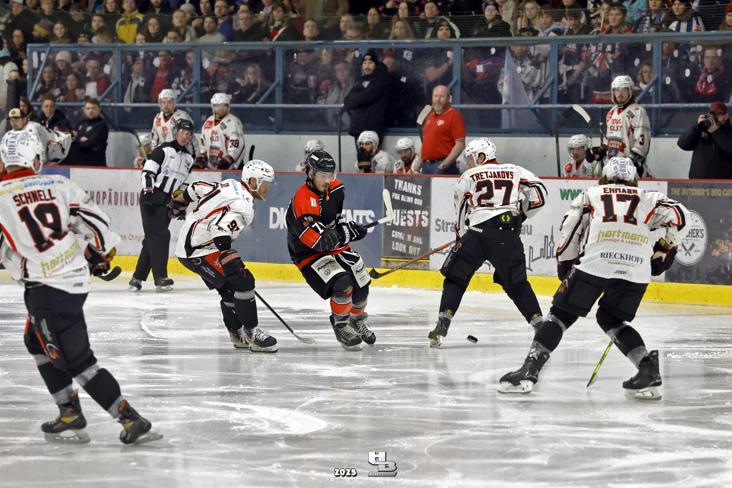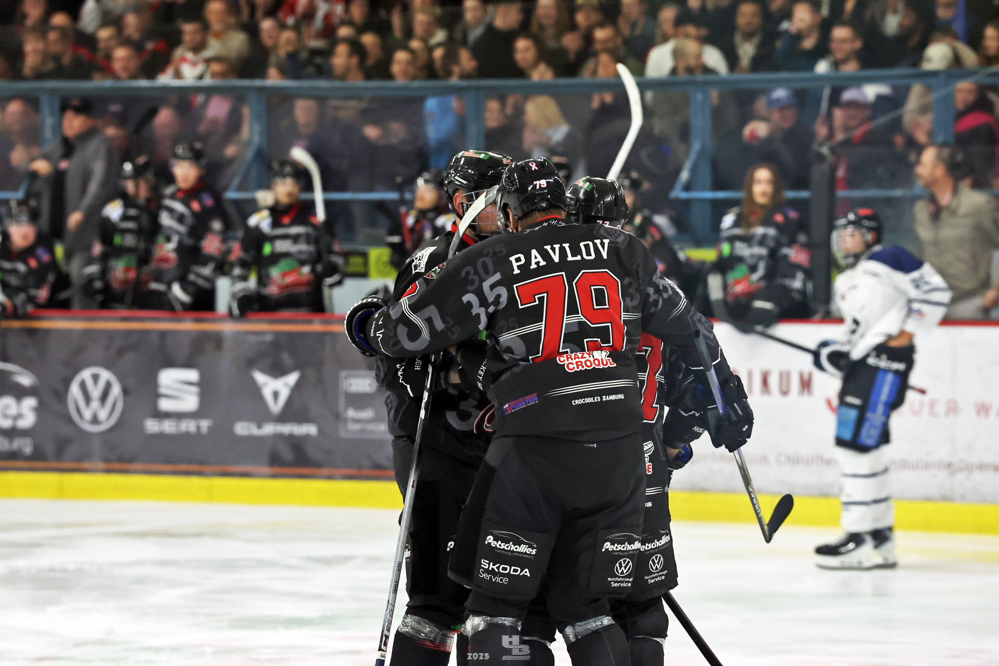 Im Schlussdrittel blieb das Spiel weiter temporeich. Die Crocodiles nutzten ihre Chancen konsequent: Ivan Savchenko erhöhte auf 3:1 und sorgte für etwas Ruhe. In der Schlussphase setzte der HSV alles auf eine Karte, nahm den Torhüter vom Eis – doch erneut war es Filip Kriz, der den Puck ins leere Tor beförderte und mit seinem zweiten Treffer des Abends den 4:1-Endstand besiegelte.