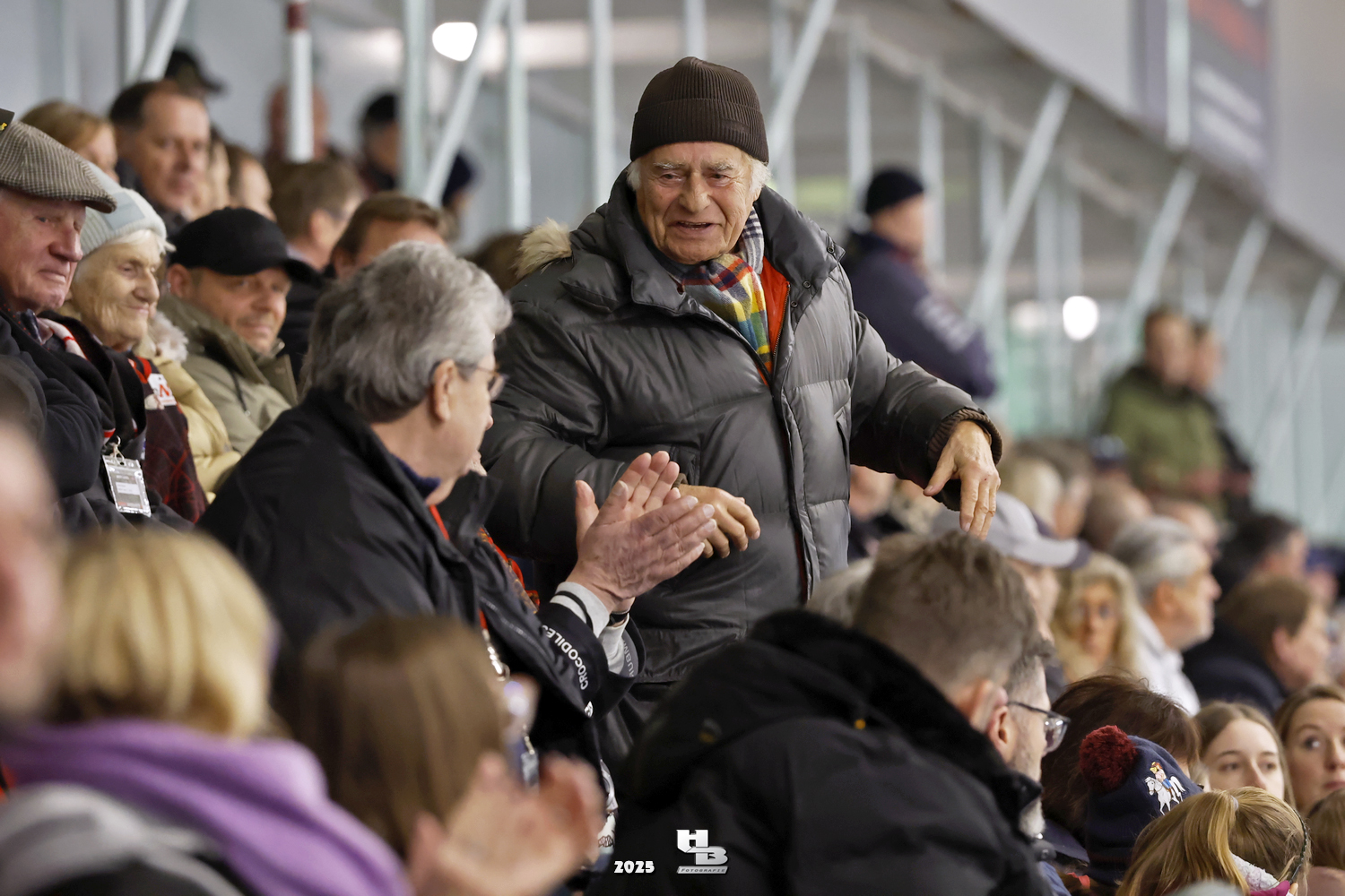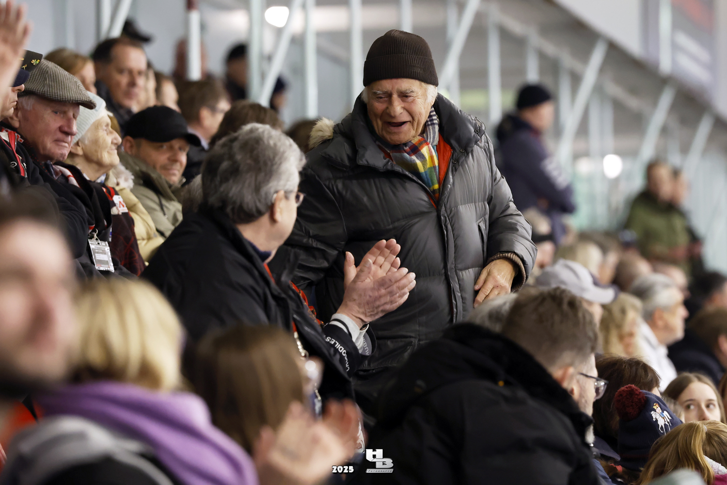 Auch Hamburgs „Mr. Eishockey“, auch bekannt als Hamburgs "Eishockey Papst", Nico Pethes (gründete 1968 die HSV-Abteilung), konnte in der Halle begrüßt werden und sah sich das Spiel an.