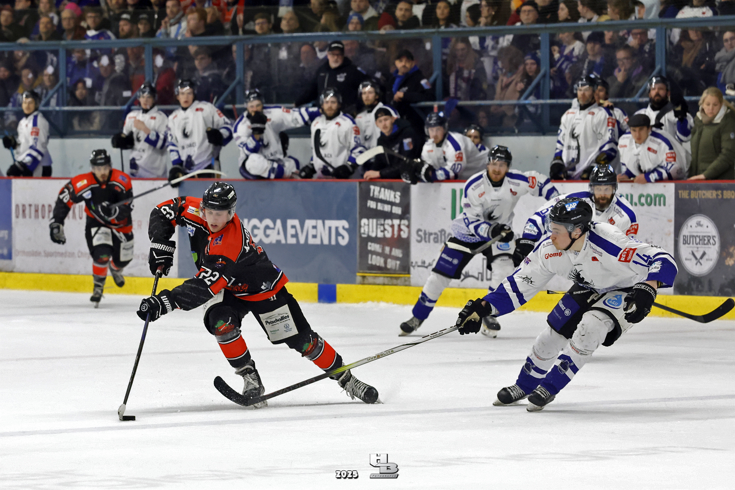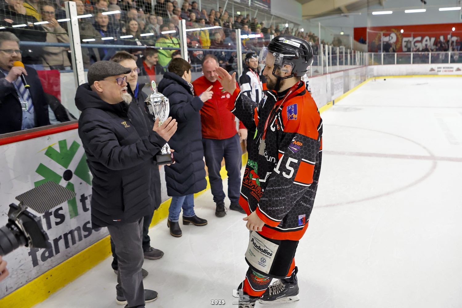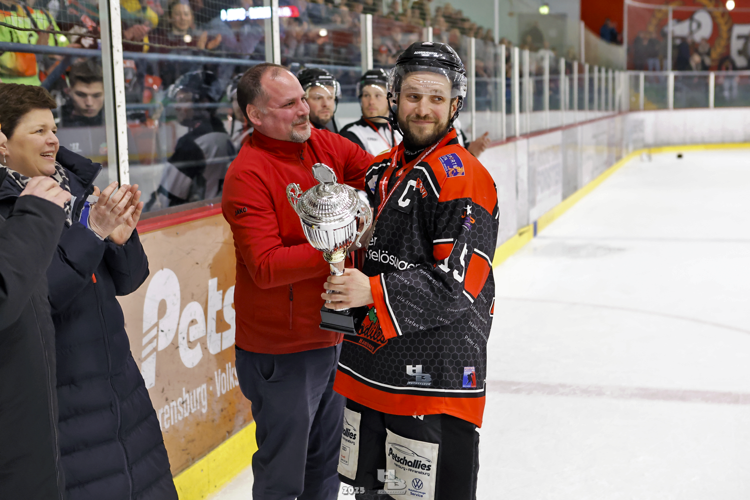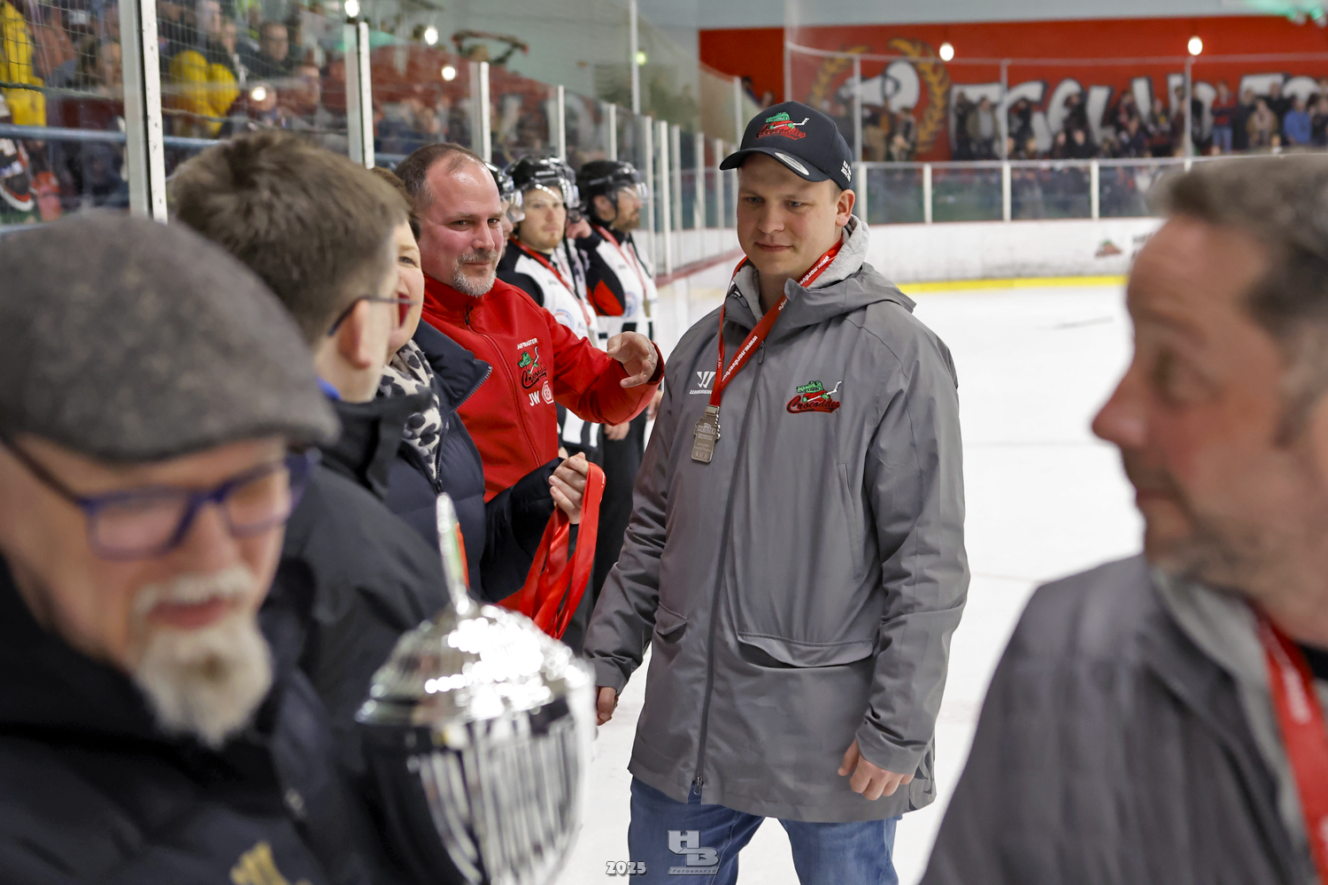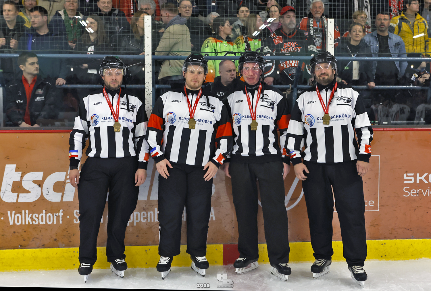 Am Sonntag, den 17.03.2025, kam es nach dem ersten Spiel am 15.03.2025. zum Rückspiel im Finale (best of 5) zwischen den Crocodiles Hamburg und den Harzer Falken. Im ausverkauften Eisland Farmsen, vor erneut 1955 Zuschauern, erwartete die Fans ein wahres Spektakel. Die Crocodiles wollten die Gunst der Stunde nutzen und starteten direkt mit einem Tor von der blauen Linie durch Miguel Boock zum 1:0 für die Crocodiles. Die Freude auf Seiten der Crocodiles währte nicht lange, denn keine 4 Minuten später war es Tretjakovs, der für die Falken zum 1:1 ausgleichen konnte. Mit diesem Spielstand ging es in die erste Pause des Abends. Im 2. Drittel war es dann Leo Prüßner, welcher für die Crocodiles einnetzen konnte. Kurz vor Ende des 2. Drittels konnten die Falken allerdings erneut ausgleichen. Zu Beginn des 3. Drittel, nach gerade einmal 14 Sekunden, klingelte es direkt im Tor der Crocodiles. Die Falken führten nun 3:2.