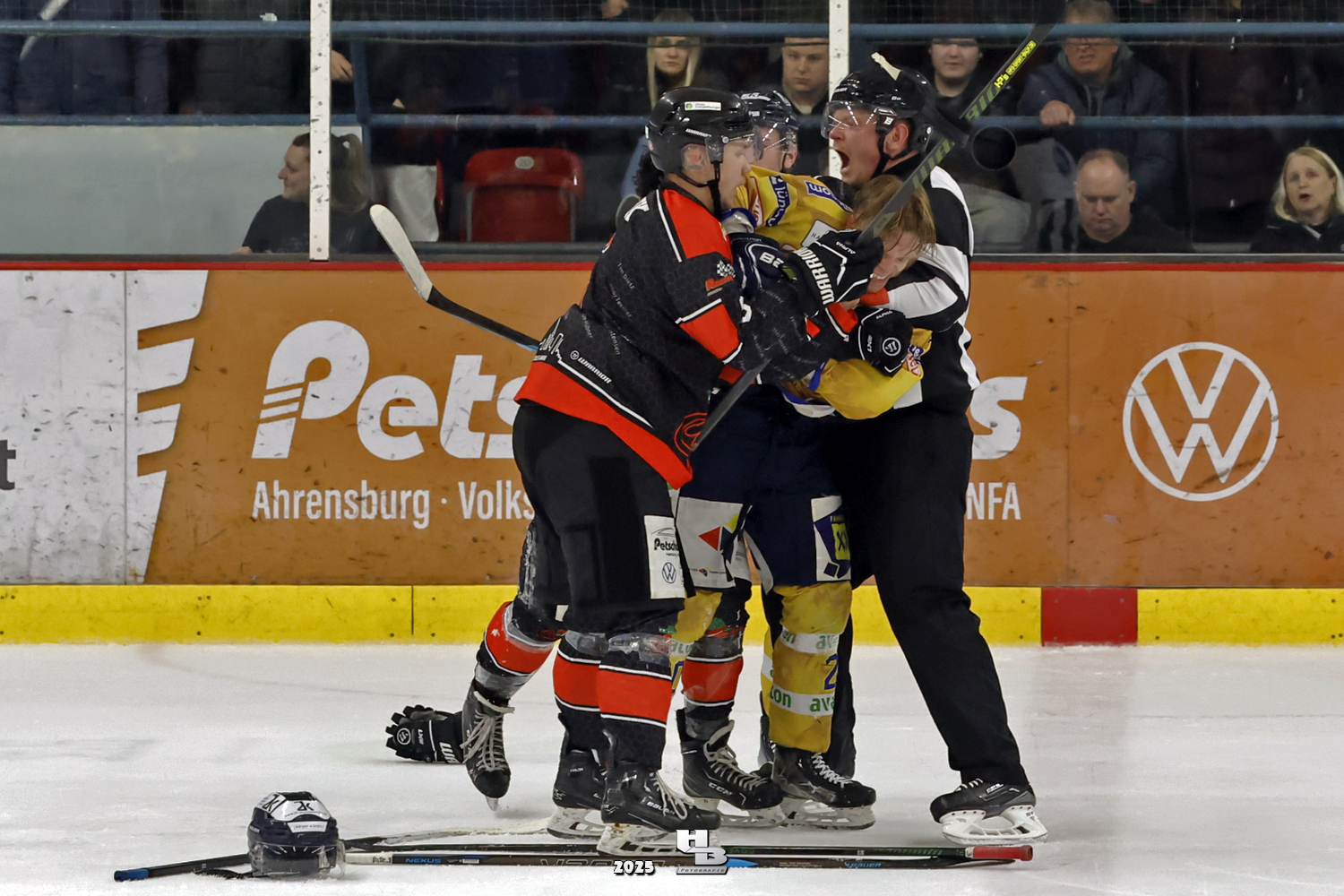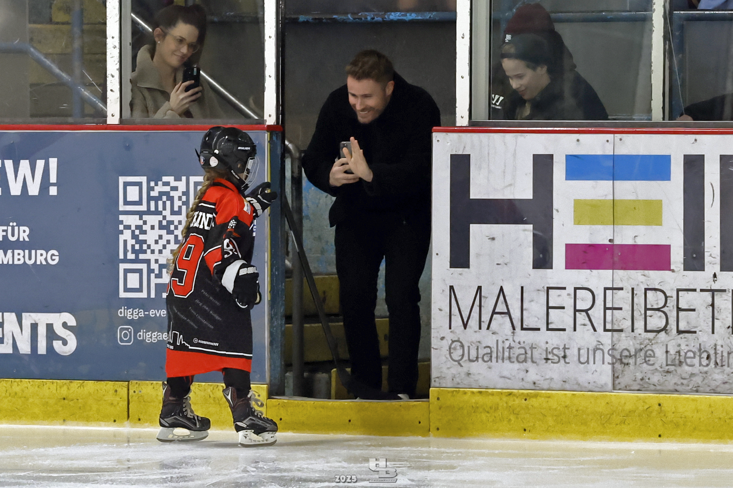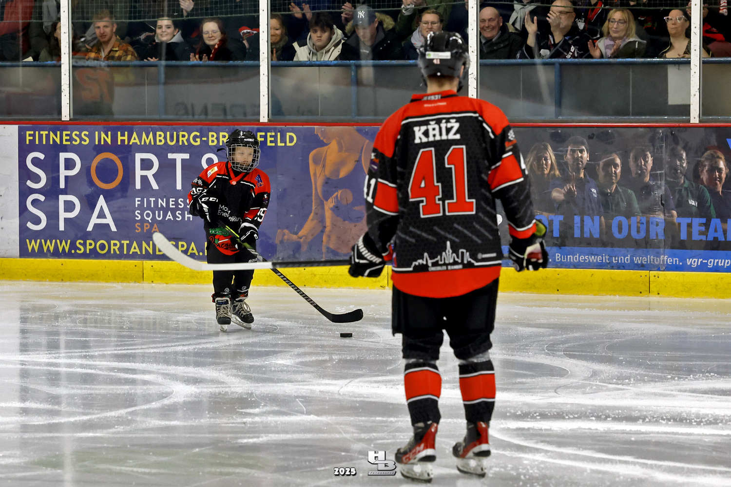 Im zweiten Drittel kam der HSV zunächst besser ins Spiel, doch die Hausherren verteidigten konzentriert und fanden bald wieder zu ihrem offensiven Rhythmus. In der 24. Spielminute brachte Filip Kriz die Crocodiles mit seinem Treffer nach Vorarbeit von Vitalijs Pavlovs und Ivan Savchenko mit 2:1 in Führung. Mit diesem Spielstand ging es auch in die zweite Drittelpause – und die hatte ein besonderes Highlight zu bieten: Nicht der langjährige Eismeister Jürgen, sondern Deutschlands jüngste Eismeisterin Stella (21 Jahre) übernahm die Aufbereitung der Eisfläche und erhielt dafür Applaus von den Rängen.