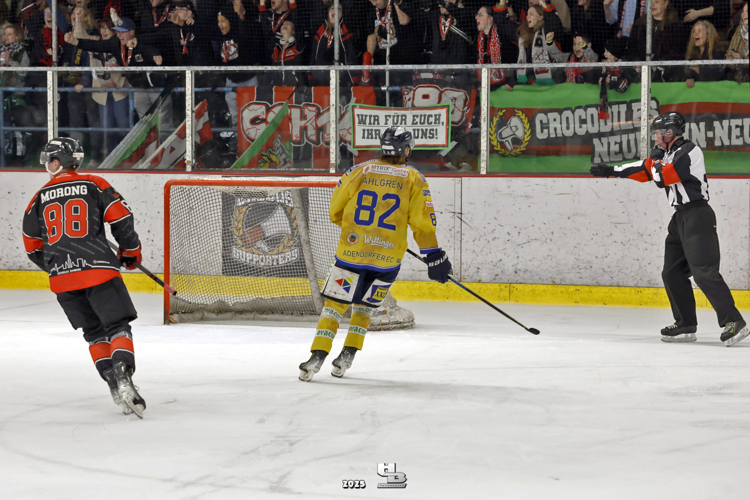 Wer nun dachte, Adendorf würde aufgeben, sah sich getäuscht. Kovacs wurde noch einmal vom Eis genommen, um einen weiteren Feldspieler zu haben. Alle Bemühungen wurden für Adendorf aber nicht belohnt und Filip Kriz erzielte für die Crocodiles den 4:1 Siegtreffer.