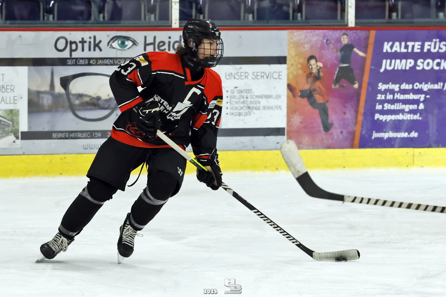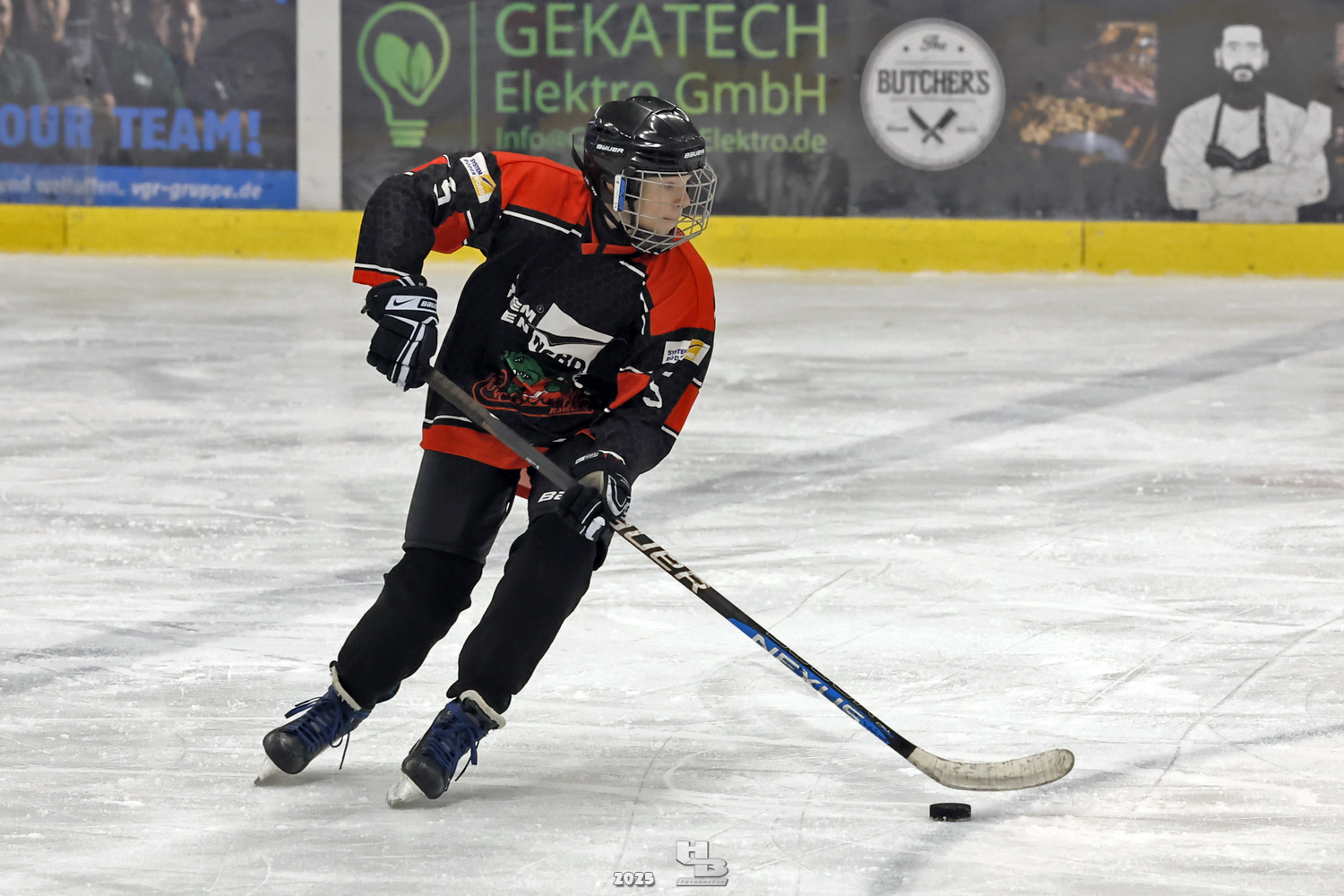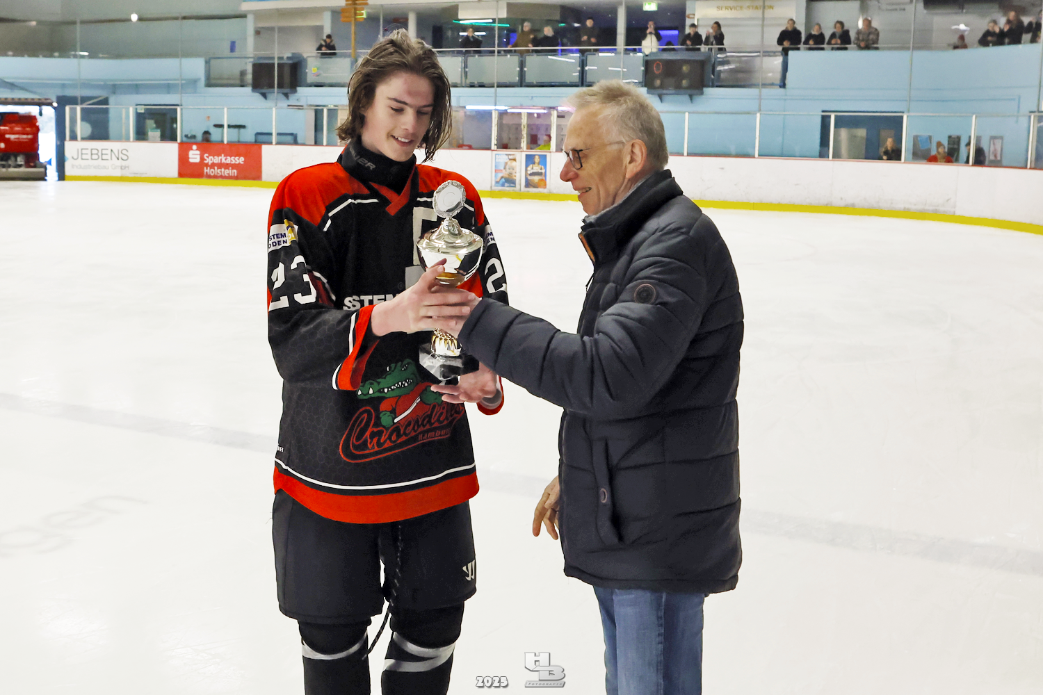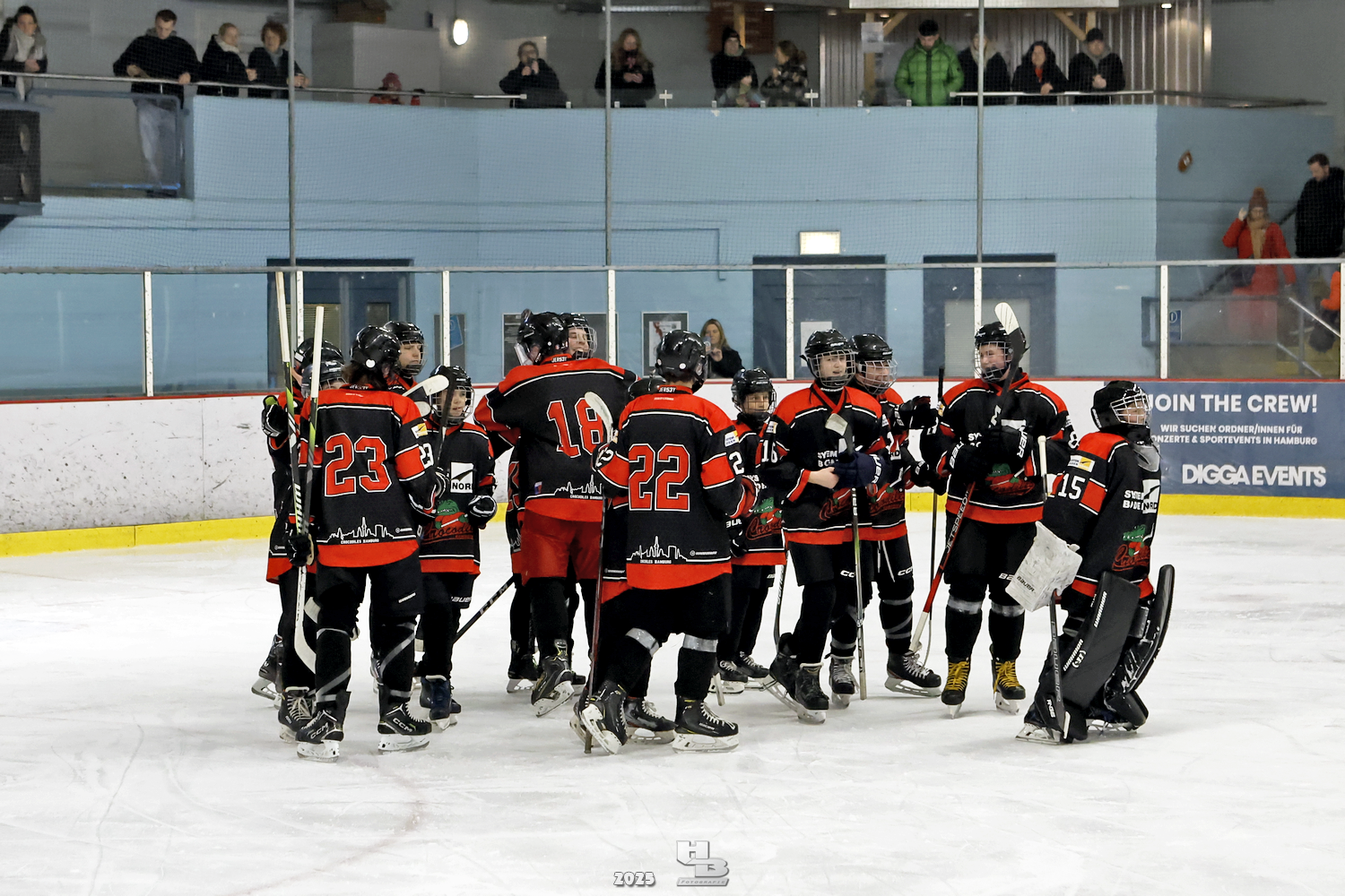 Im Schlussdrittel zeigten die Gäste aus Harsefeld zunächst eine Reaktion und erzielten ihr zweites Tor, was den Spielstand auf 5:2 verkürzte. Doch die Crocodiles blieben konzentriert und legten mit zwei weiteren Toren durch #23 Fiete Buschhüter nach, der damit ebenfalls einen Hattrick erzielte.