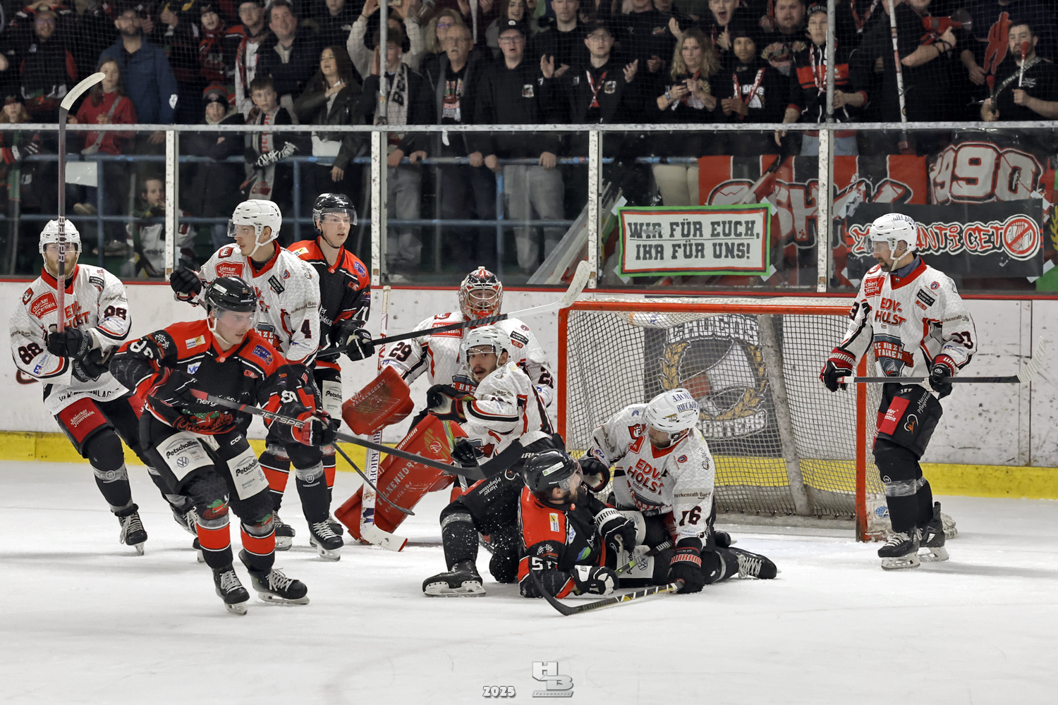 In der 47. Minute traf nun Filip Kriz auf Zuspiel von Matej Morong zum Ausgleich von 3:3. Die Crocodiles erhöhten nun den Druck auf das Tor der Falken und wurden in der 49. Minute erneut durch Filip Kriz belohnt. Das Publikum stand im Eisland und feuerte die Mannschaft weiter an. Kurz vor Ende des 3. Drittels gab es eine Strafe gegen die Crocodiles, welche die Falken nutzten, um durch Andre Geratz den Ausgleich zum 4:4 zu erzielen, was auch der Endstand nach der regulären Spielzeit war.