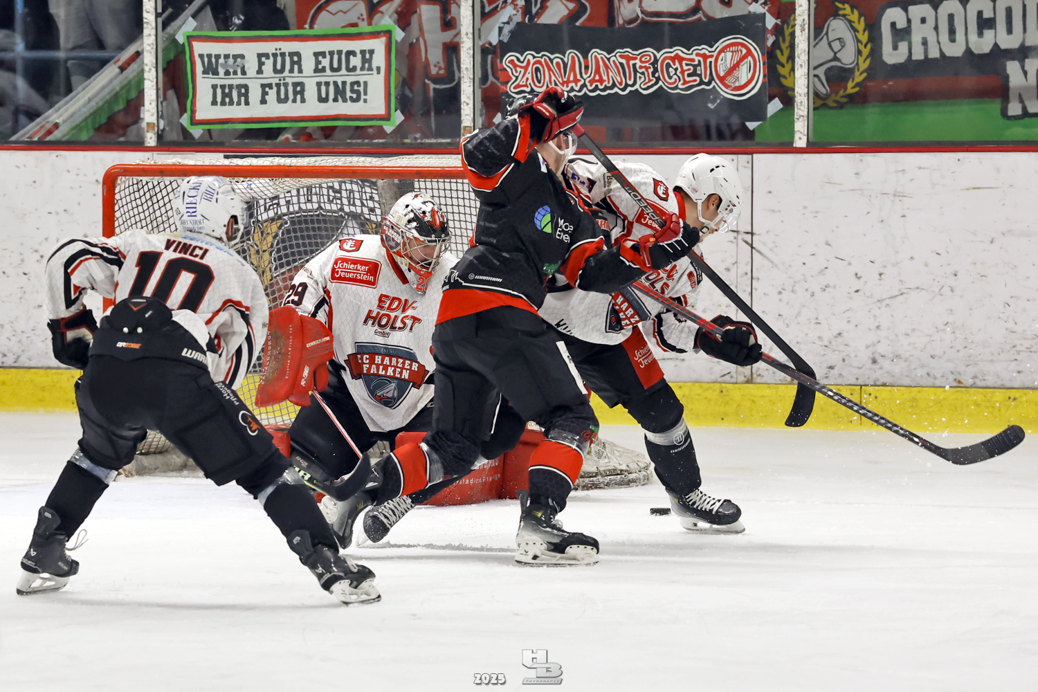 Im zweiten Drittel dauerte es nur 3 Minuten und 45 Sekunden, bis die Harzer Falken in der 34. Spielminute das erste Tor erzielten und mit 1:0 in Führung gingen. Nur knapp drei Minuten später folgte das 2:0 für die Falken, was die Crocodiles unter Druck setzte.