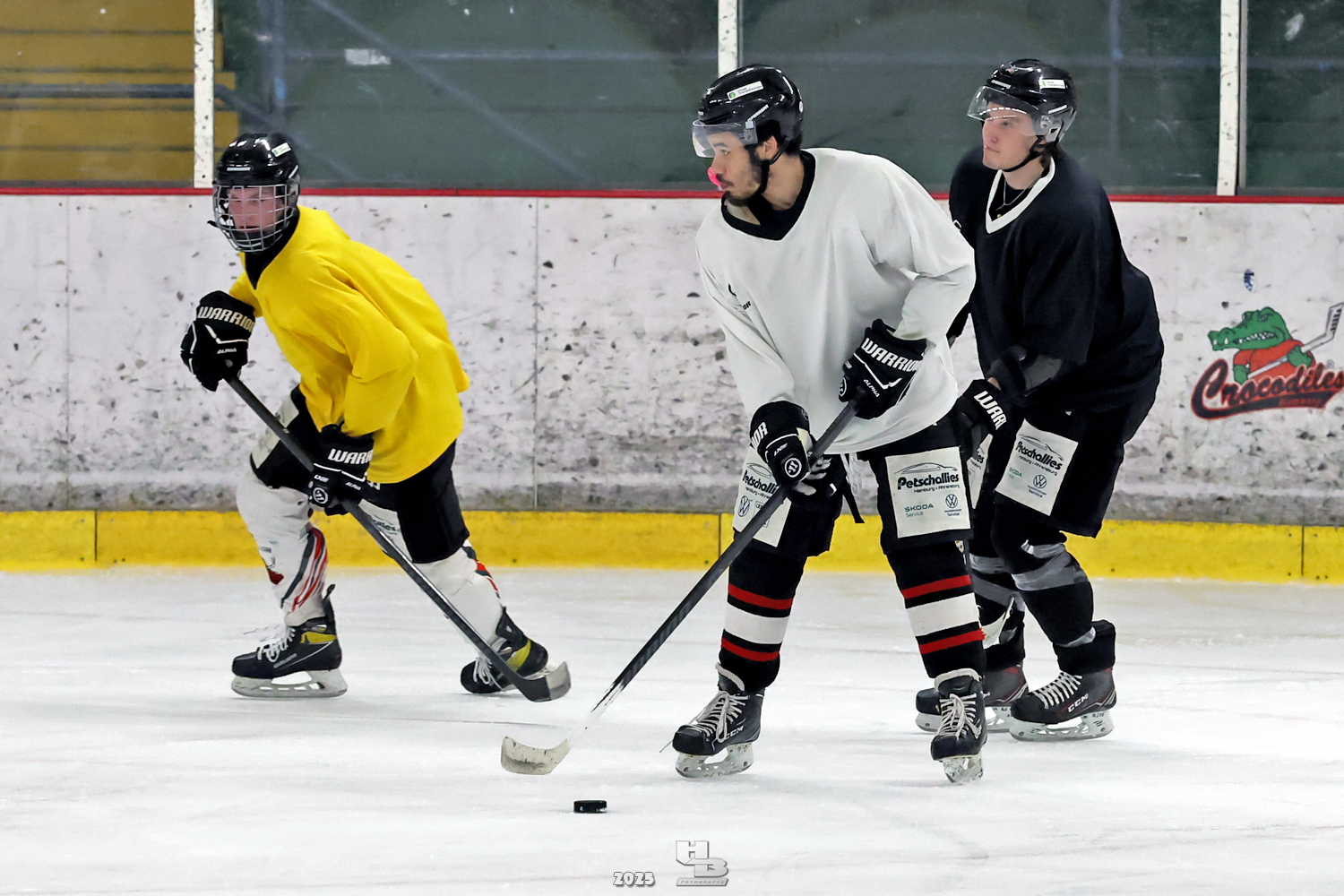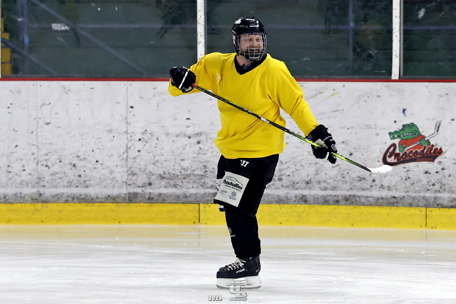 Ein ganz besonderer Gast war ebenfalls anwesend: sportdirekt.tv, das Team, das die Crocodiles während der Saison regelmäßig begleitet und über ihre Spiele berichtet hat. Heute hatte der Moderator die Gelegenheit, selbst aktiv zu werden und gemeinsam mit den Crocodiles auf das Eis zu gehen.
