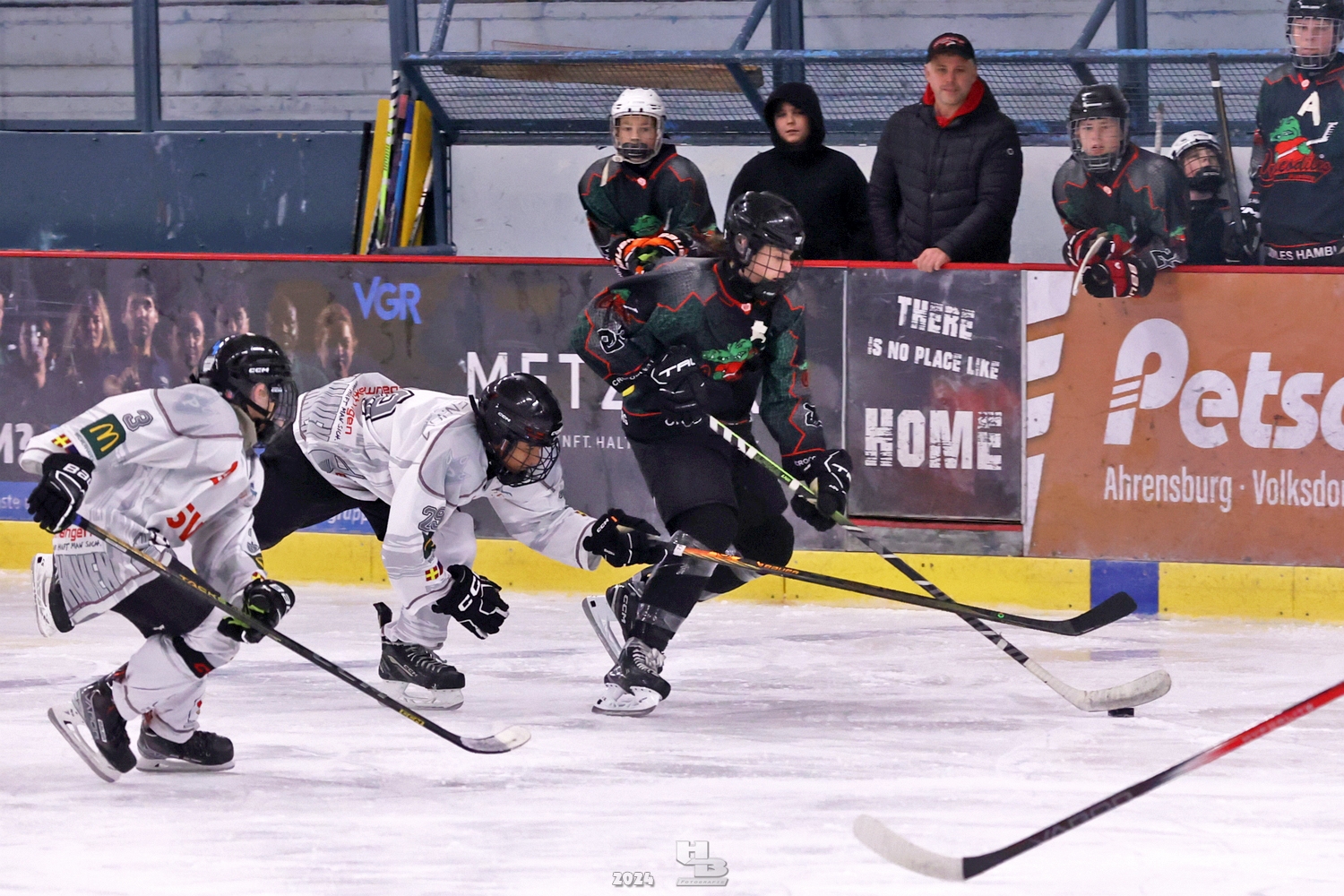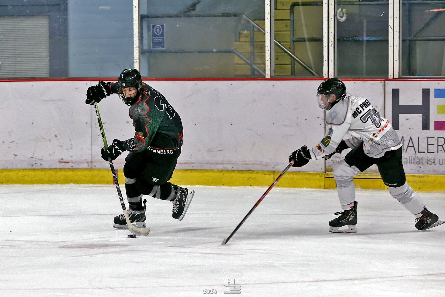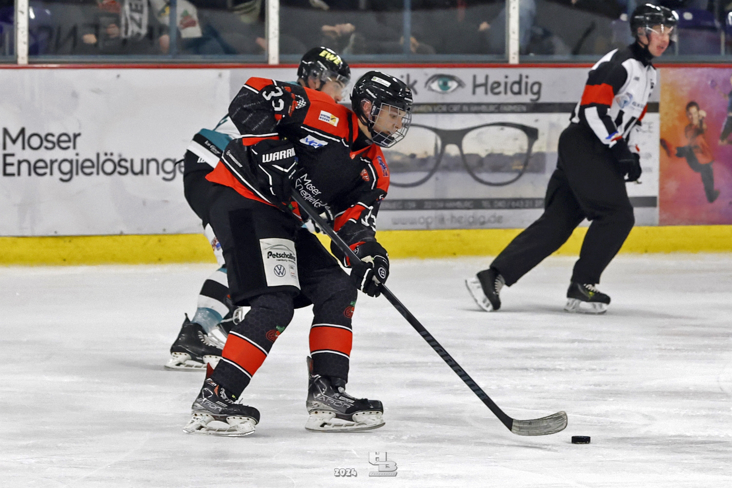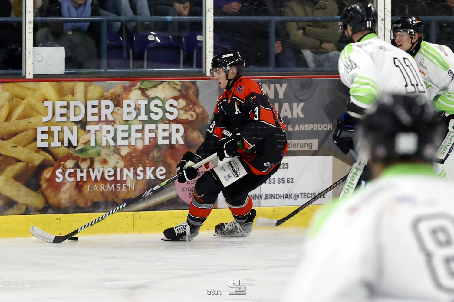Von Beginn an war die Mannschaft hochkonzentriert und wollte an den Erfolg in Adendorf anknüpfen und den Anschluss in der Tabelle halten und sogar Plätze gut machen. Nach nicht einmal 3 Minuten im 1. Drittel klingelte es bereits im Kasten der Harsefeld Tigers. Torschütze war Luke Külbel auf Vorlage von Lenny Reik. In der 6. Minute musste dann der in Hamburg bestens bekannte Rasid Saitov, der vom HSV nach Harsefeld gewechselt ist, auf die Strafbank. Nach kurzem Abtasten war es dann Timi Liivalathi, der auf Vorlage von Matej Morong auf 2:0 erhöhen konnte. Mit dieser Führung ging es dann auch in die 1. Pause.