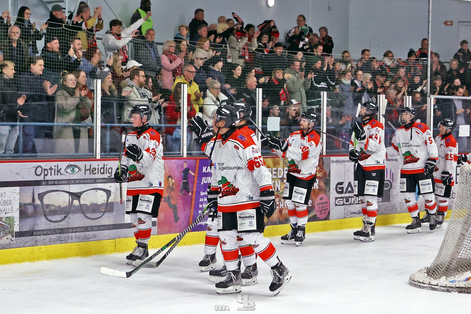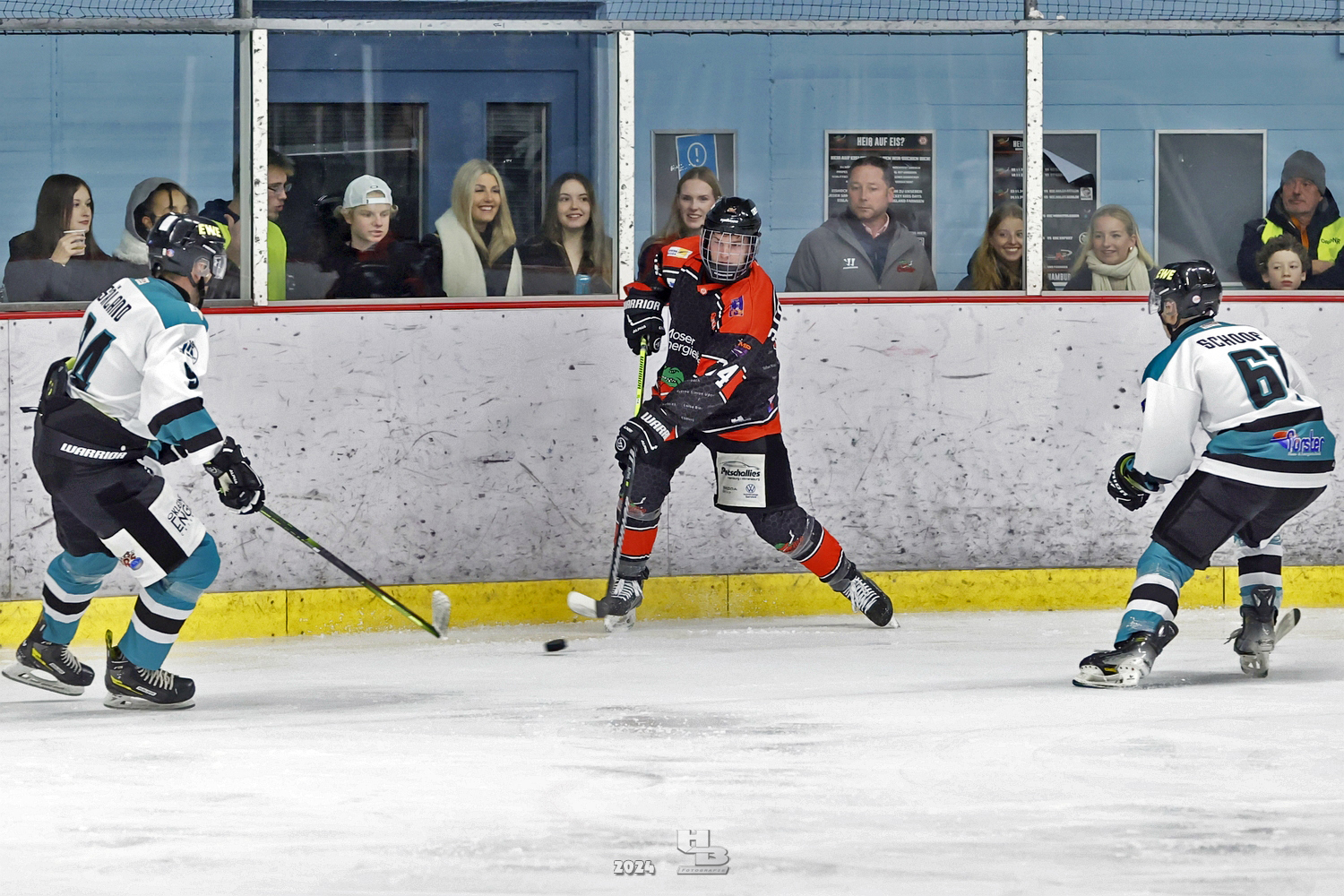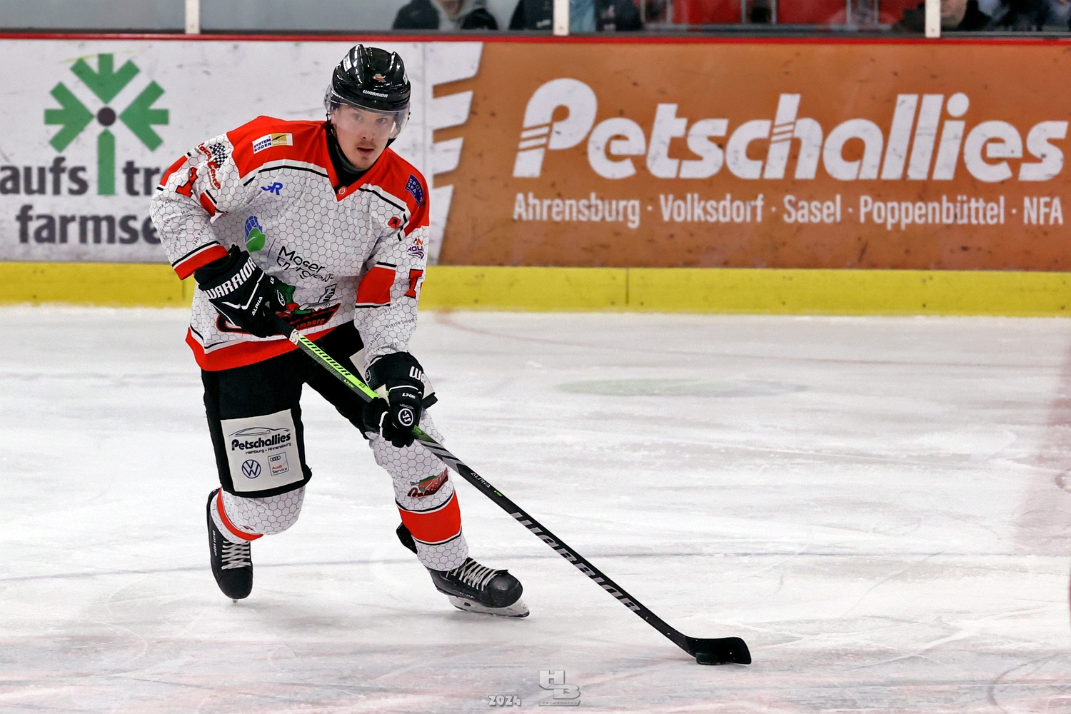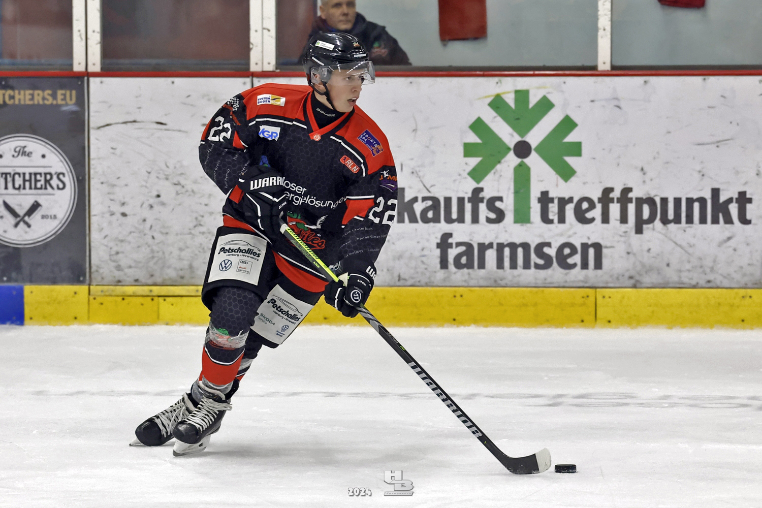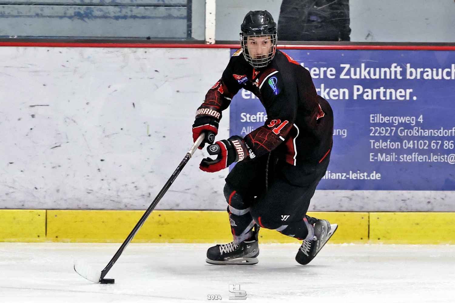 Von Beginn an war die Mannschaft hochkonzentriert und wollte an den Erfolg in Adendorf anknüpfen und den Anschluss in der Tabelle halten und sogar Plätze gut machen. Nach nicht einmal 3 Minuten im 1. Drittel klingelte es bereits im Kasten der Harsefeld Tigers. Torschütze war Luke Külbel auf Vorlage von Lenny Reik. In der 6. Minute musste dann der in Hamburg bestens bekannte Rasid Saitov, der vom HSV nach Harsefeld gewechselt ist, auf die Strafbank. Nach kurzem Abtasten war es dann Timi Liivalathi, der auf Vorlage von Matej Morong auf 2:0 erhöhen konnte. Mit dieser Führung ging es dann auch in die 1. Pause.