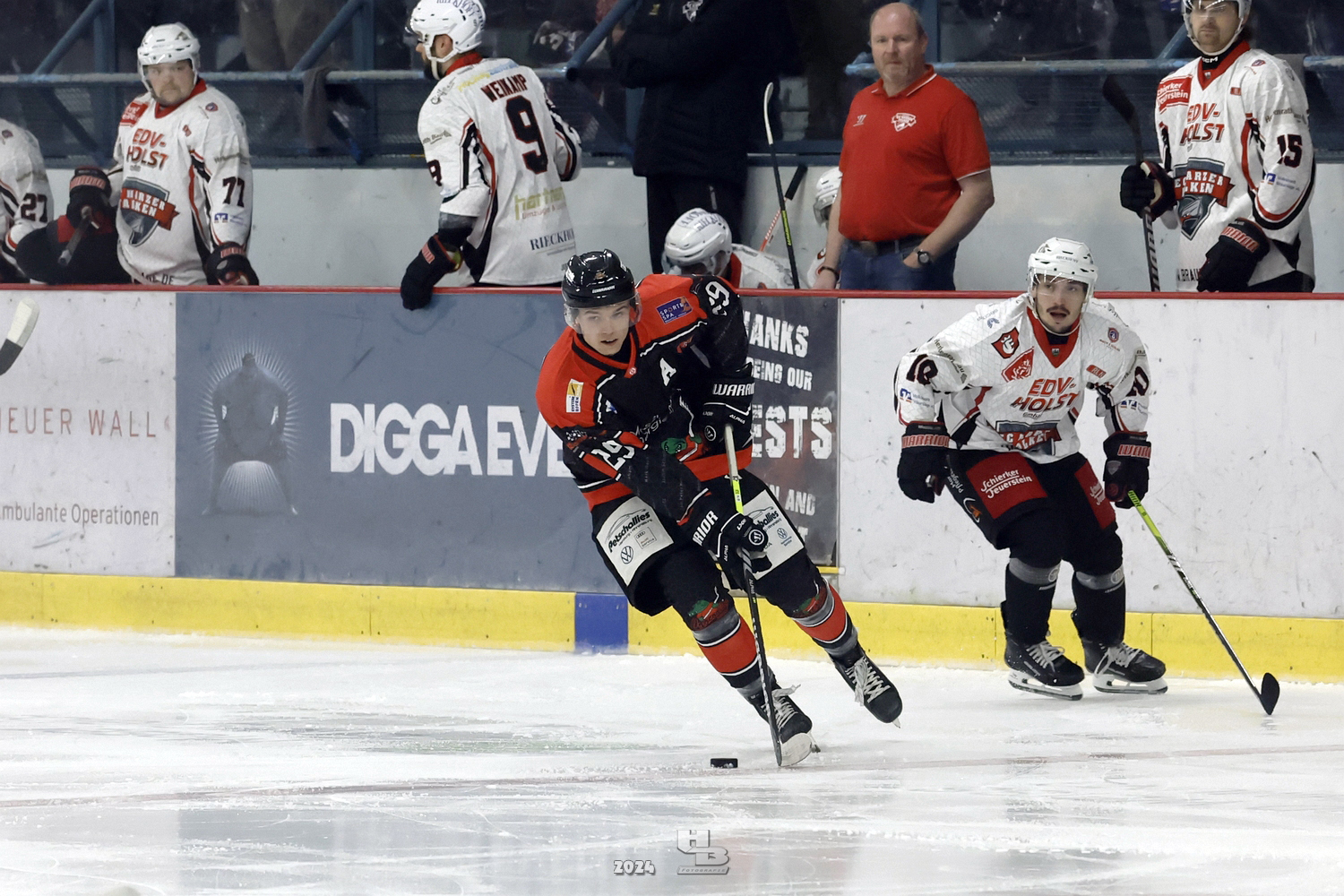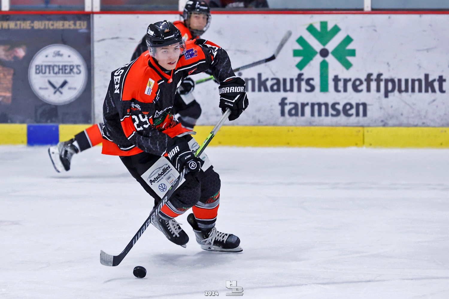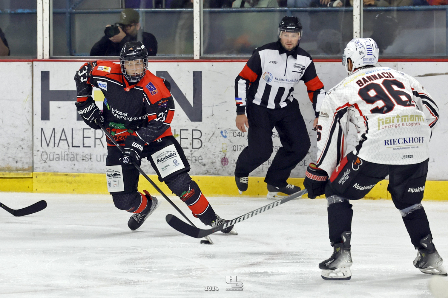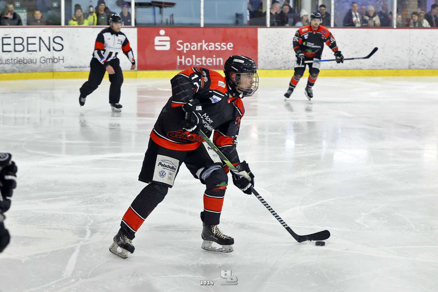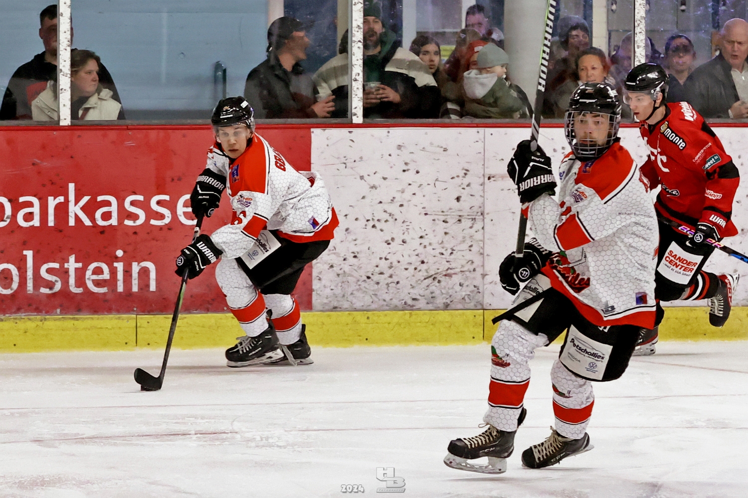Von Beginn an war die Mannschaft hochkonzentriert und wollte an den Erfolg in Adendorf anknüpfen und den Anschluss in der Tabelle halten und sogar Plätze gut machen. Nach nicht einmal 3 Minuten im 1. Drittel klingelte es bereits im Kasten der Harsefeld Tigers. Torschütze war Luke Külbel auf Vorlage von Lenny Reik. In der 6. Minute musste dann der in Hamburg bestens bekannte Rasid Saitov, der vom HSV nach Harsefeld gewechselt ist, auf die Strafbank. Nach kurzem Abtasten war es dann Timi Liivalathi, der auf Vorlage von Matej Morong auf 2:0 erhöhen konnte. Mit dieser Führung ging es dann auch in die 1. Pause.