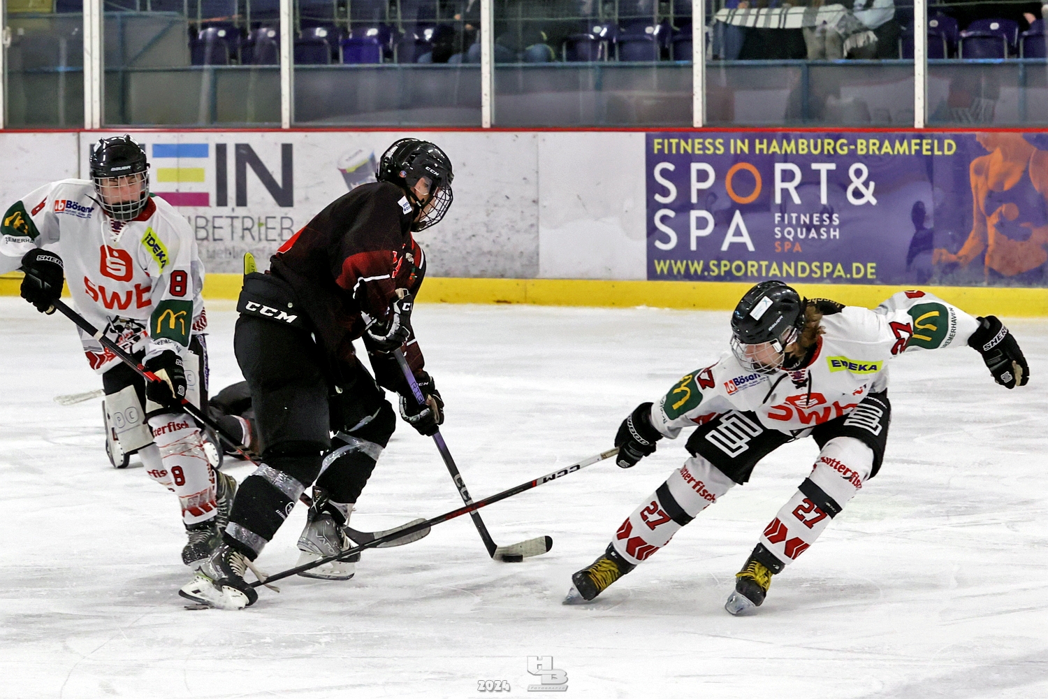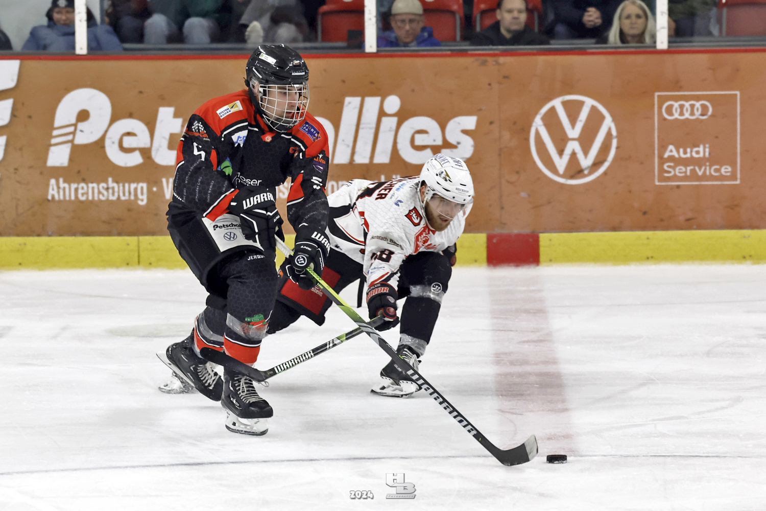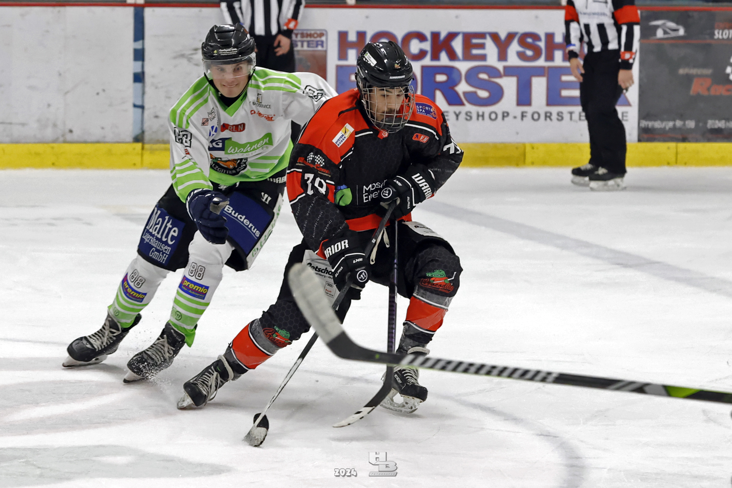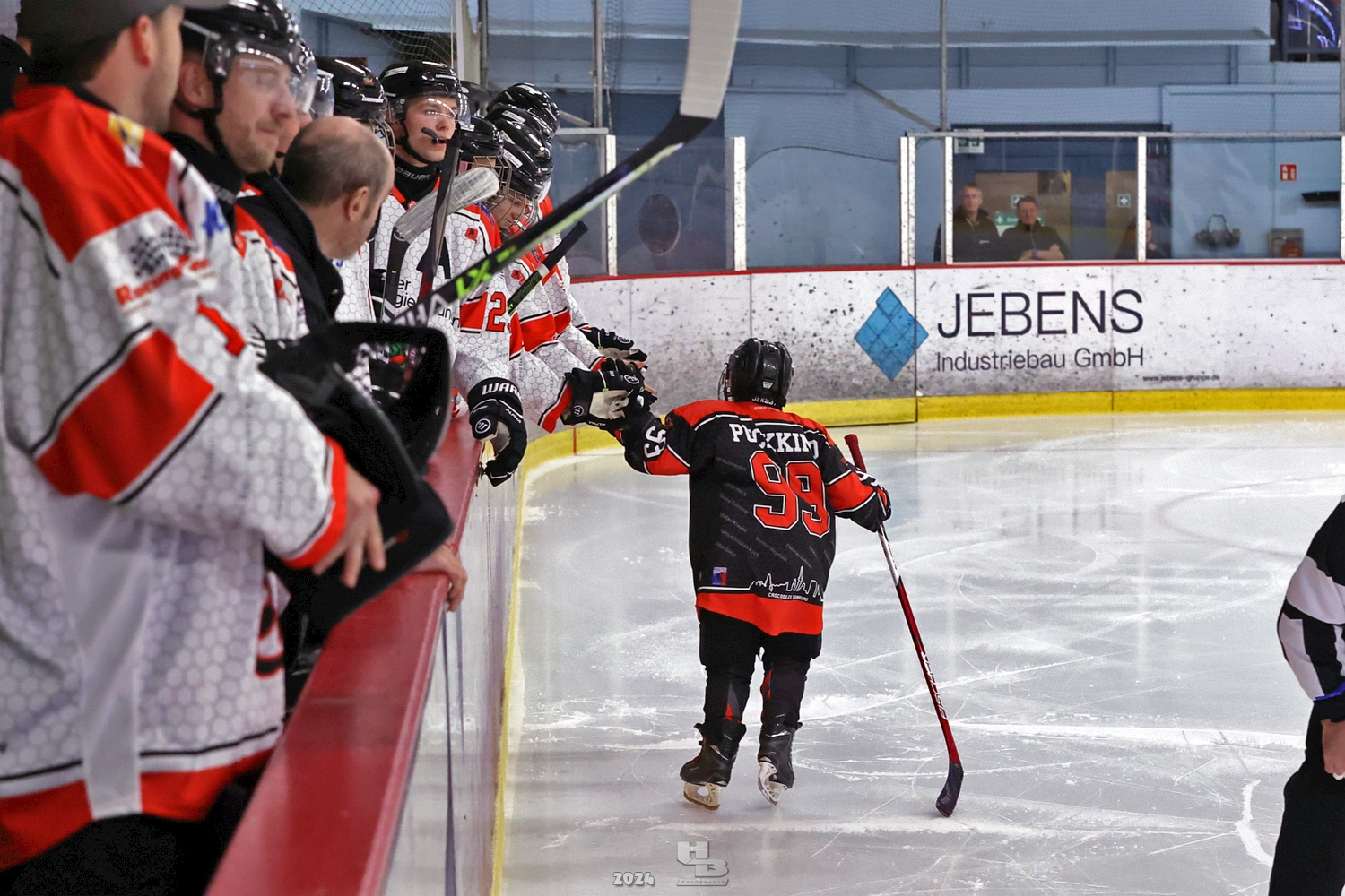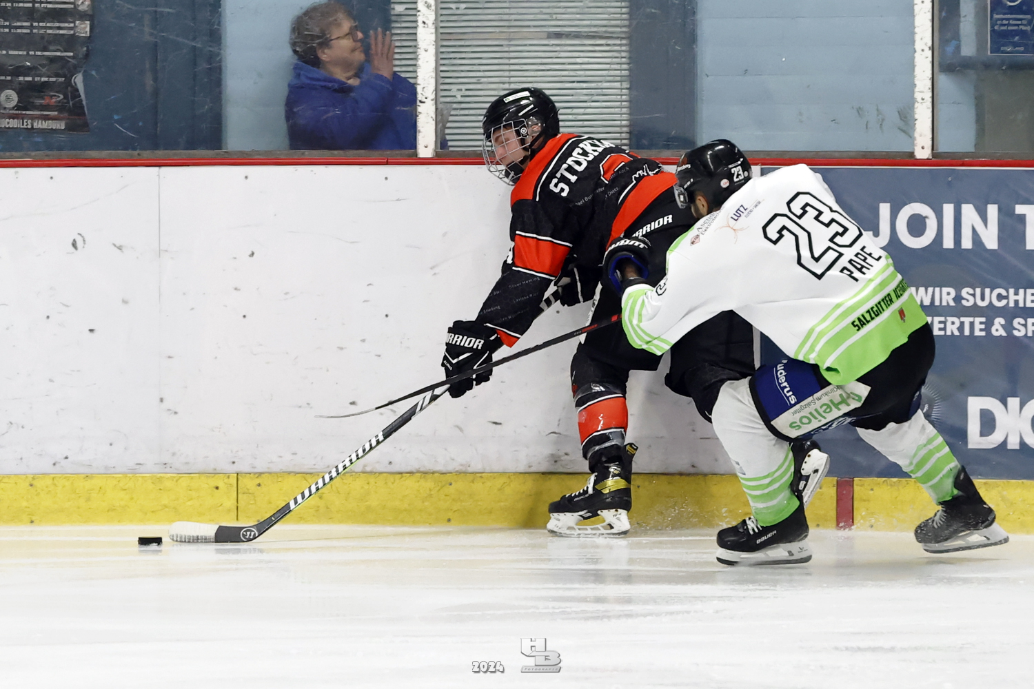 Von Beginn an war die Mannschaft hochkonzentriert und wollte an den Erfolg in Adendorf anknüpfen und den Anschluss in der Tabelle halten und sogar Plätze gut machen. Nach nicht einmal 3 Minuten im 1. Drittel klingelte es bereits im Kasten der Harsefeld Tigers. Torschütze war Luke Külbel auf Vorlage von Lenny Reik. In der 6. Minute musste dann der in Hamburg bestens bekannte Rasid Saitov, der vom HSV nach Harsefeld gewechselt ist, auf die Strafbank. Nach kurzem Abtasten war es dann Timi Liivalathi, der auf Vorlage von Matej Morong auf 2:0 erhöhen konnte. Mit dieser Führung ging es dann auch in die 1. Pause.