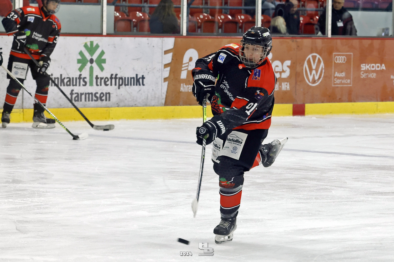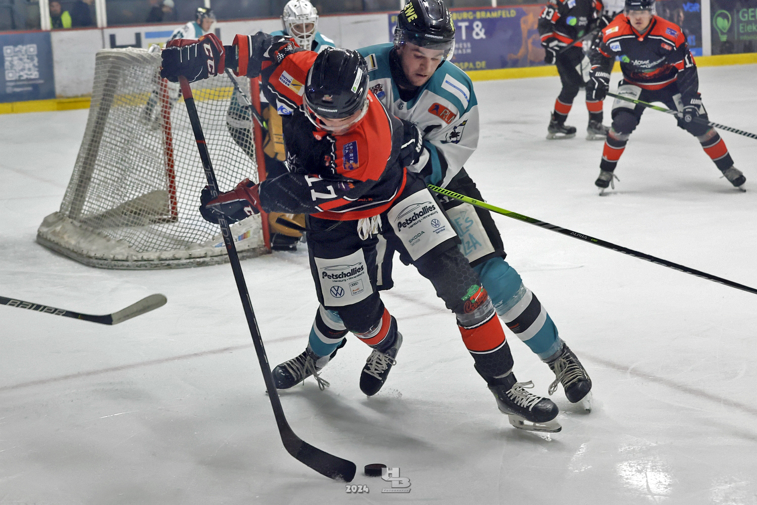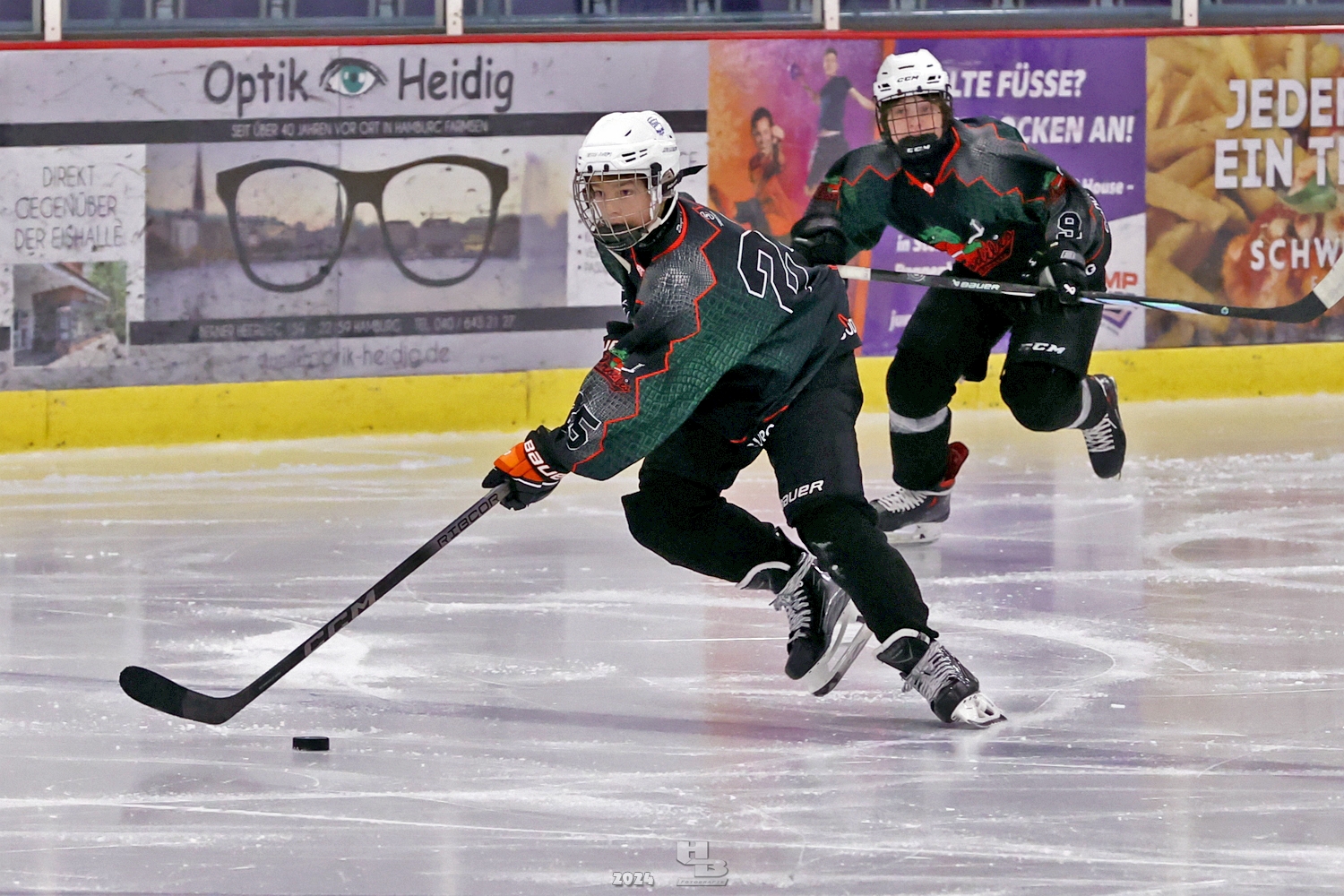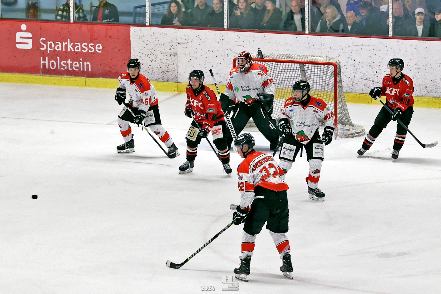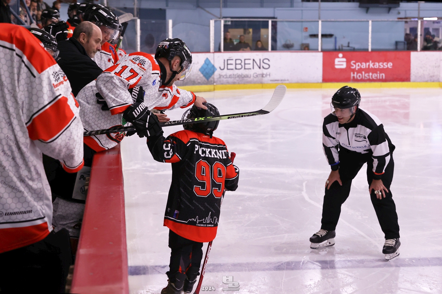 Von Beginn an war die Mannschaft hochkonzentriert und wollte an den Erfolg in Adendorf anknüpfen und den Anschluss in der Tabelle halten und sogar Plätze gut machen. Nach nicht einmal 3 Minuten im 1. Drittel klingelte es bereits im Kasten der Harsefeld Tigers. Torschütze war Luke Külbel auf Vorlage von Lenny Reik. In der 6. Minute musste dann der in Hamburg bestens bekannte Rasid Saitov, der vom HSV nach Harsefeld gewechselt ist, auf die Strafbank. Nach kurzem Abtasten war es dann Timi Liivalathi, der auf Vorlage von Matej Morong auf 2:0 erhöhen konnte. Mit dieser Führung ging es dann auch in die 1. Pause.