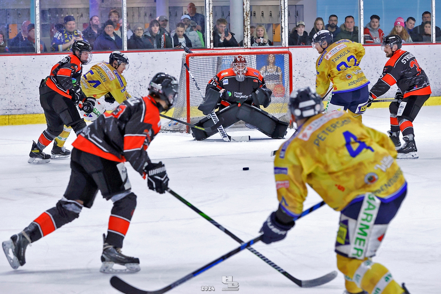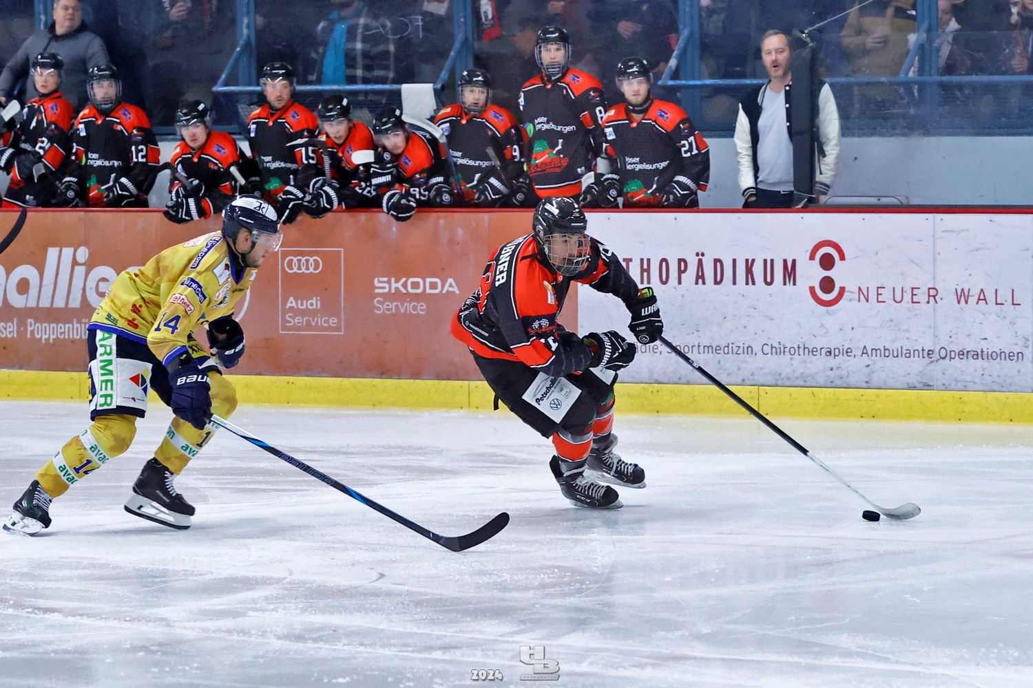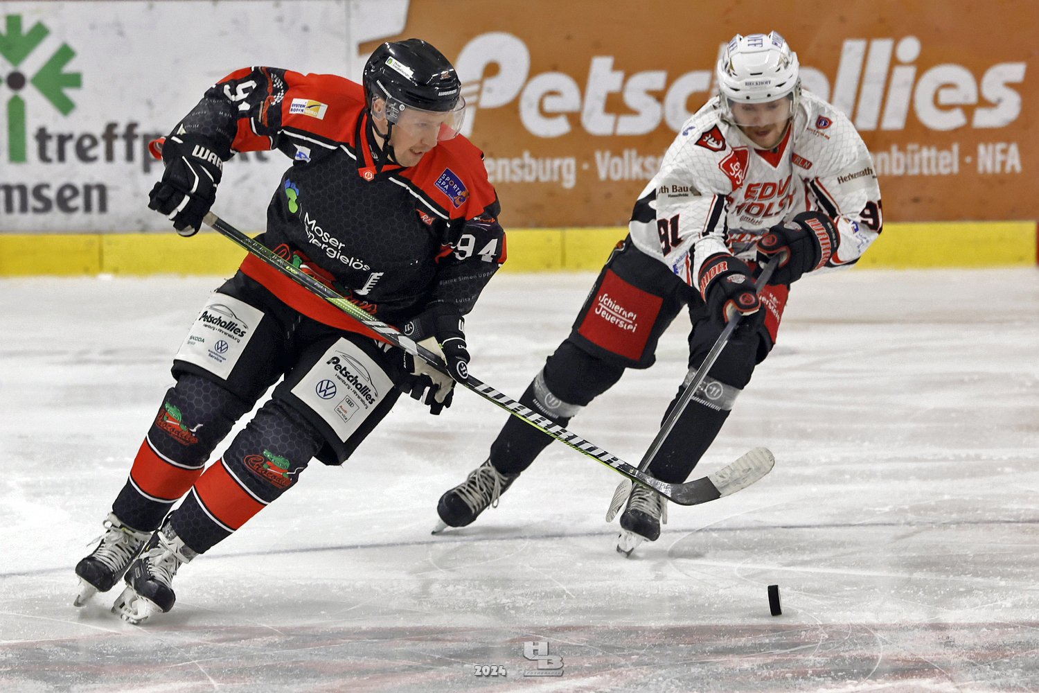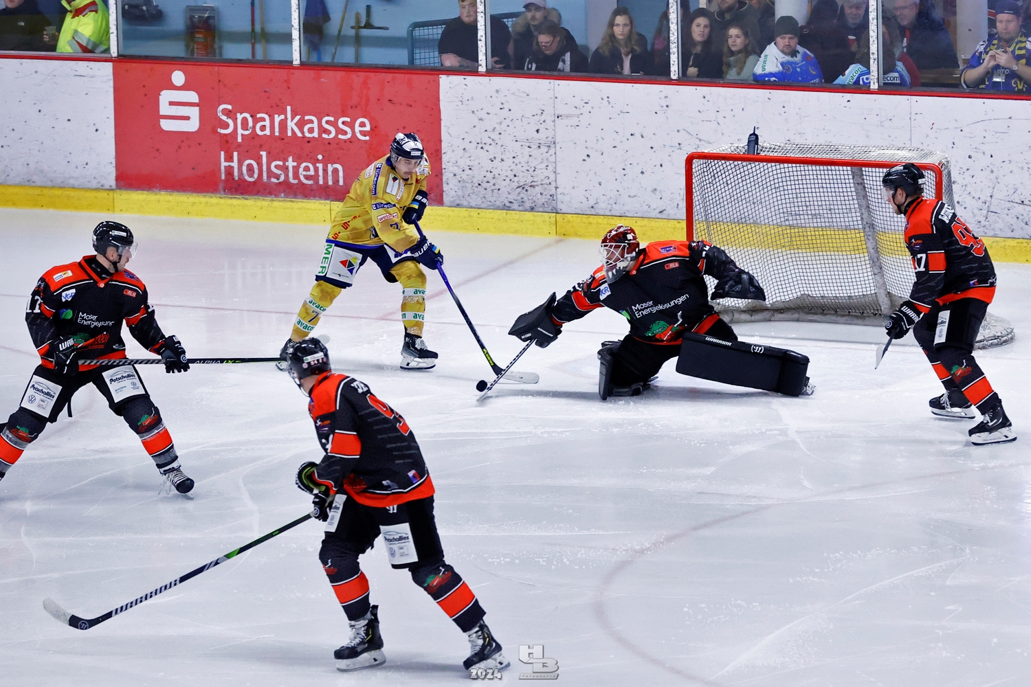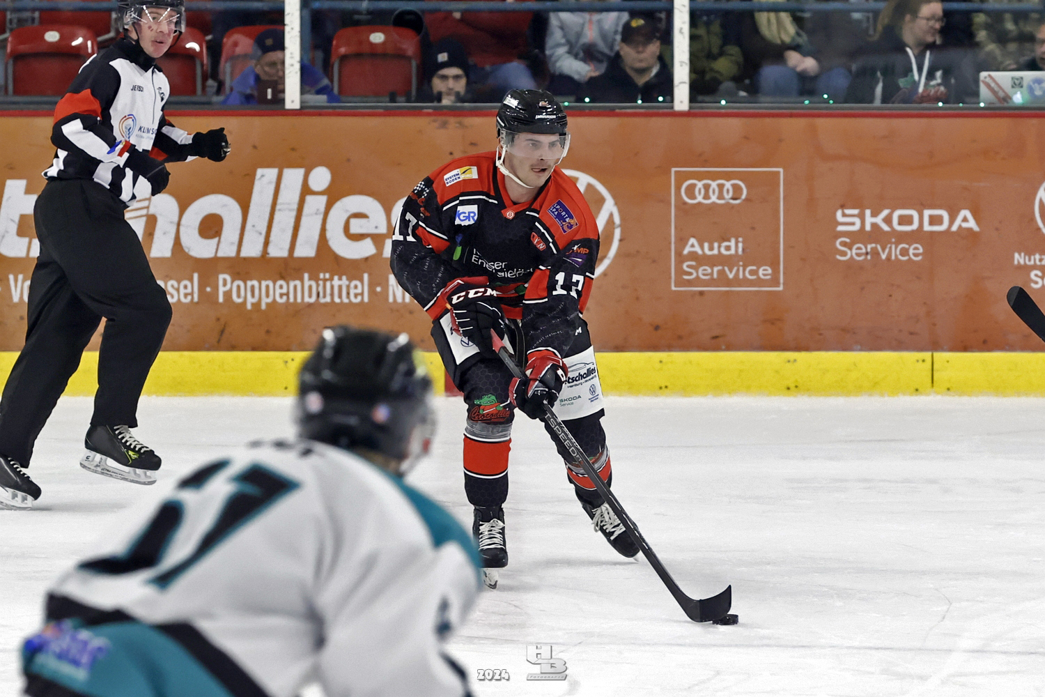 Von Beginn an war die Mannschaft hochkonzentriert und wollte an den Erfolg in Adendorf anknüpfen und den Anschluss in der Tabelle halten und sogar Plätze gut machen. Nach nicht einmal 3 Minuten im 1. Drittel klingelte es bereits im Kasten der Harsefeld Tigers. Torschütze war Luke Külbel auf Vorlage von Lenny Reik. In der 6. Minute musste dann der in Hamburg bestens bekannte Rasid Saitov, der vom HSV nach Harsefeld gewechselt ist, auf die Strafbank. Nach kurzem Abtasten war es dann Timi Liivalathi, der auf Vorlage von Matej Morong auf 2:0 erhöhen konnte. Mit dieser Führung ging es dann auch in die 1. Pause.