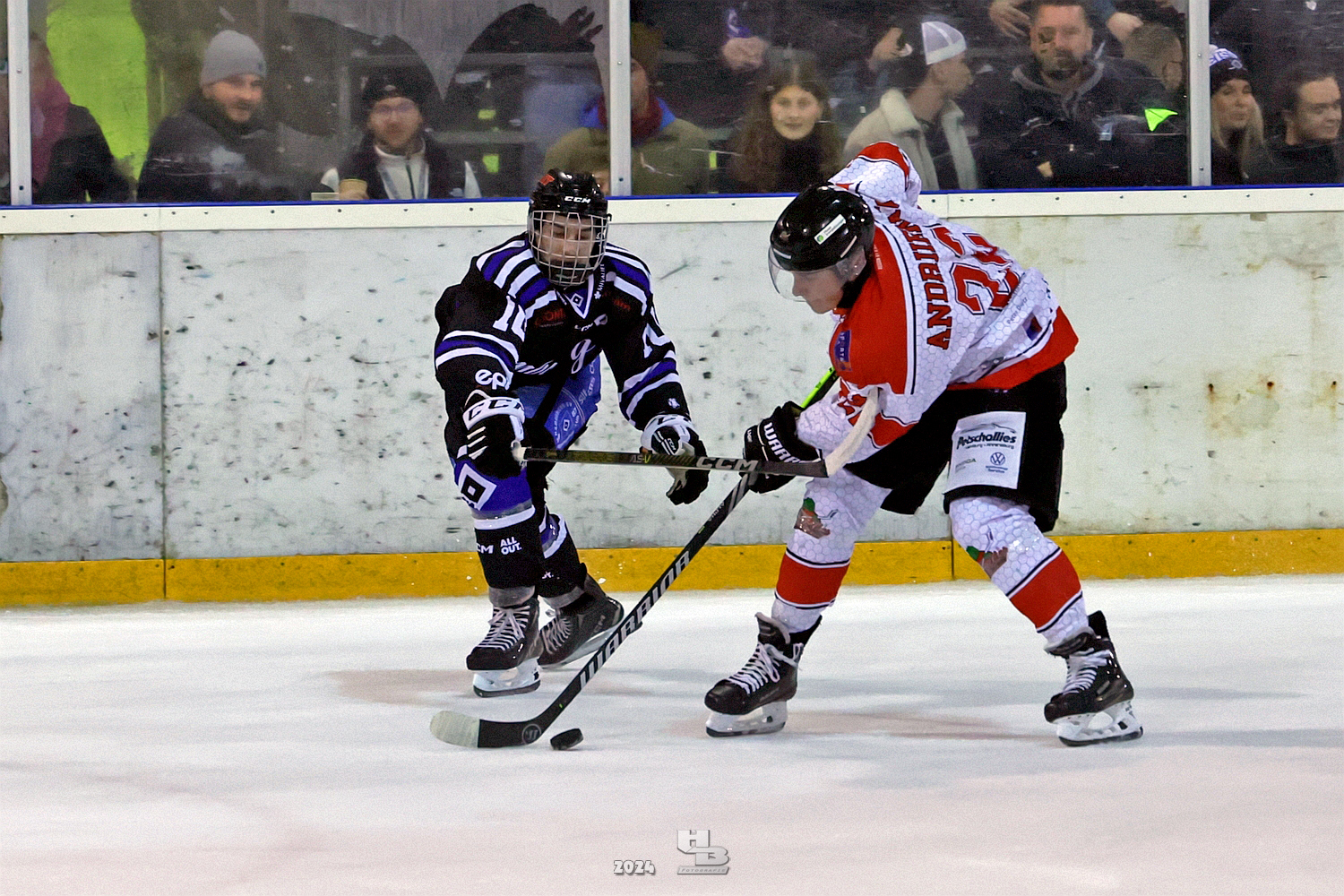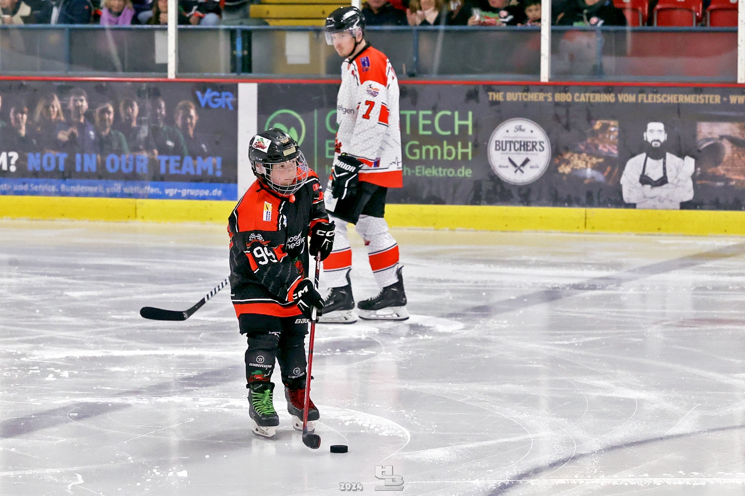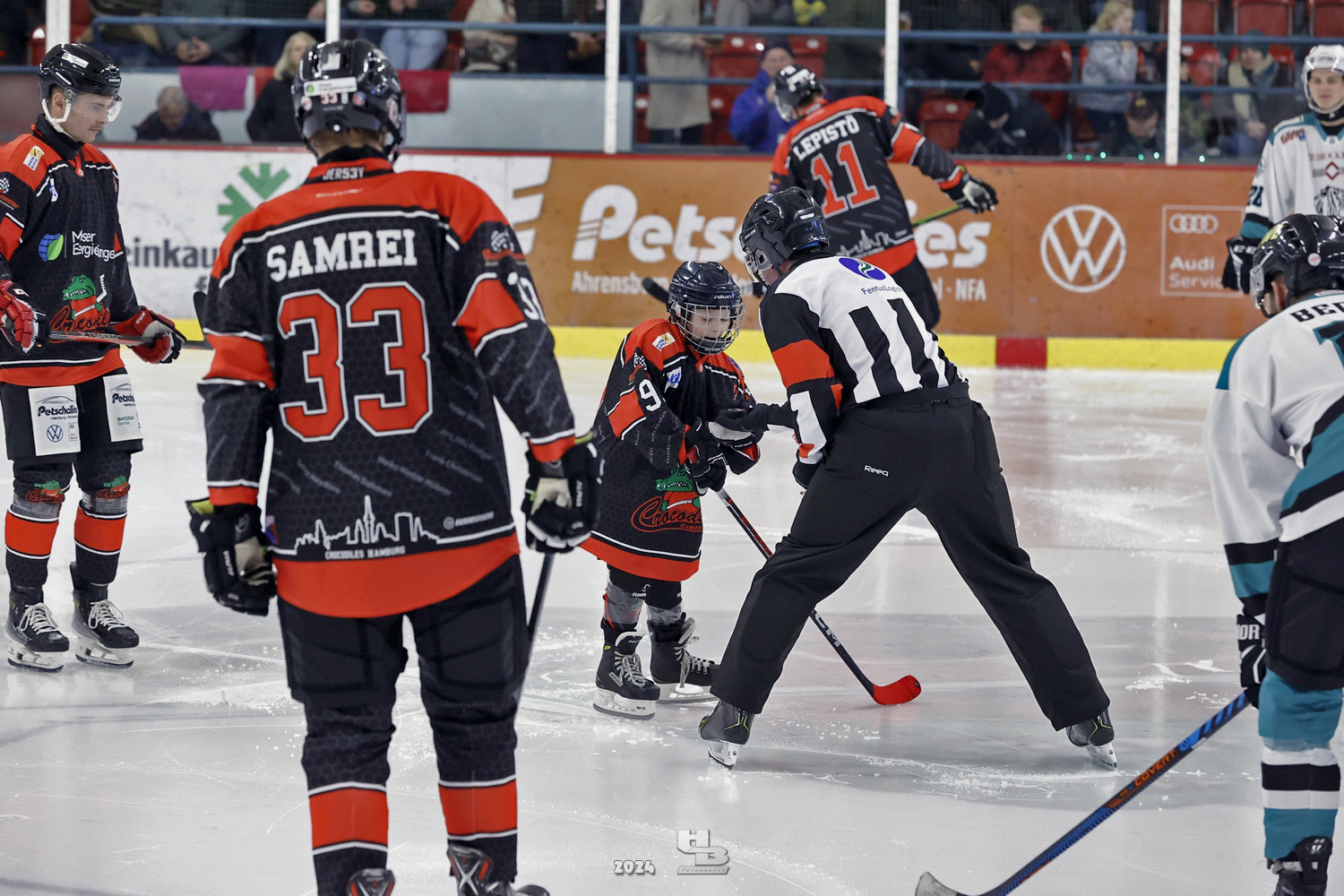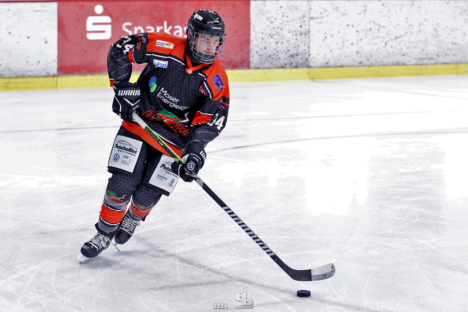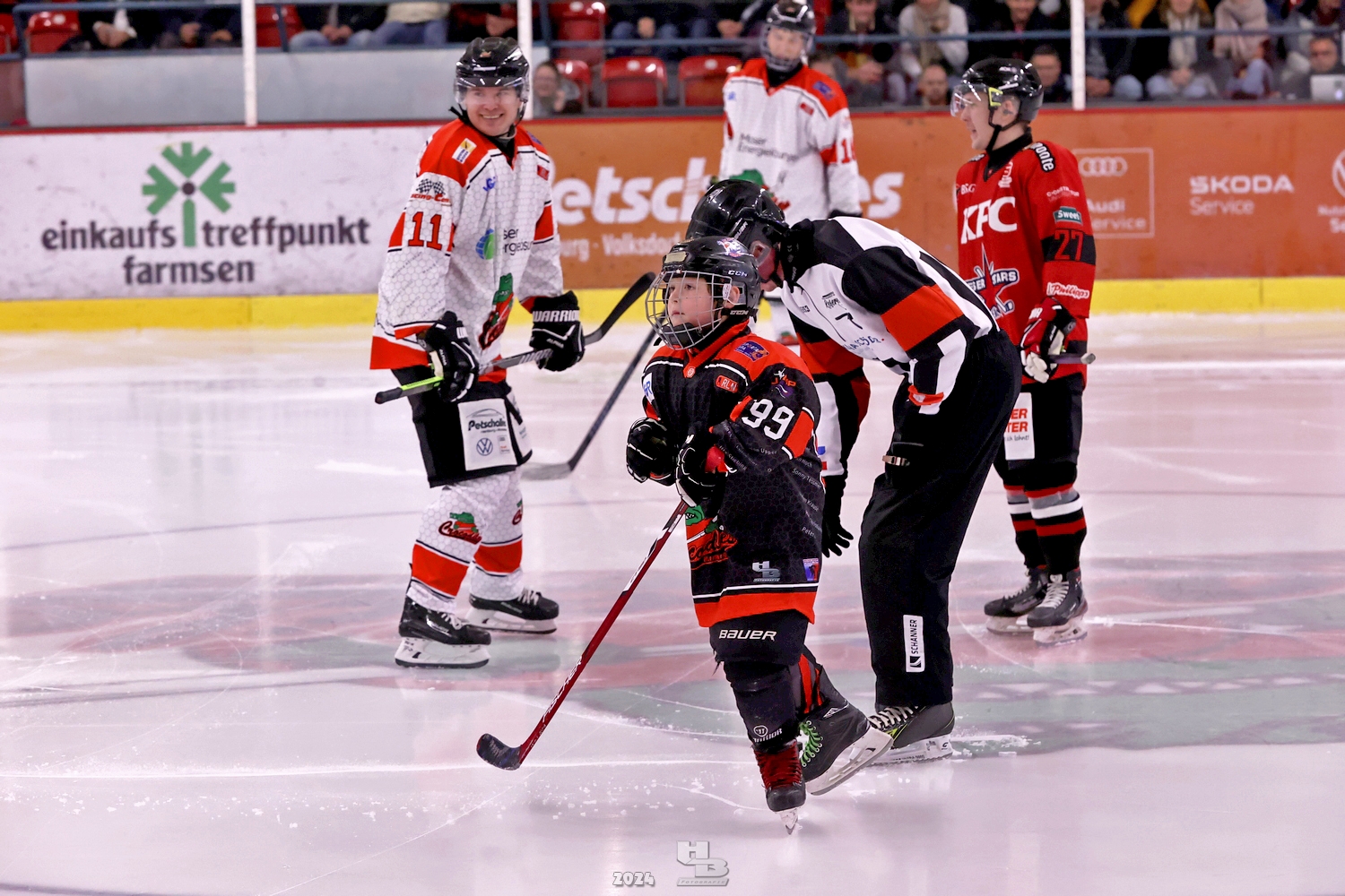 Von Beginn an war die Mannschaft hochkonzentriert und wollte an den Erfolg in Adendorf anknüpfen und den Anschluss in der Tabelle halten und sogar Plätze gut machen. Nach nicht einmal 3 Minuten im 1. Drittel klingelte es bereits im Kasten der Harsefeld Tigers. Torschütze war Luke Külbel auf Vorlage von Lenny Reik. In der 6. Minute musste dann der in Hamburg bestens bekannte Rasid Saitov, der vom HSV nach Harsefeld gewechselt ist, auf die Strafbank. Nach kurzem Abtasten war es dann Timi Liivalathi, der auf Vorlage von Matej Morong auf 2:0 erhöhen konnte. Mit dieser Führung ging es dann auch in die 1. Pause.