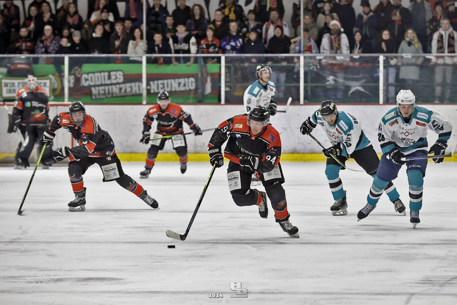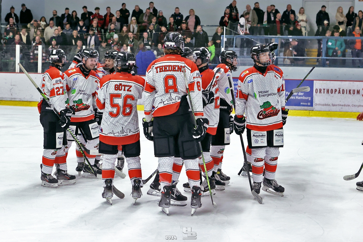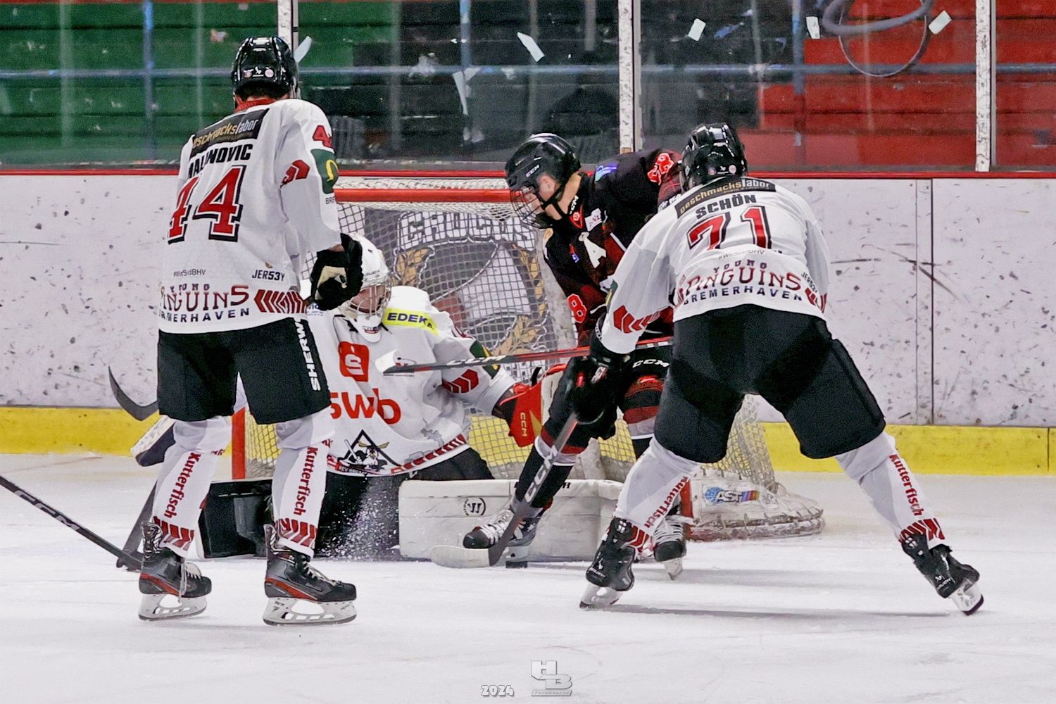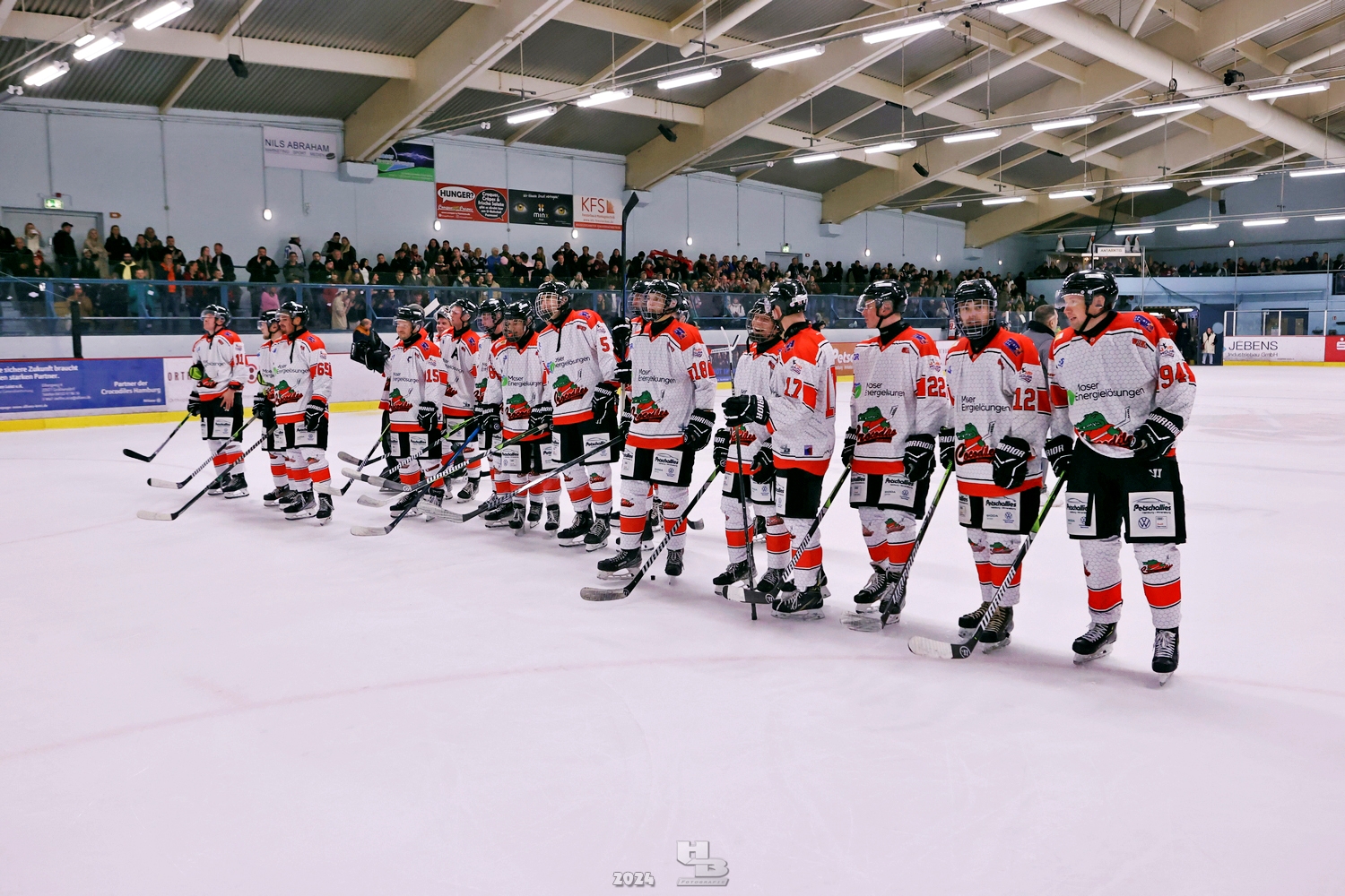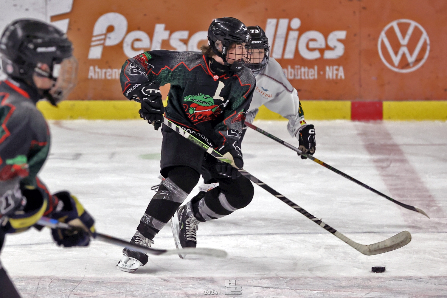 Im letzten Drittel waren dann die Gäste die fleißig weiter Tore schossen. Weitere vier Tore für die Bremerhavener sollten das Ergebnis auf 2:8 hoch schrauben aber die Crocodiles gaben nicht auf und konnten in der 55. Minute noch einmal durch #4 Konstantin Hoffmann (#23 Fiete Buschhüter) zum 3:8 Endstand treffen.