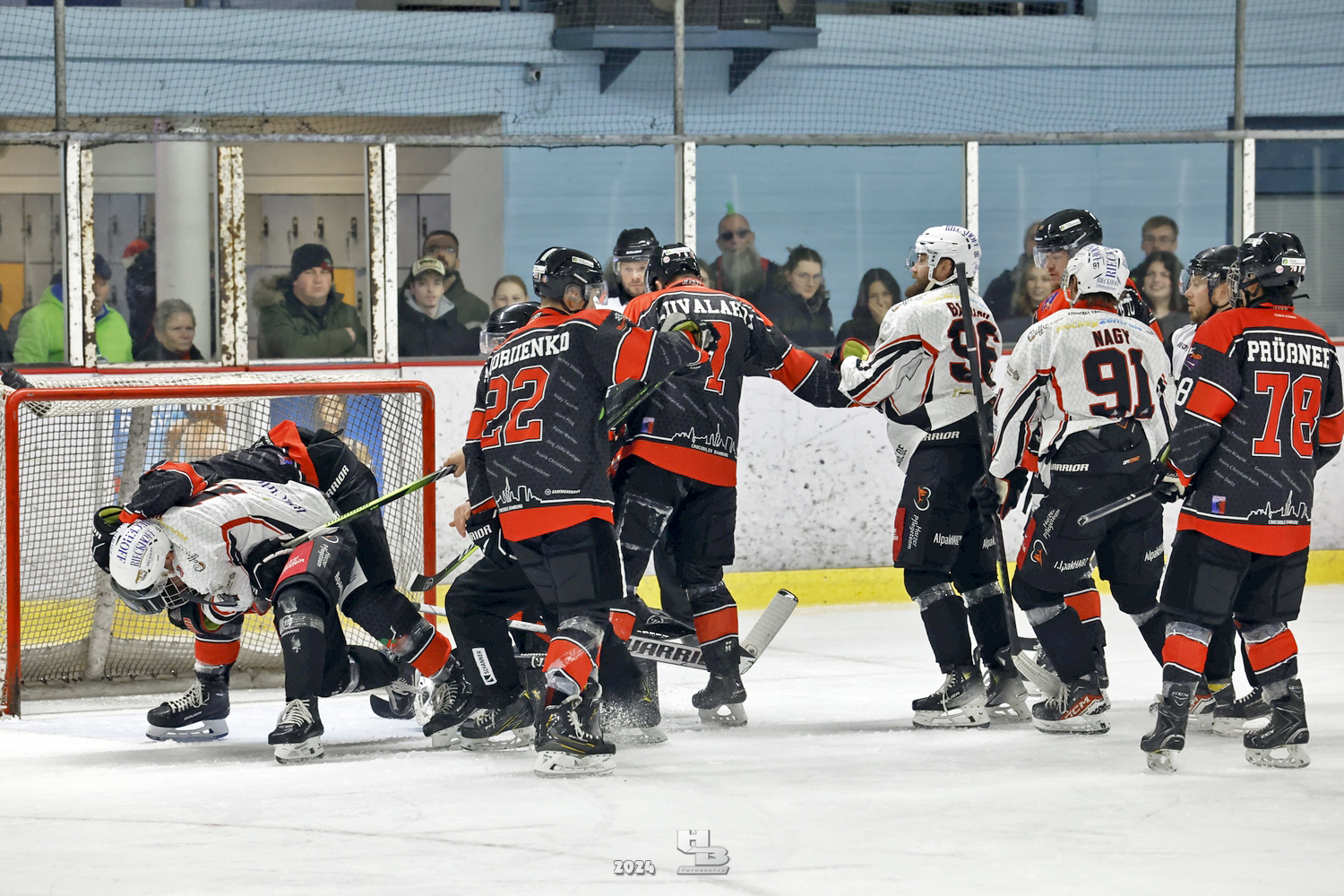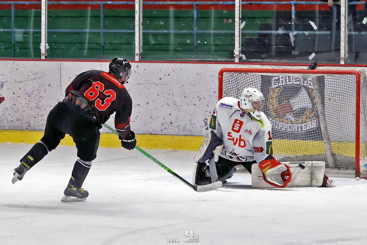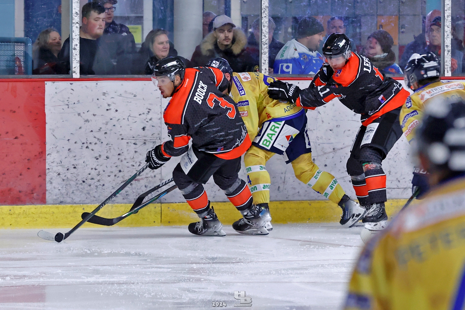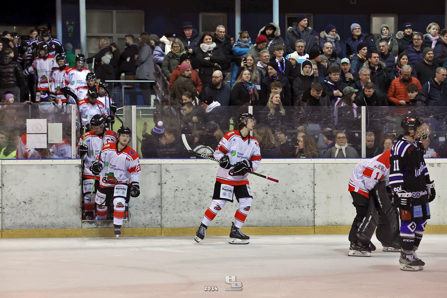 Es war das erwartet spannende Spiel, in dem sich beide Mannschaften nichts schenkten. Im ersten Drittel war es Maksym Andriienko, der in der 16. Minute das 0:1 für die Crocodiles erzielte. Die Stimmung unter den mitgereisten Fans war riesig. Nach dem Tor und dem Pfiff zur 1. Pause freute man sich auf ein weiteres spannendes Spiel. Als nun die Eismaschine aufs Eis fuhr, wurde schnell klar, dass hier etwas nicht stimmte. Eine rote Spur zeichnete sich hinter der Maschine ab. Der Hydraulikschlauch der Eismaschine war geplatzt und konnte nicht mehr verwendet werden. Die Helfer vor Ort versuchten alles, um das Eis wieder halbwegs in Ordnung zu bringen.
