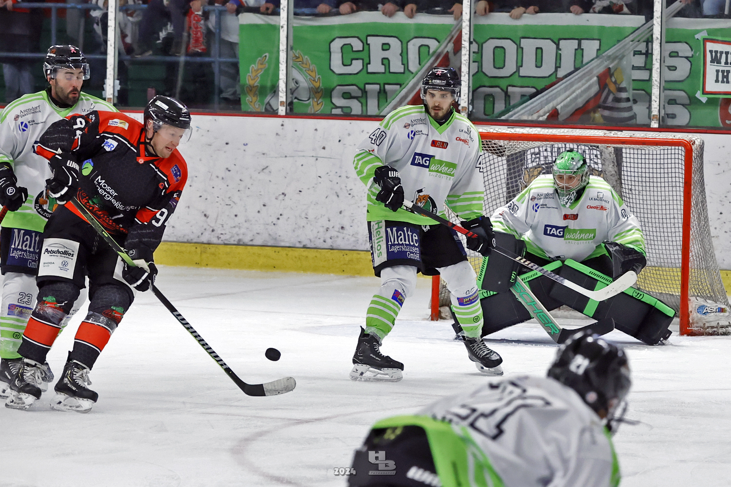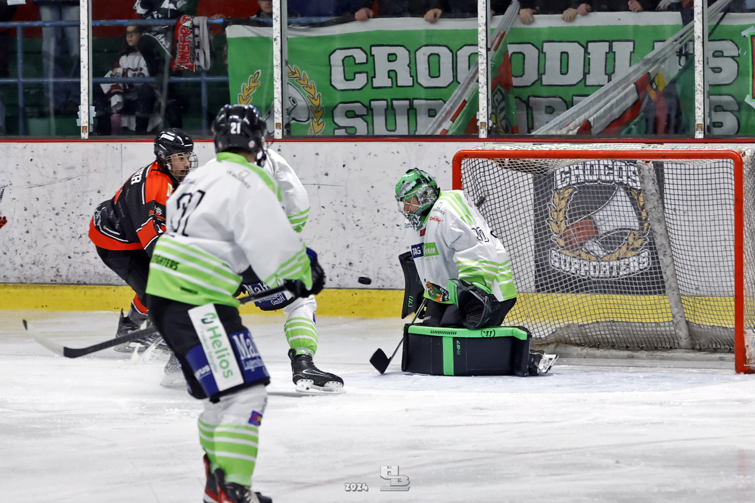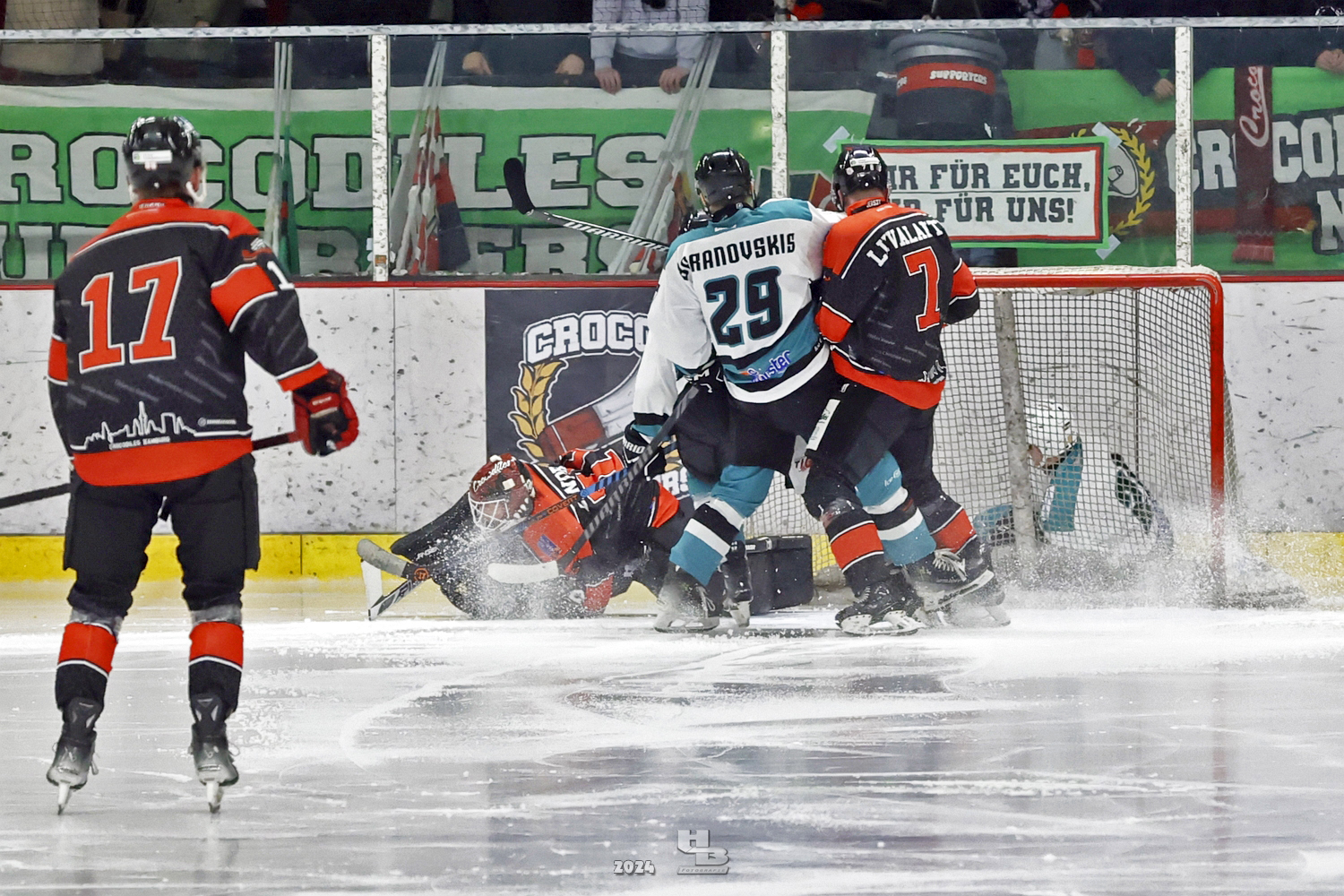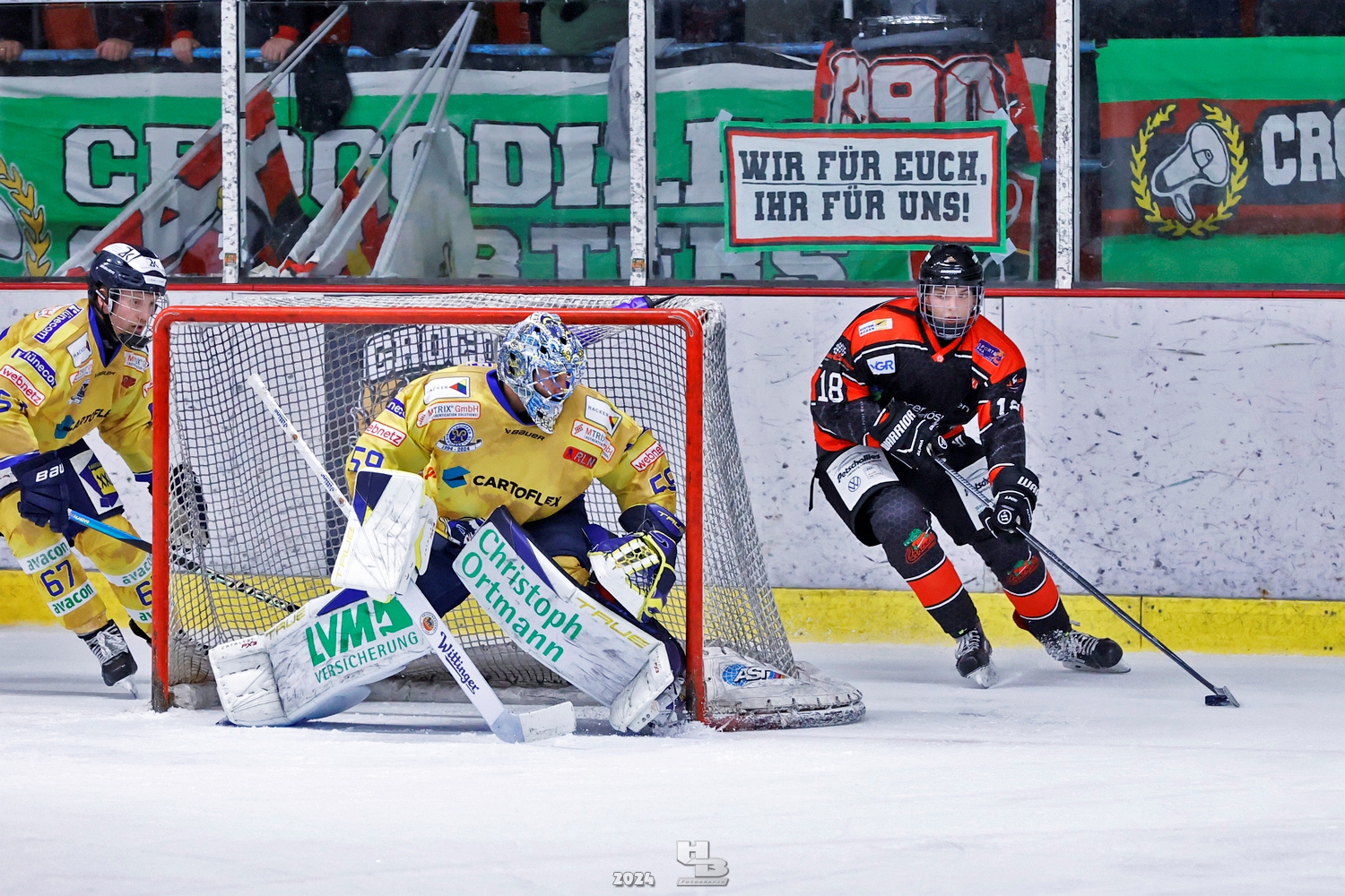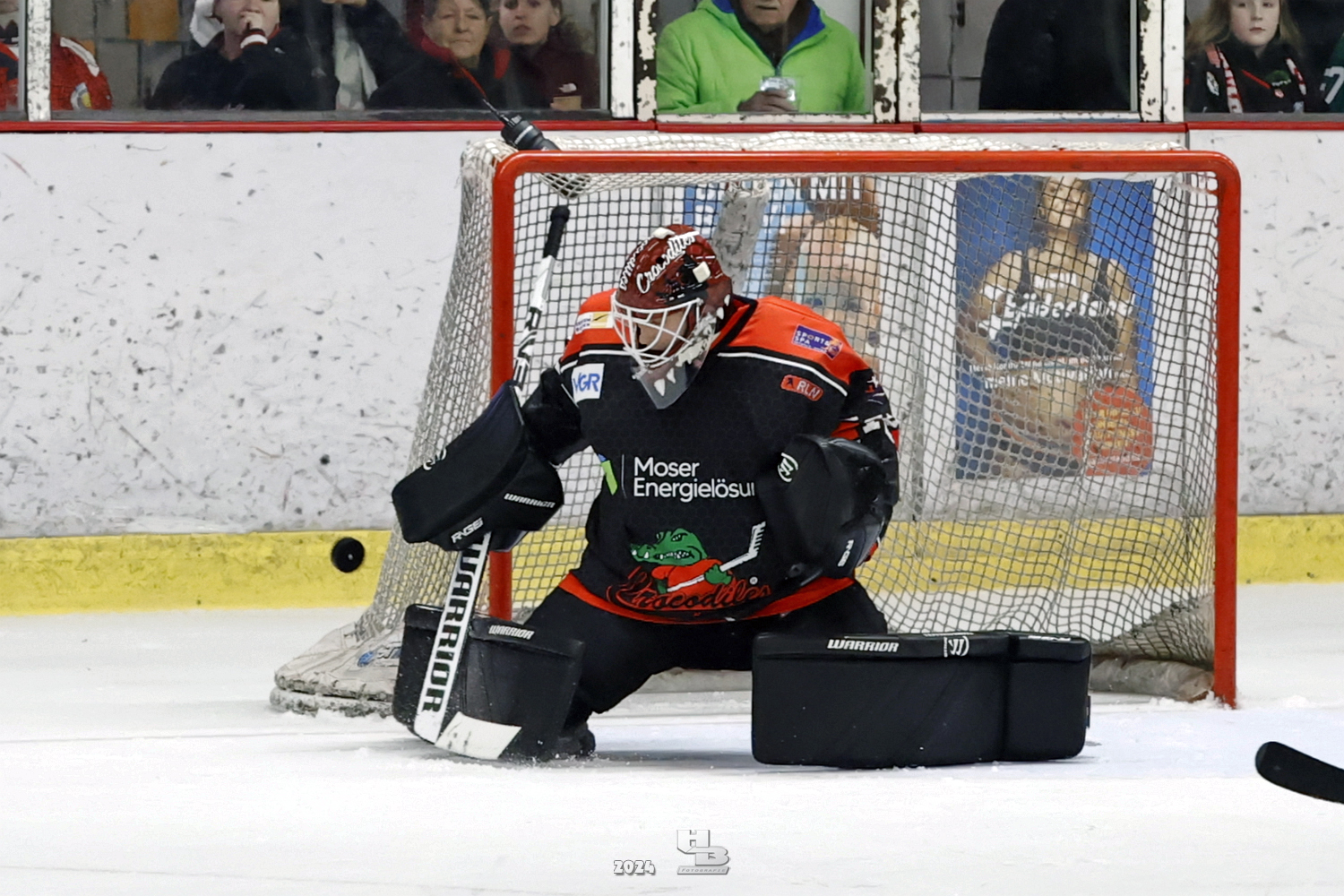 Als klarer Underdog ging es am Sonntagabend vor heimischer Kulisse aufs Eis. Das Team der Crocodiles zeigte vor 946 Zuschauern, dass sie aus den Fehlern des ersten Spiels gelernt haben. Trotz zweier wichtiger Ausfälle in der Verteidigung konnten Lenny Reik und Dominik Samrei die fehlenden Miguel Boock und Kevin Grasmik gut ersetzen.