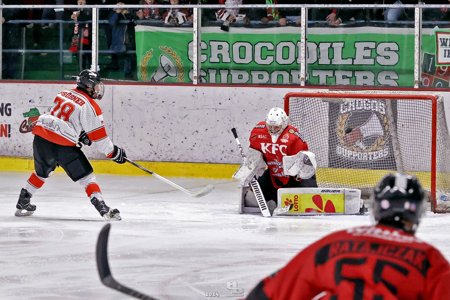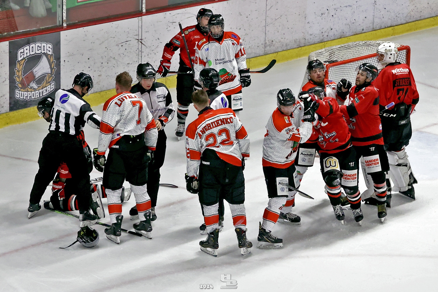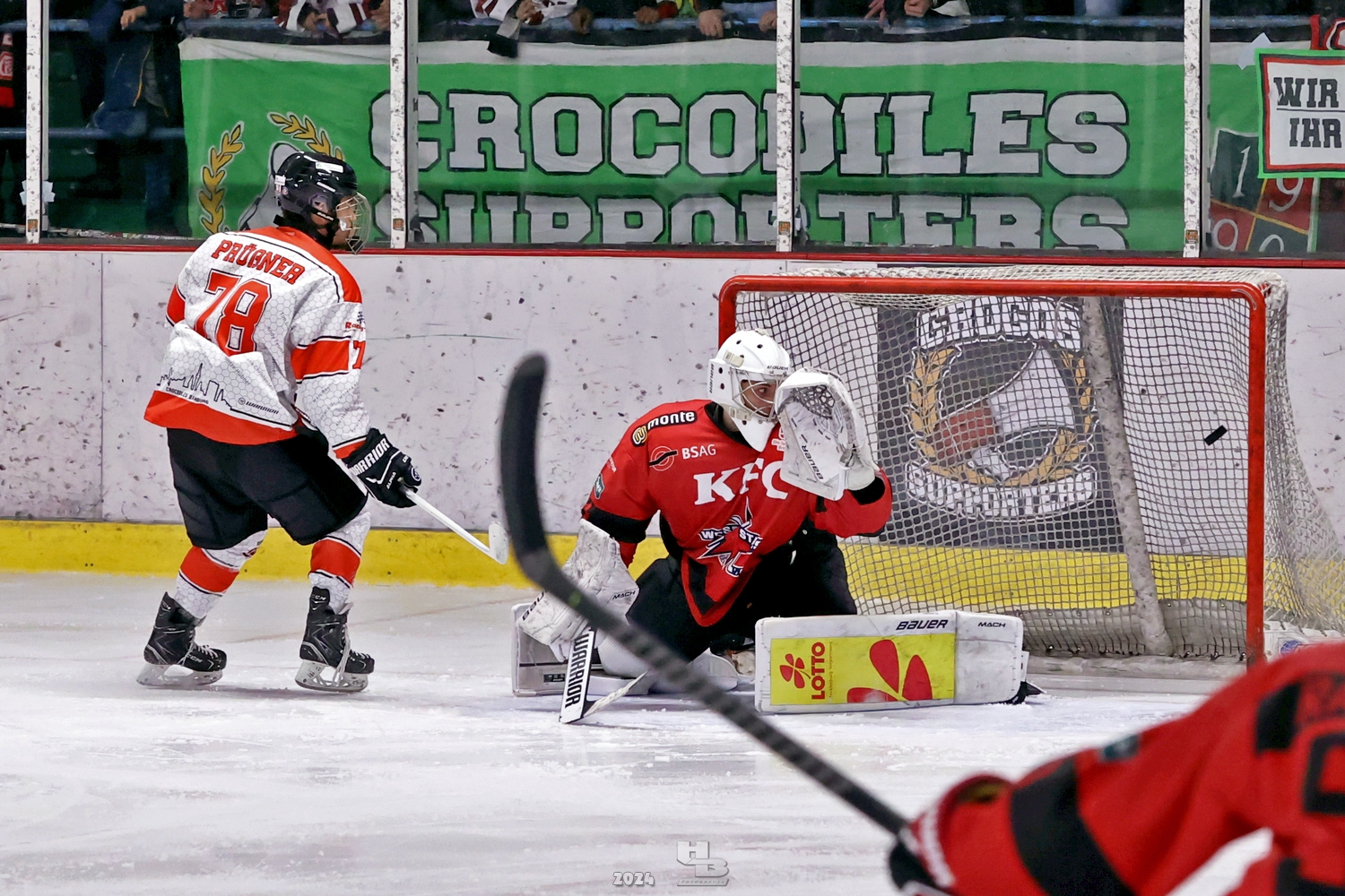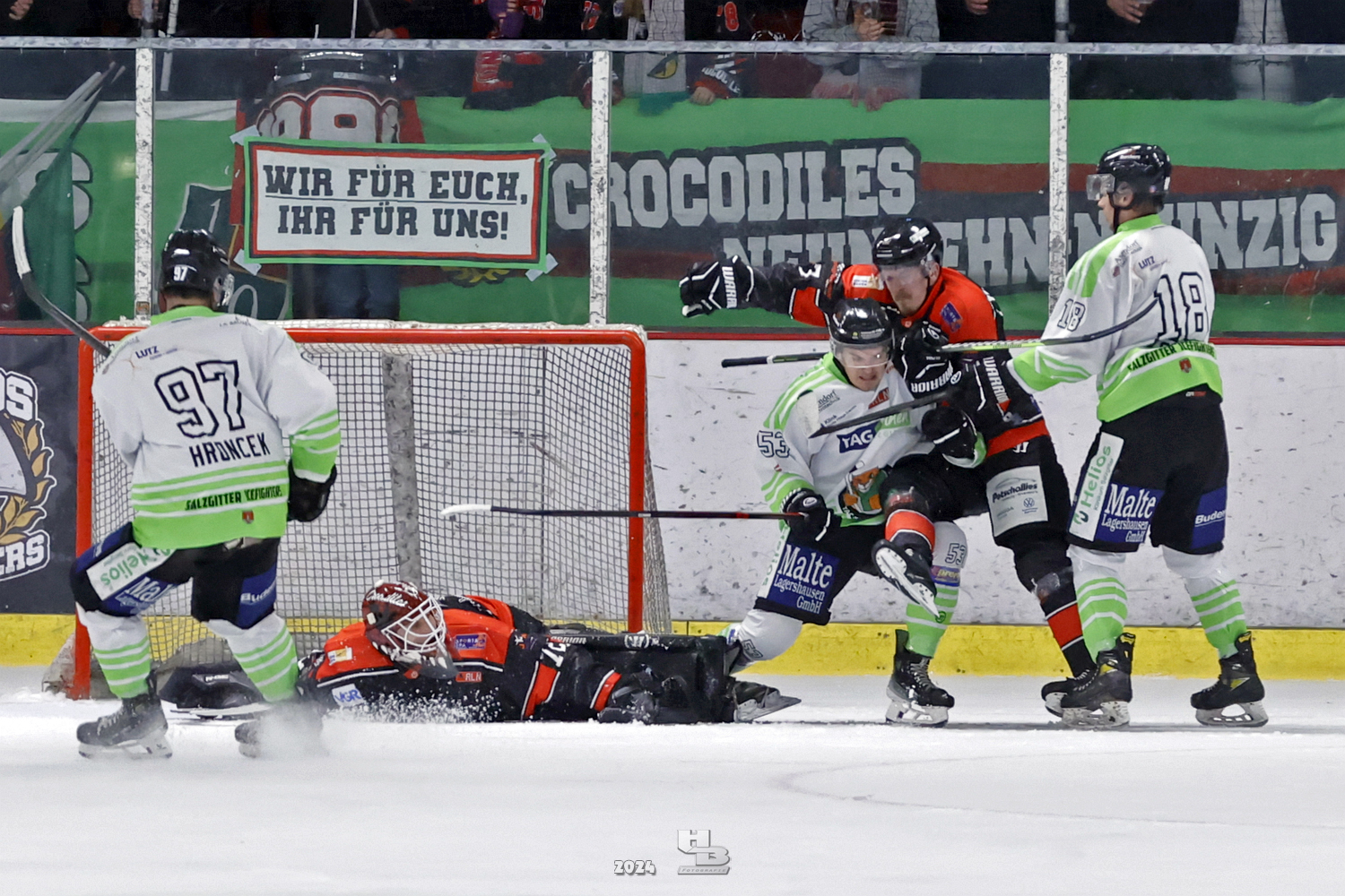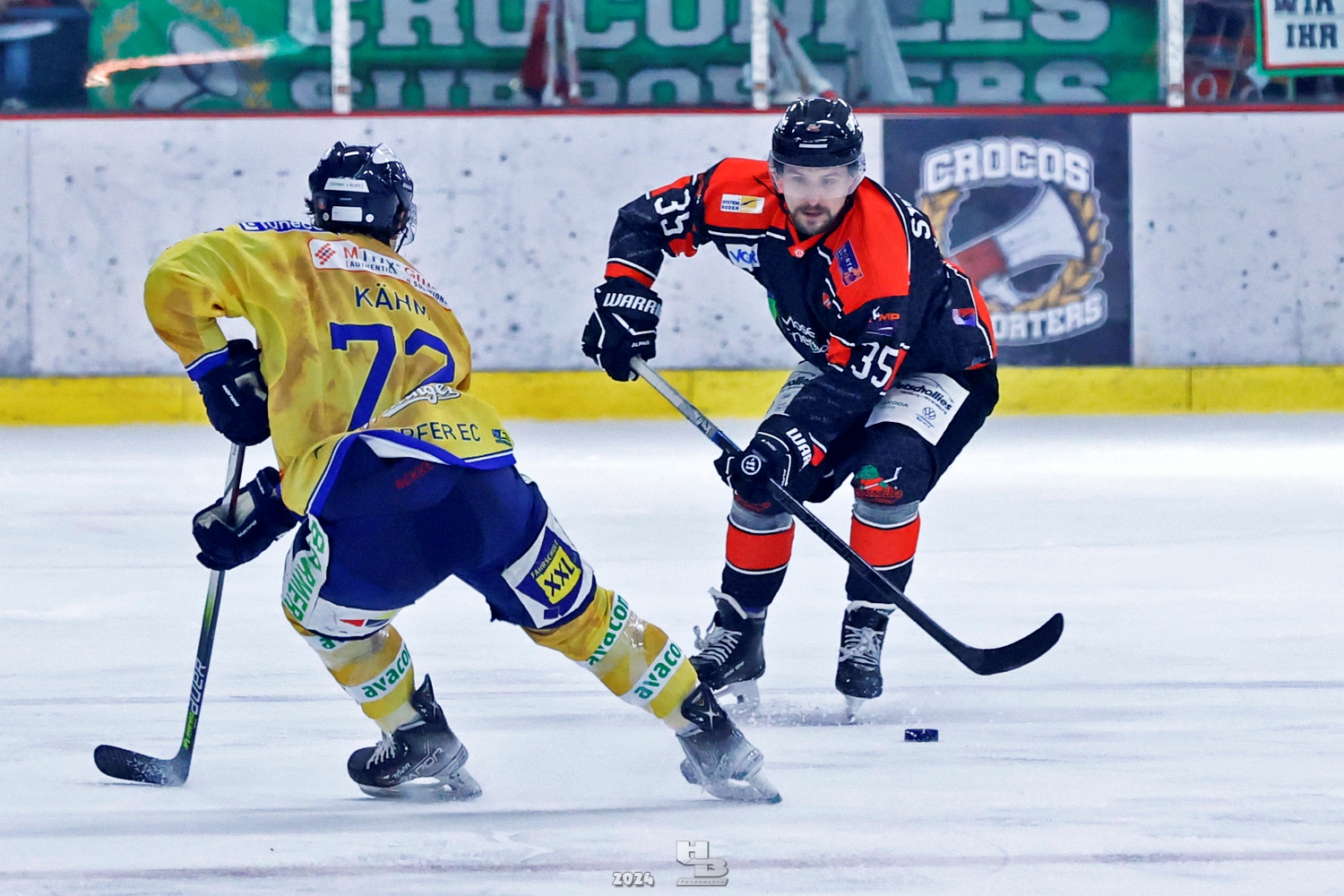 Als klarer Underdog ging es am Sonntagabend vor heimischer Kulisse aufs Eis. Das Team der Crocodiles zeigte vor 946 Zuschauern, dass sie aus den Fehlern des ersten Spiels gelernt haben. Trotz zweier wichtiger Ausfälle in der Verteidigung konnten Lenny Reik und Dominik Samrei die fehlenden Miguel Boock und Kevin Grasmik gut ersetzen.