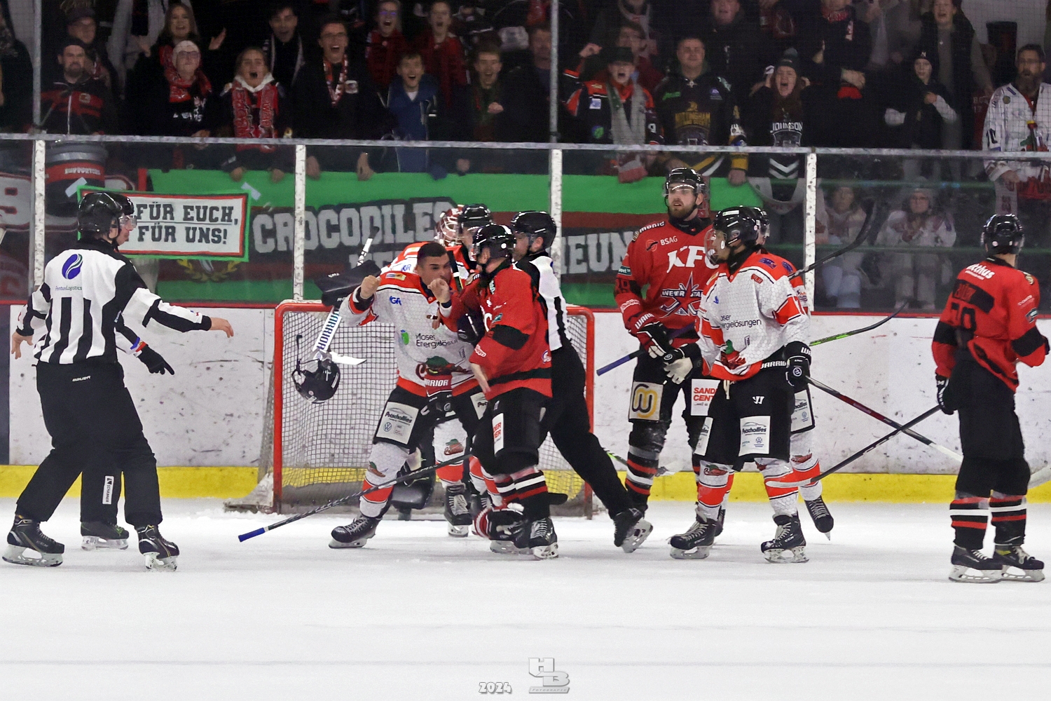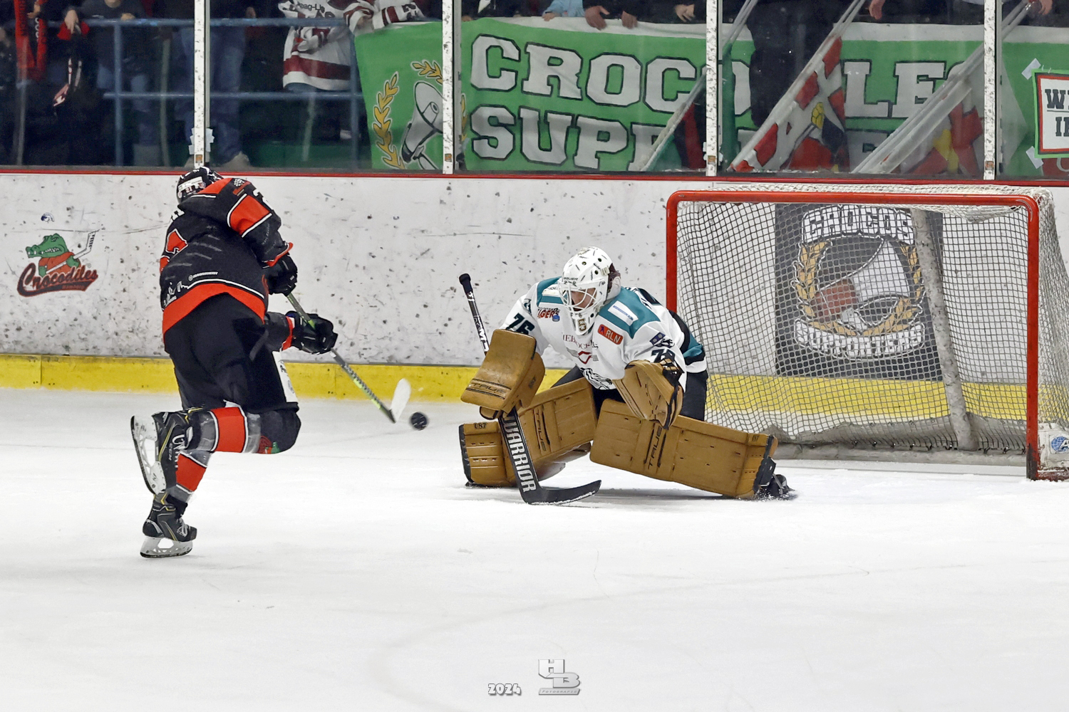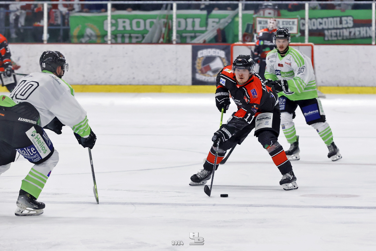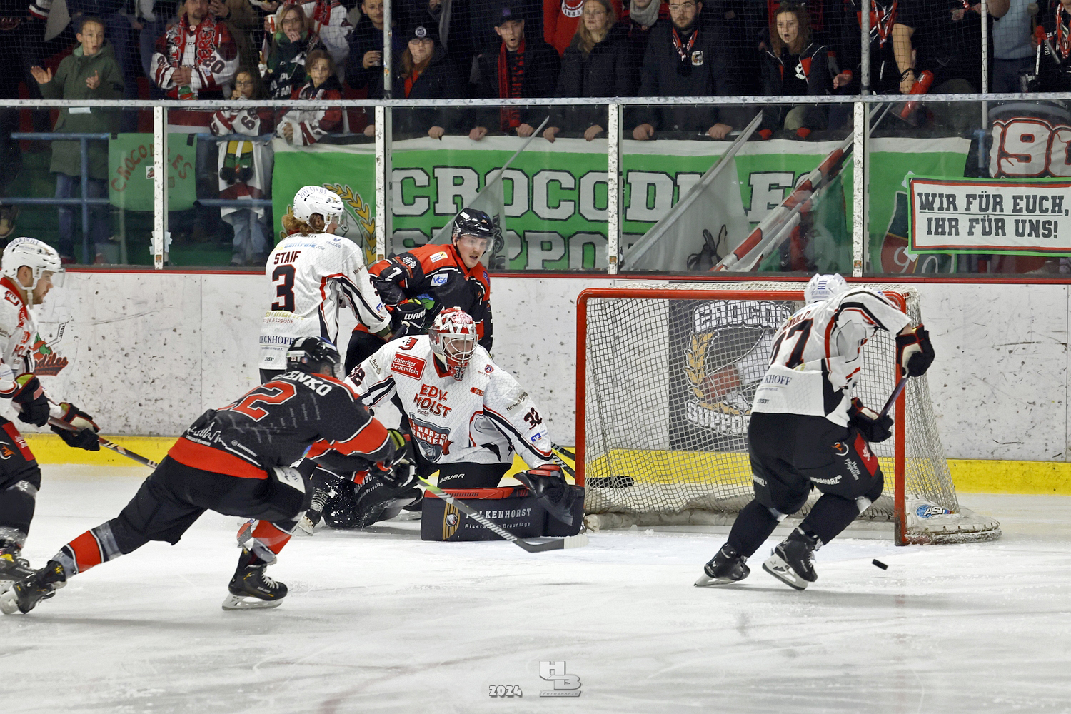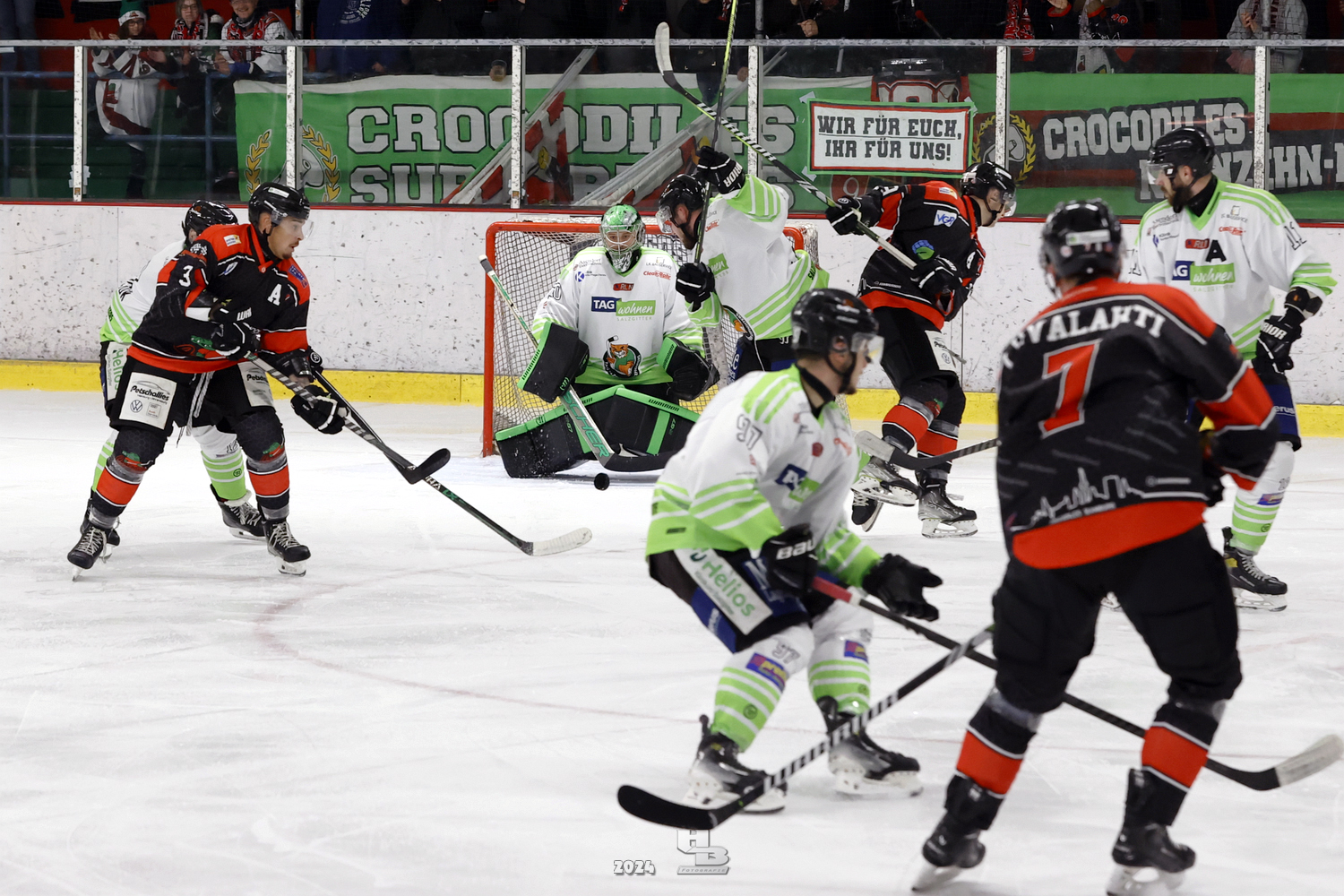 Als klarer Underdog ging es am Sonntagabend vor heimischer Kulisse aufs Eis. Das Team der Crocodiles zeigte vor 946 Zuschauern, dass sie aus den Fehlern des ersten Spiels gelernt haben. Trotz zweier wichtiger Ausfälle in der Verteidigung konnten Lenny Reik und Dominik Samrei die fehlenden Miguel Boock und Kevin Grasmik gut ersetzen.