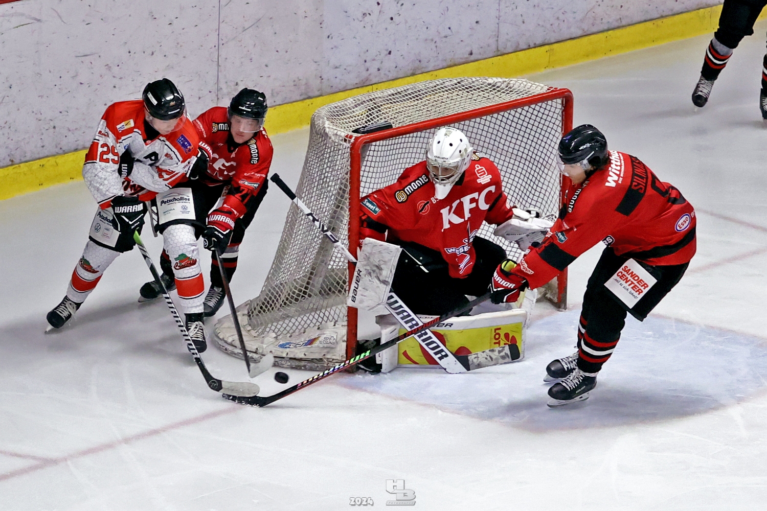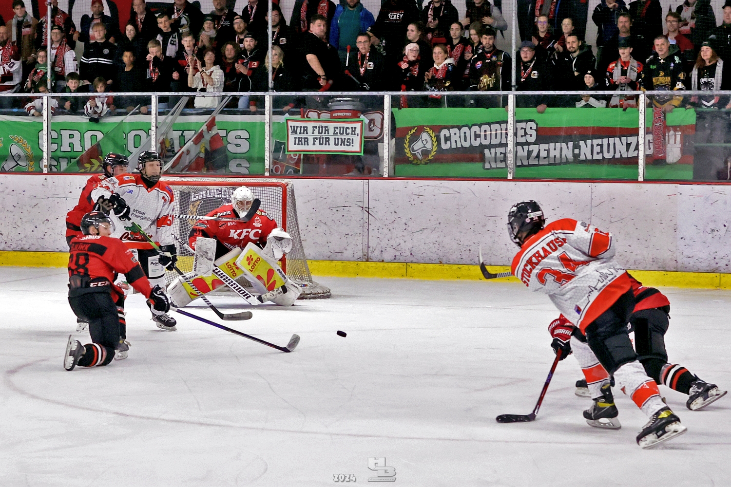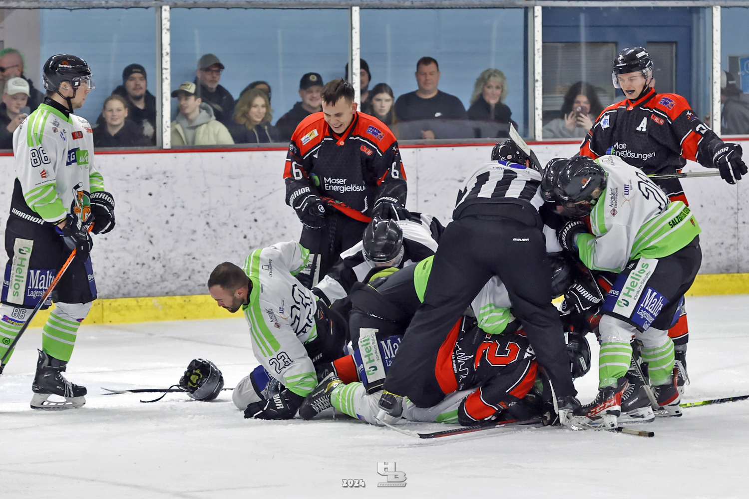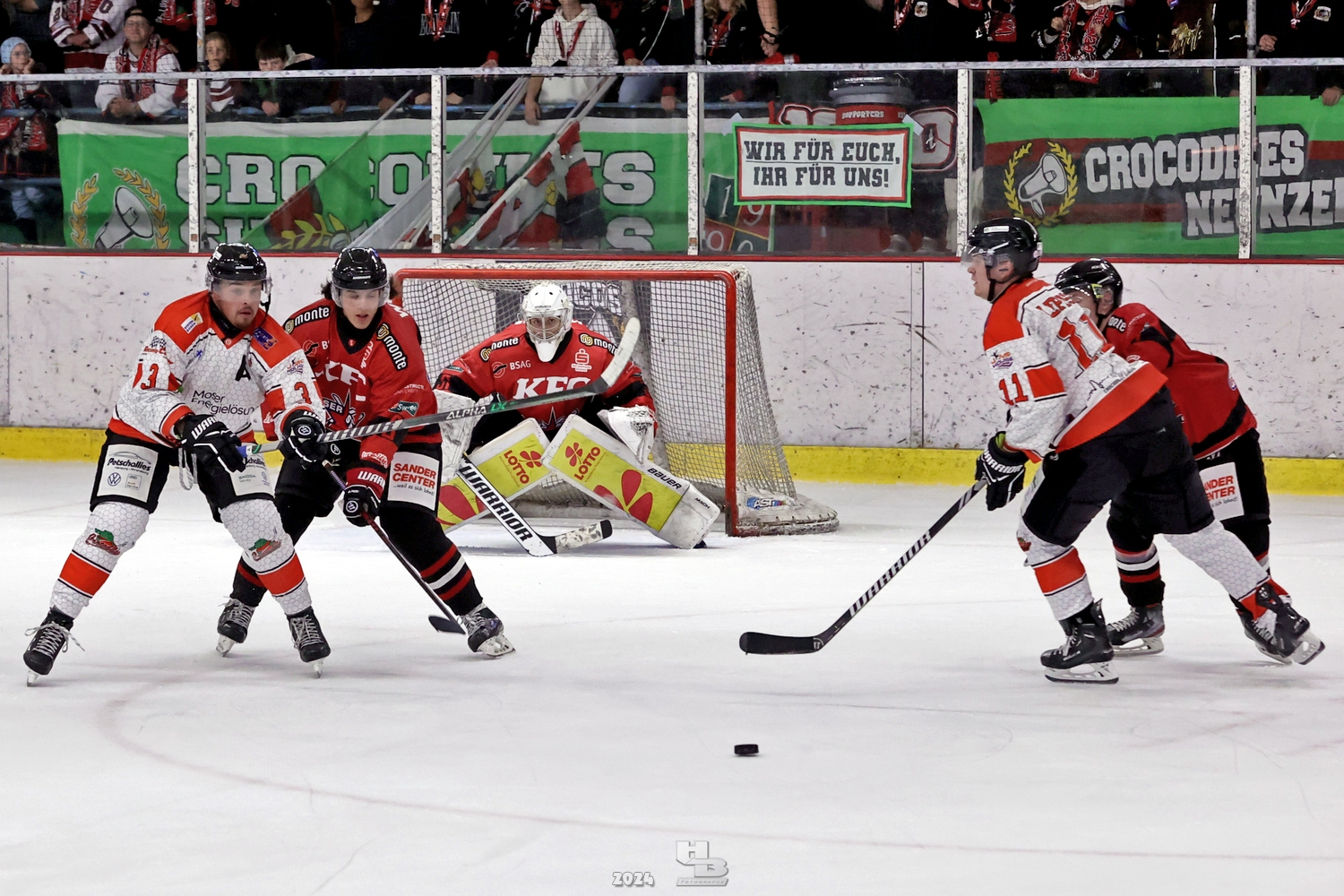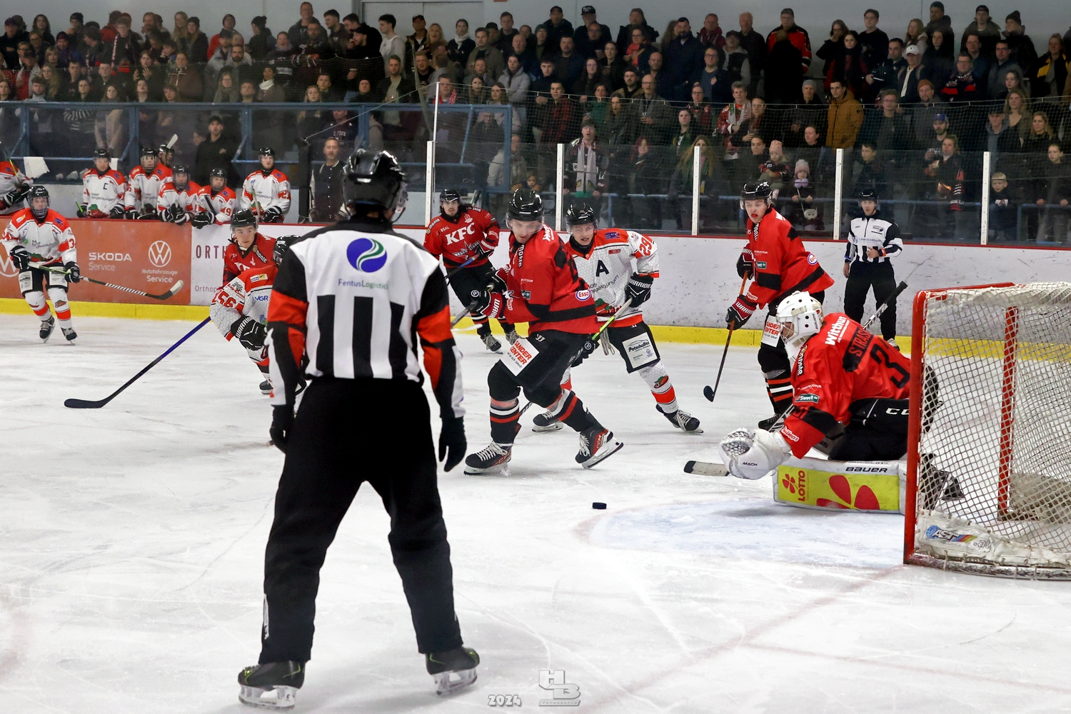 Als klarer Underdog ging es am Sonntagabend vor heimischer Kulisse aufs Eis. Das Team der Crocodiles zeigte vor 946 Zuschauern, dass sie aus den Fehlern des ersten Spiels gelernt haben. Trotz zweier wichtiger Ausfälle in der Verteidigung konnten Lenny Reik und Dominik Samrei die fehlenden Miguel Boock und Kevin Grasmik gut ersetzen.