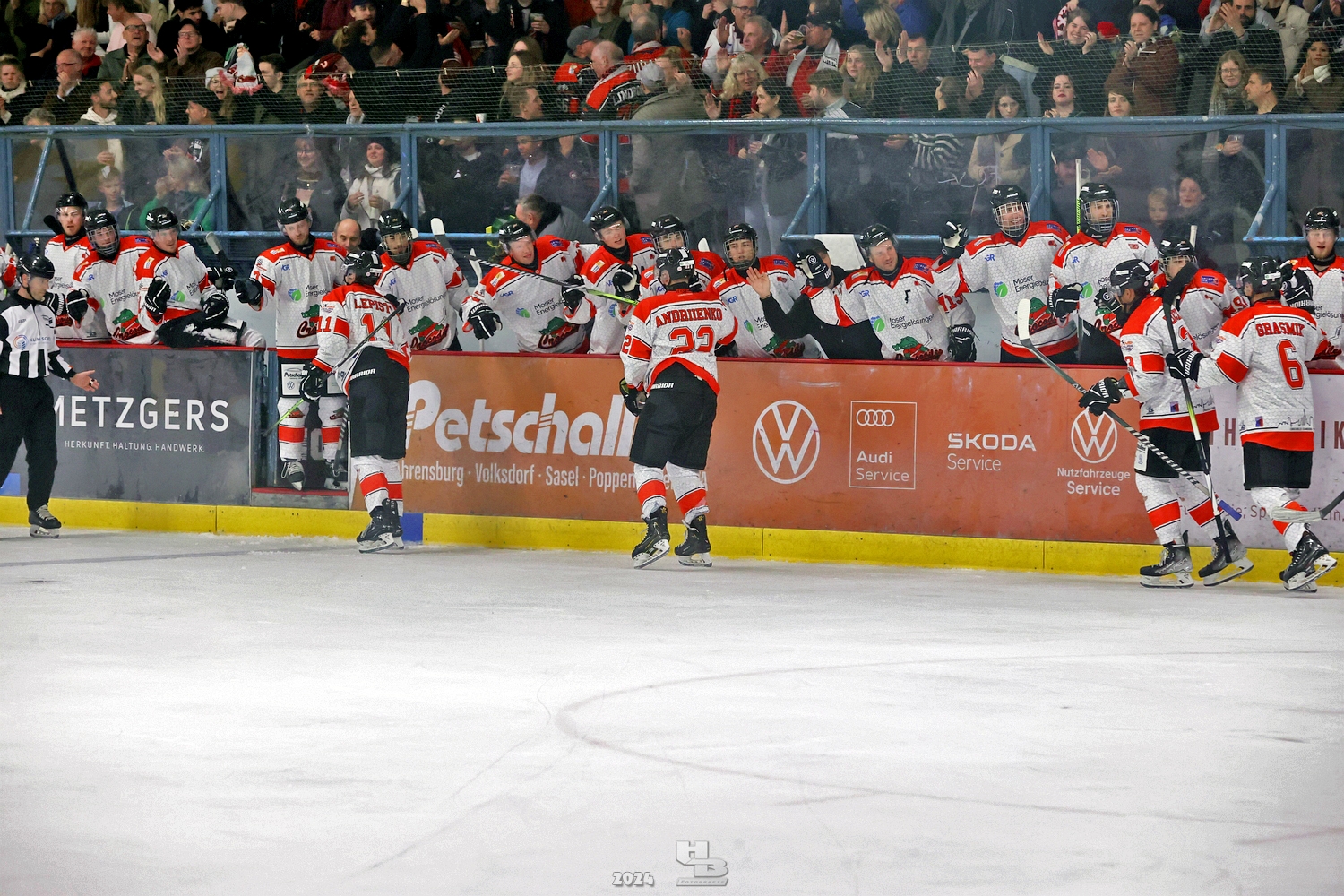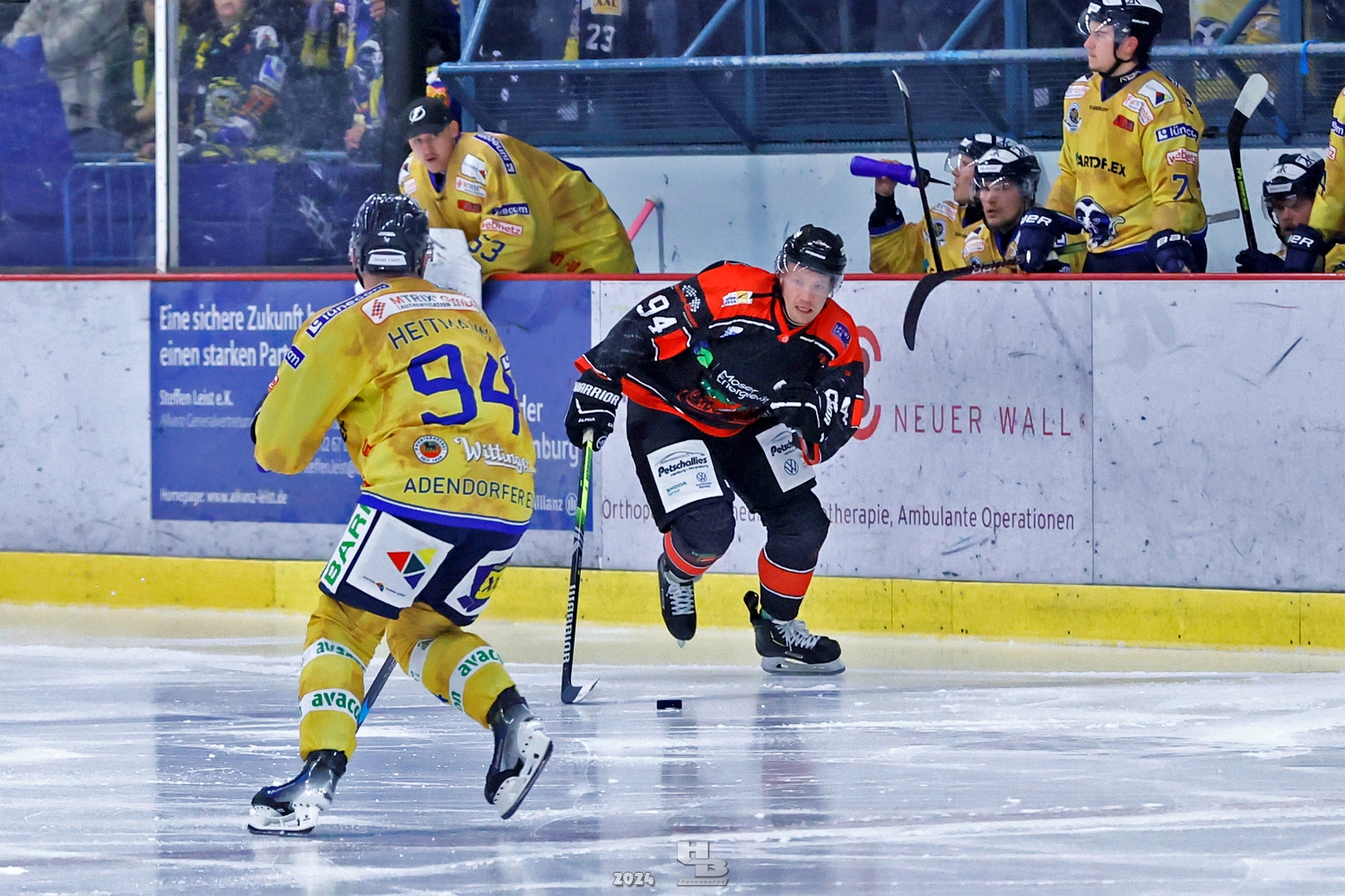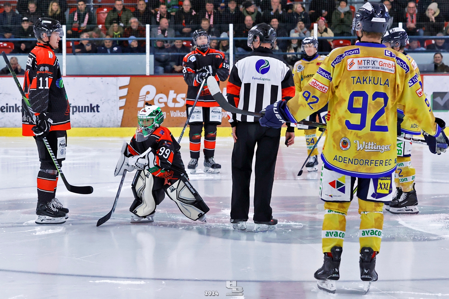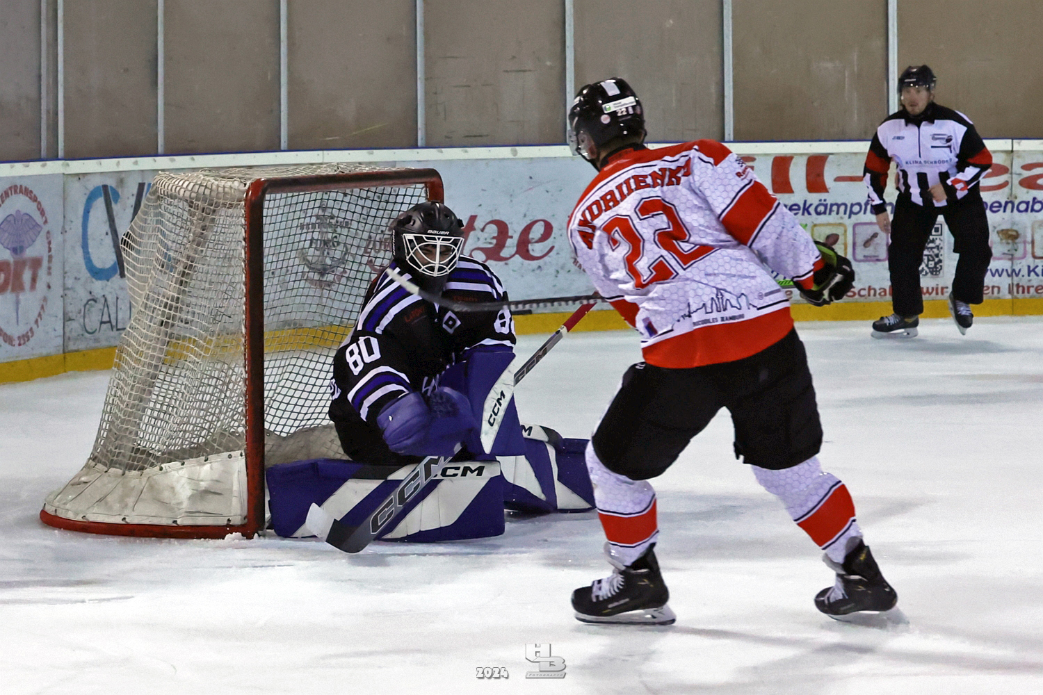 Im dritten Drittel kam es dann in der 54. Minute zu einer längeren Unterbrechung, da der Kehlkopfschutz der Adendorfer Torhüter nicht Regelkonform sein sollte. So musste Adendorf einige Minuten ohne Torhüter auskommen, durften aber als Ersatz einen weiteren Feldspieler auf dass Eis bringen. Die Crocodiles nutzten diese Chance und so war es Maksym Andriienko, der zum 2:2 ausgleichen konnte. Die Crocodiles spielten sich dann in die Overtime. In der Zwischenzeit bastelte man bei Adendorf einen Kehlkopfschutz für den Torhüter, so das dieser wieder dabei war und es war dann Lauri Viitanen der in der Overtime den 2:3 Siegtreffer für Adendorf erzielte.