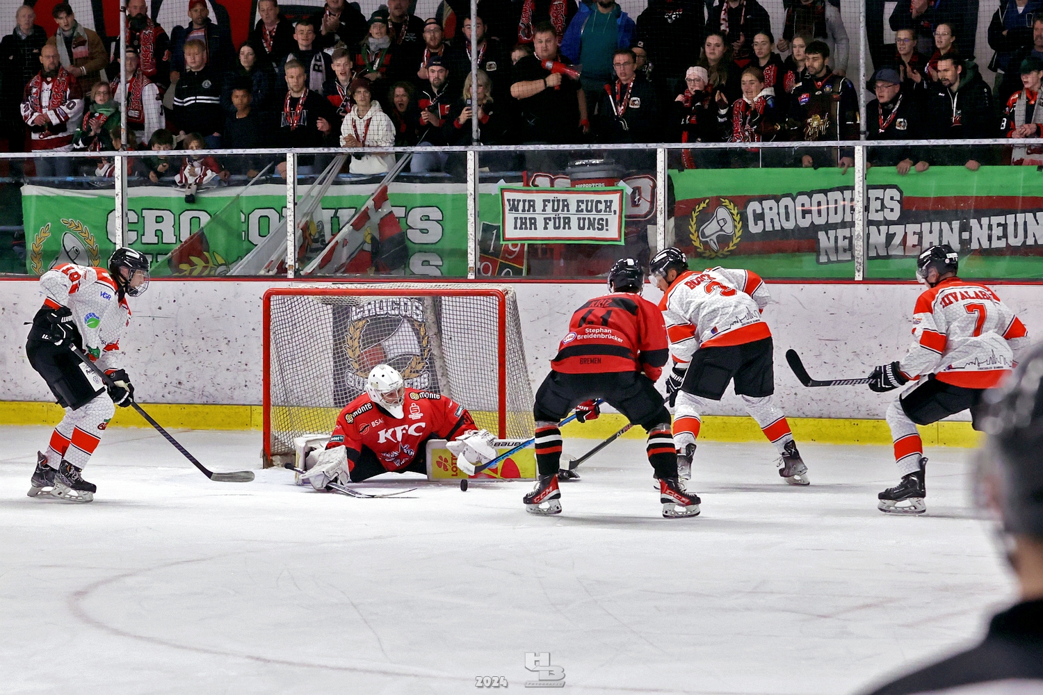Im zweiten Drittel konnte Bremen nach ca. 2 Minuten durch Rasmus Rimpilä ausgleichen. Eine kleine Unachtsamkeit wurde ausgenutzt und der Puck zappelte im Netz. Die Crocodiles ließen sich davon aber nicht aus der Ruhe bringen und so war es Dominik Samrei, der keine 30 Sekunden später auf 2:1 erhöhen konnte. Es war ein Schlagabtausch auf Augenhöhe mit leichten Vorteilen für die Crocodiles.