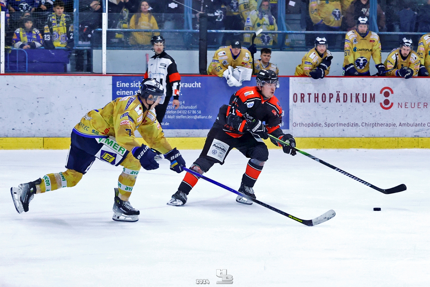 Im zweiten Drittel, genauer gesagt in der 21. Minute fiel dann auch noch das 1:3 für Bremerhaven doch die Crocodiles konnten 68 Sekunden später durch #9 Ignat Zavgorodko (#25 Yevhen Ustynov) auf 2:3 verkürzen bevor die Gäste erneut trafen und das zweite Drittel mit 2:4 endete.