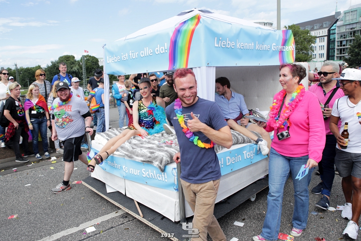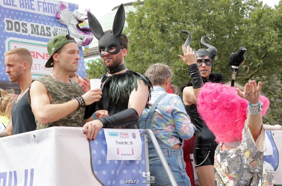 Unter dem Motto "Kommt mit uns! Diskriminierung ist keine Alternative" startete am 05. August 2017 mit 32 Minuten Verspätung die 37. Hamburger CSD Parade in der Langen Reihe.